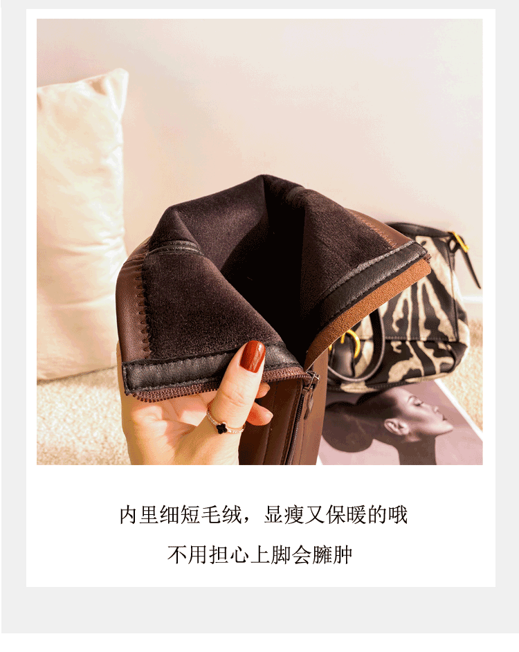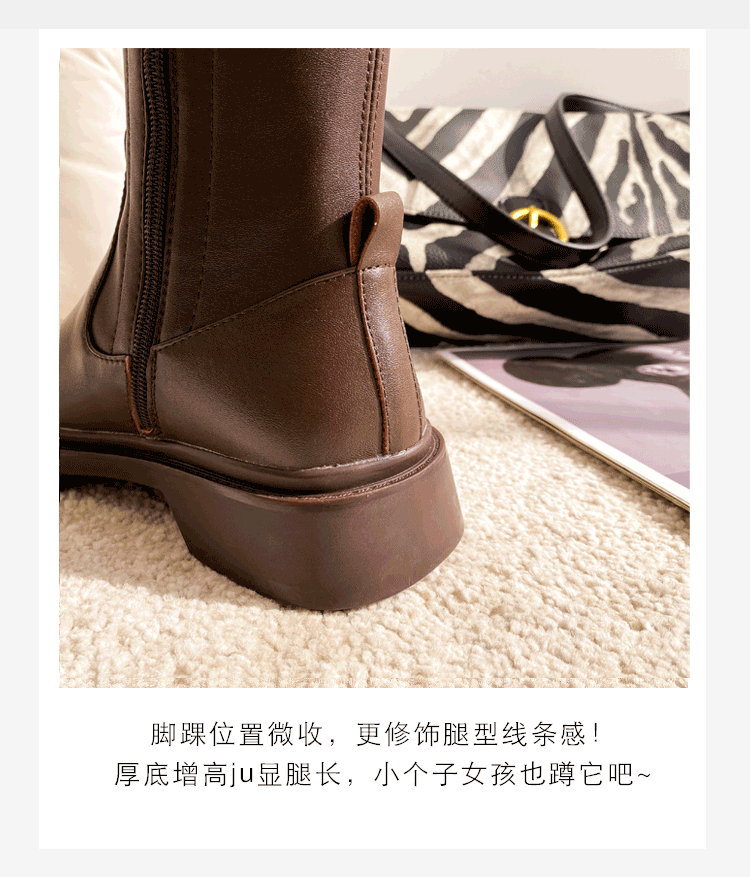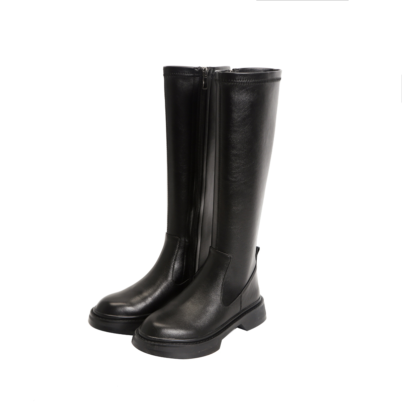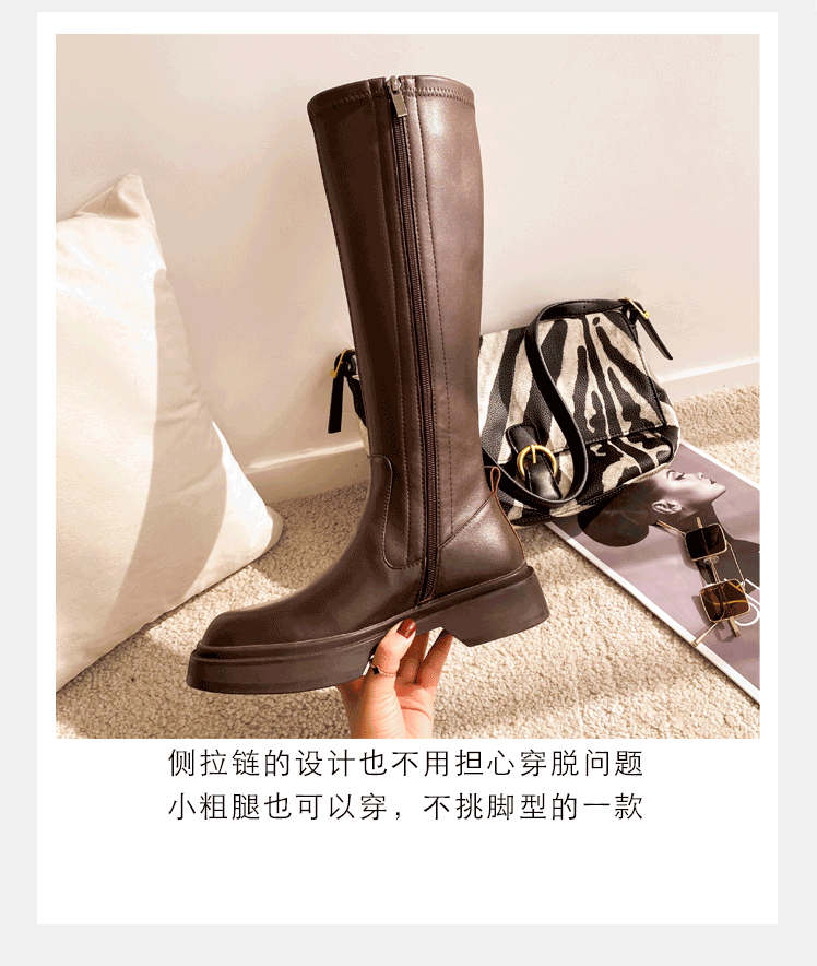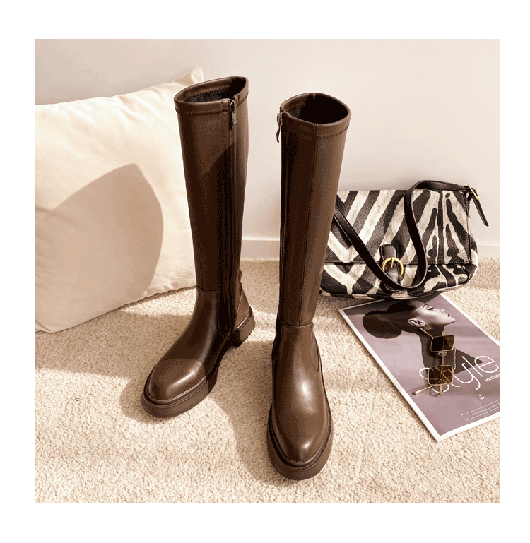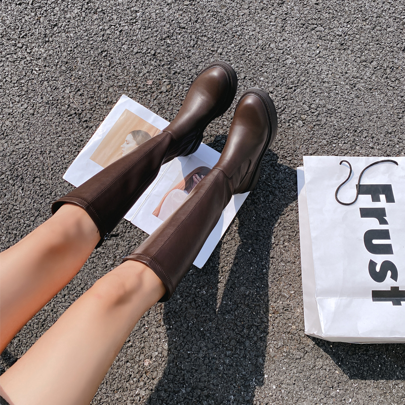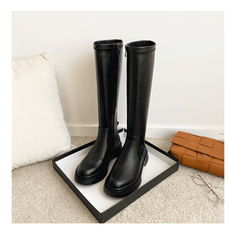 Демисезонные эластичные высокие сапоги на платформе, из натуральной кожи, по фигуре
