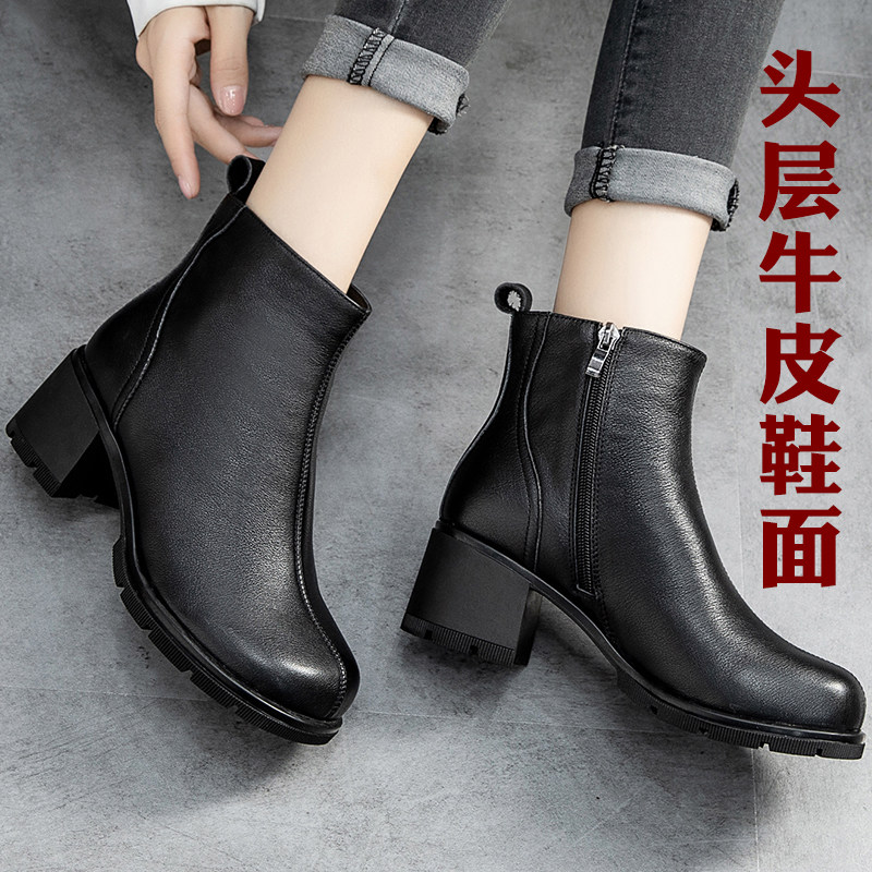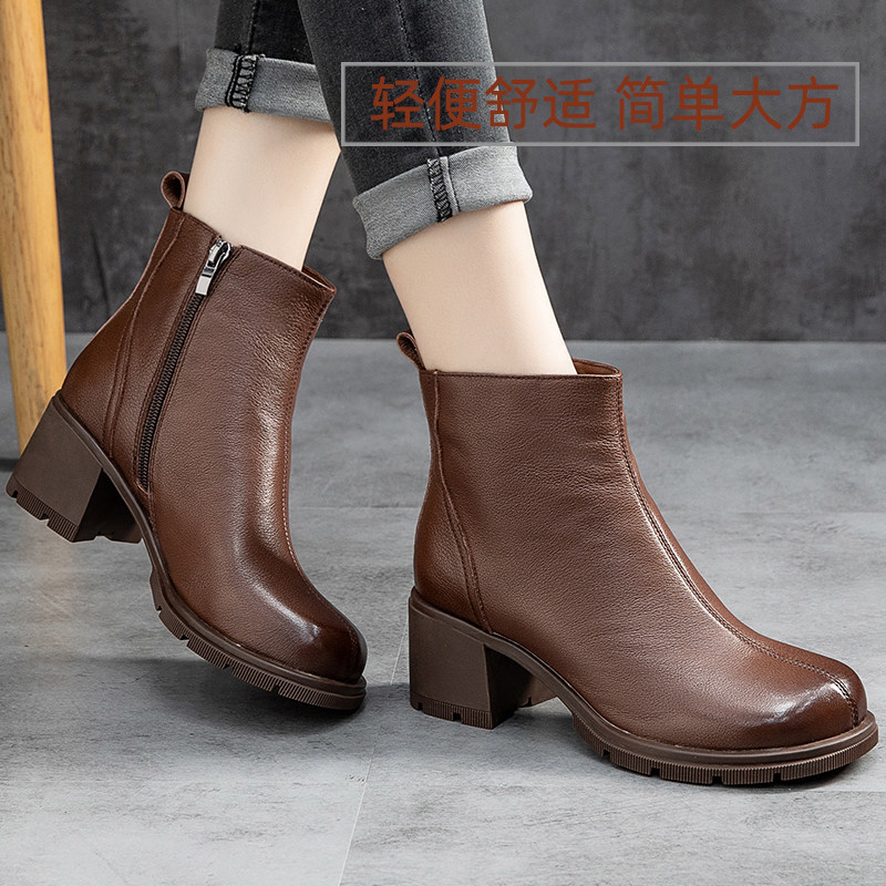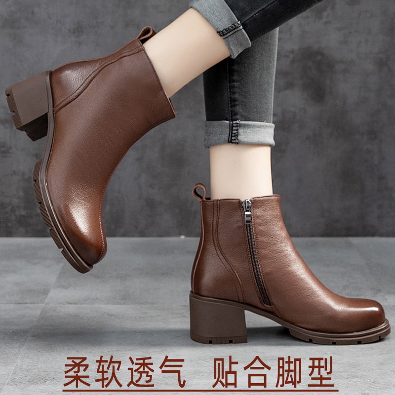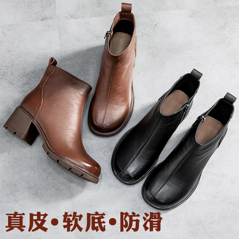 Демисезонные короткие сапоги для матери, комфортная обувь, ботинки, из натуральной кожи, для среднего возраста
