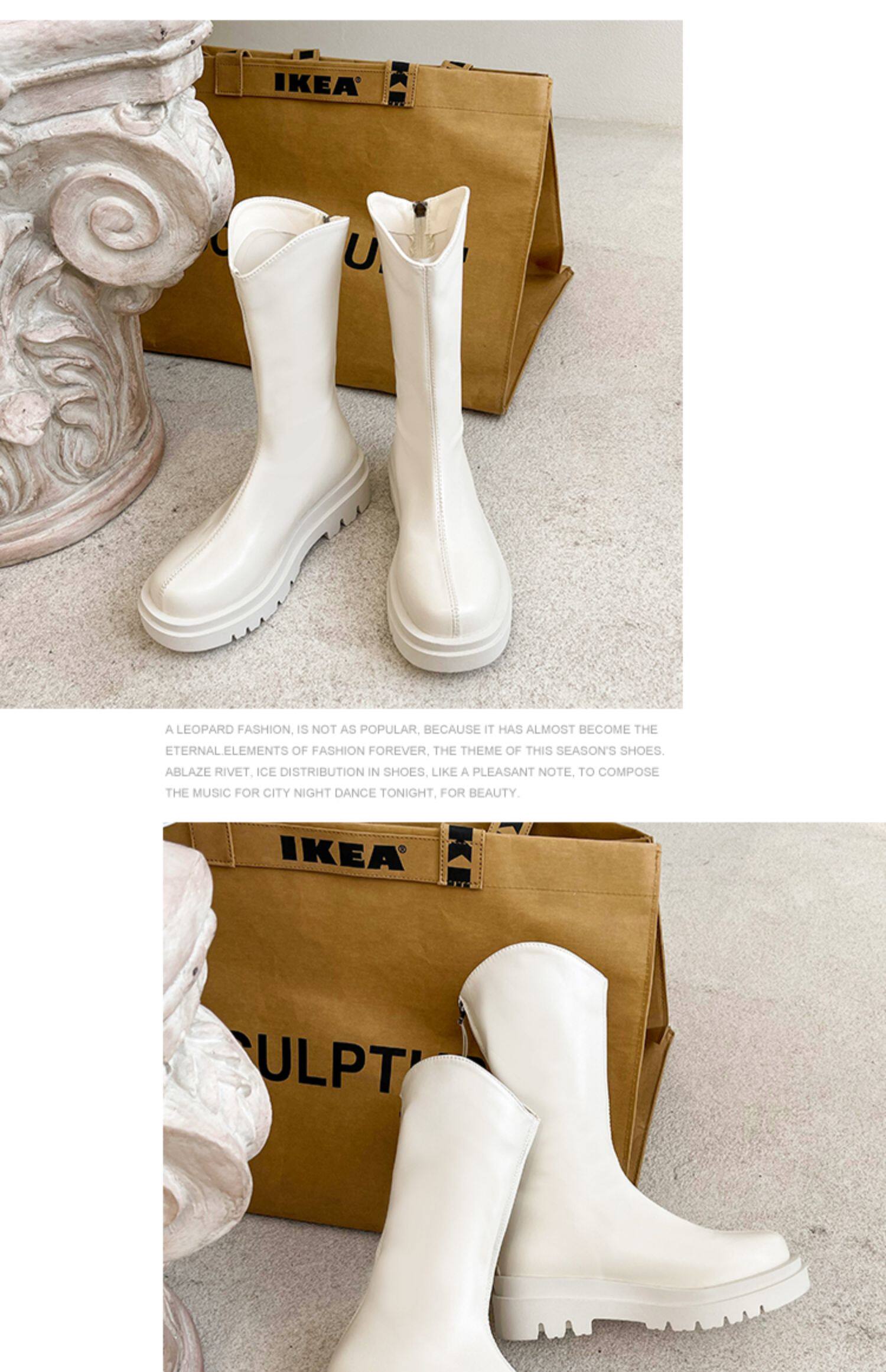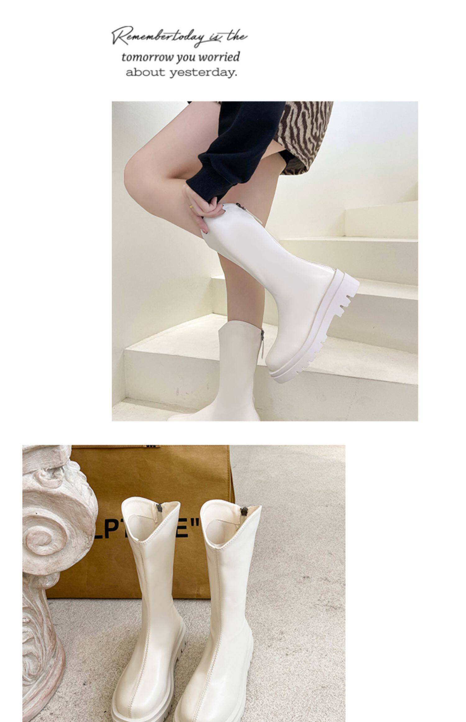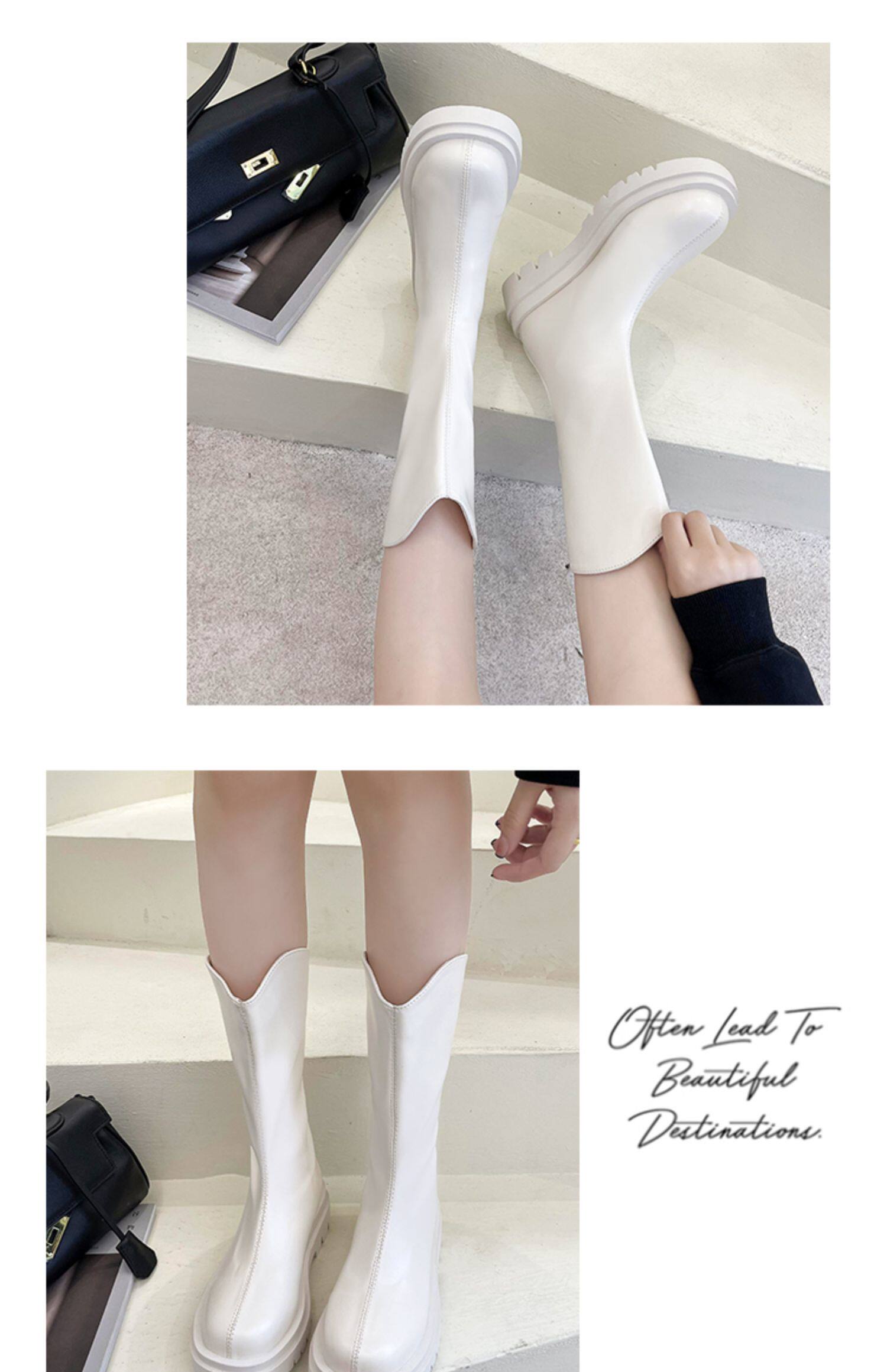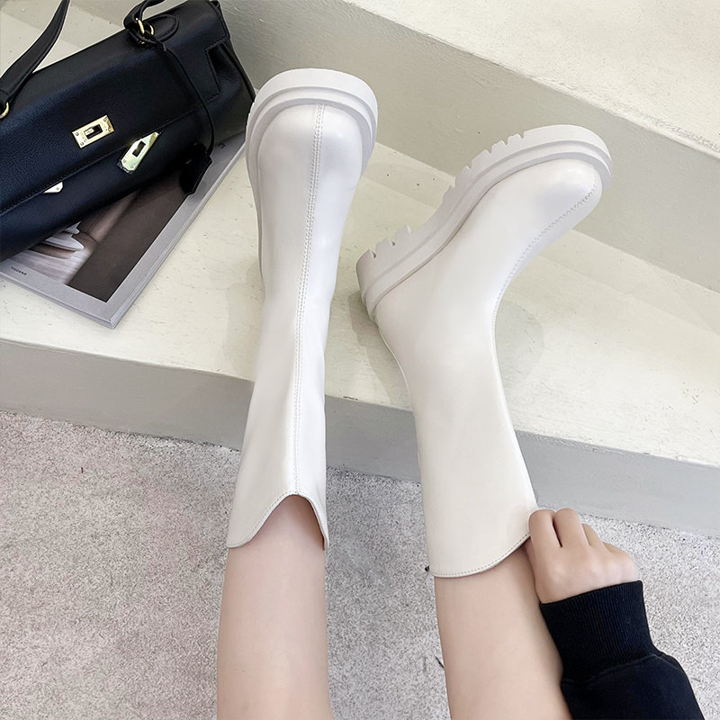 Высокие белые высокие сапоги, тонкие ботинки, коллекция 2021, подходит для подростков, средней длины