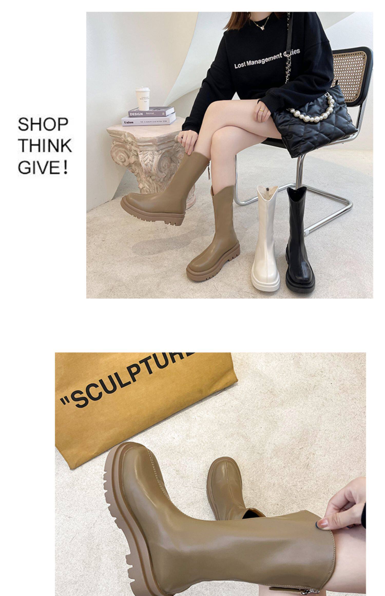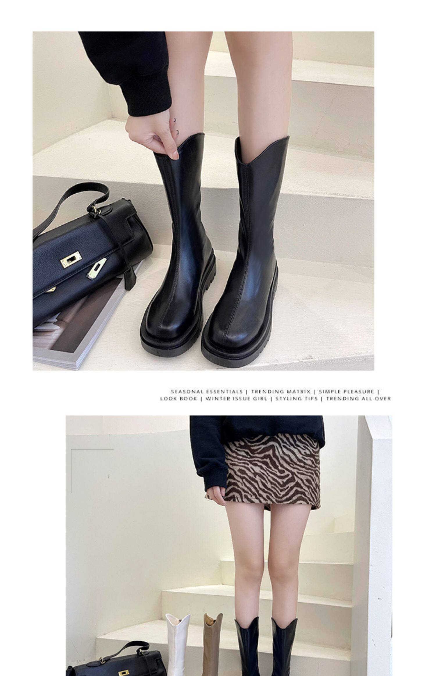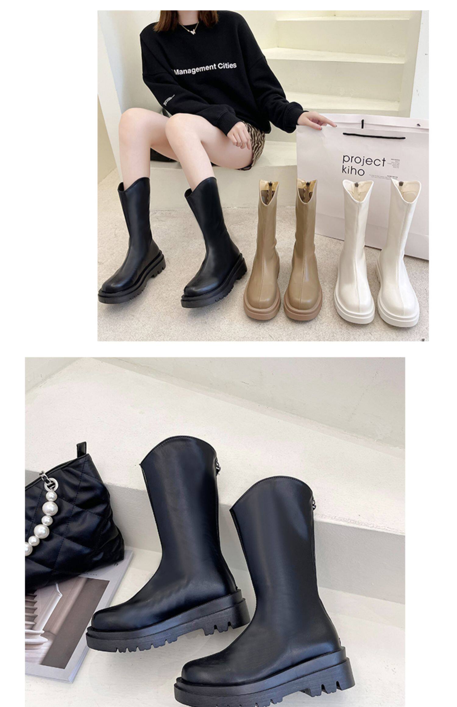 Высокие белые высокие сапоги, тонкие ботинки, коллекция 2021, подходит для подростков, средней длины