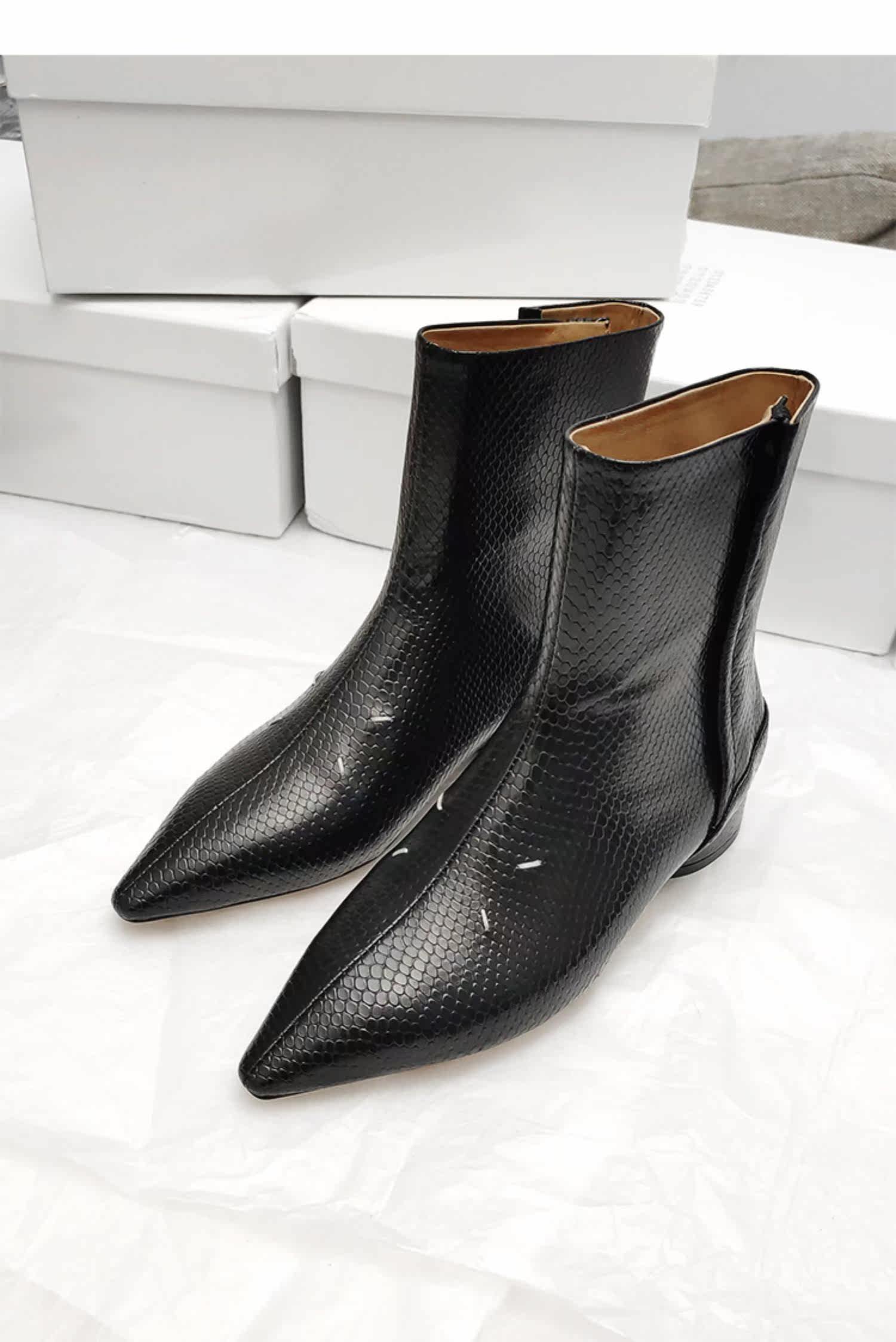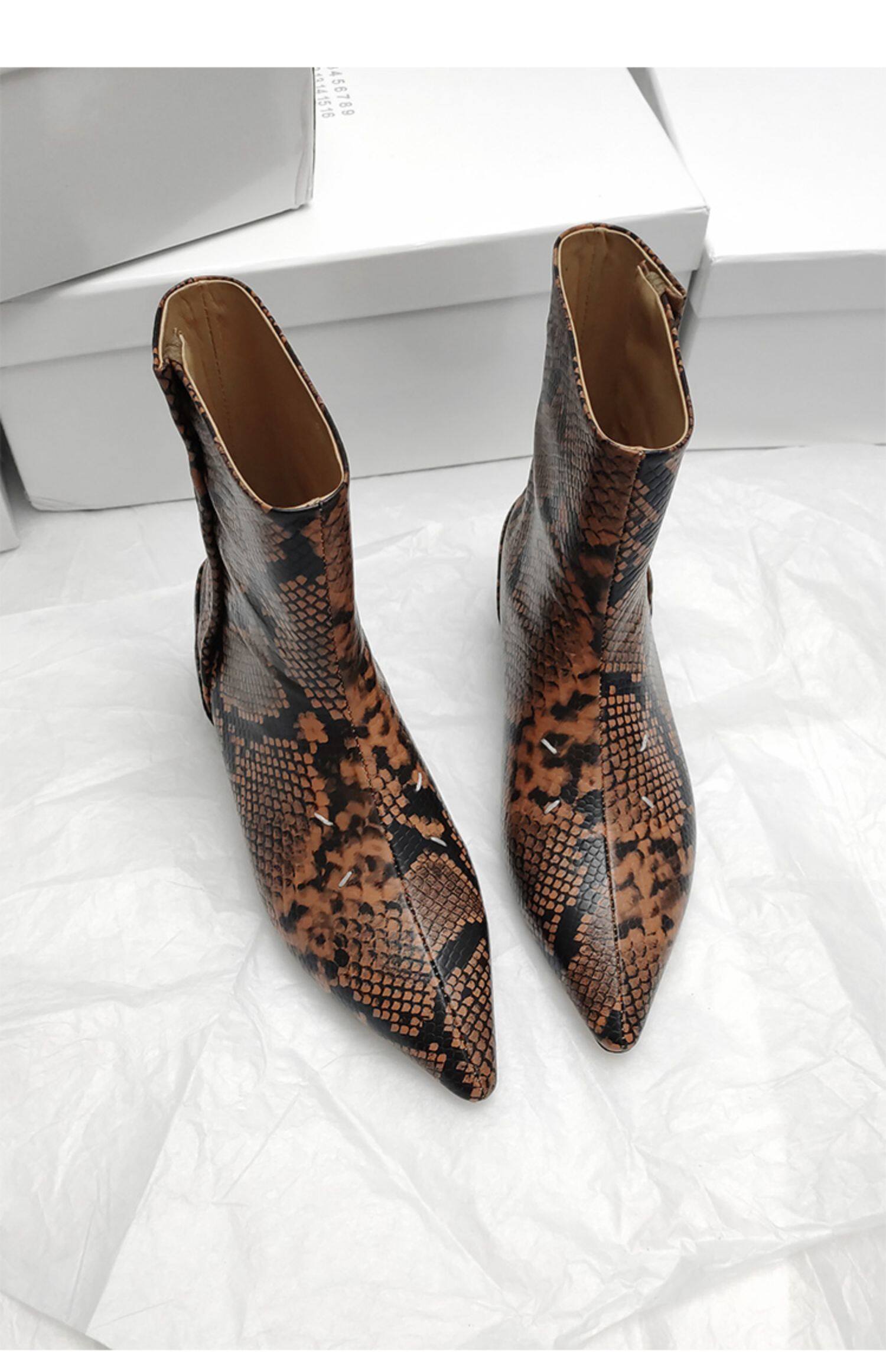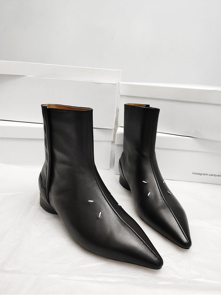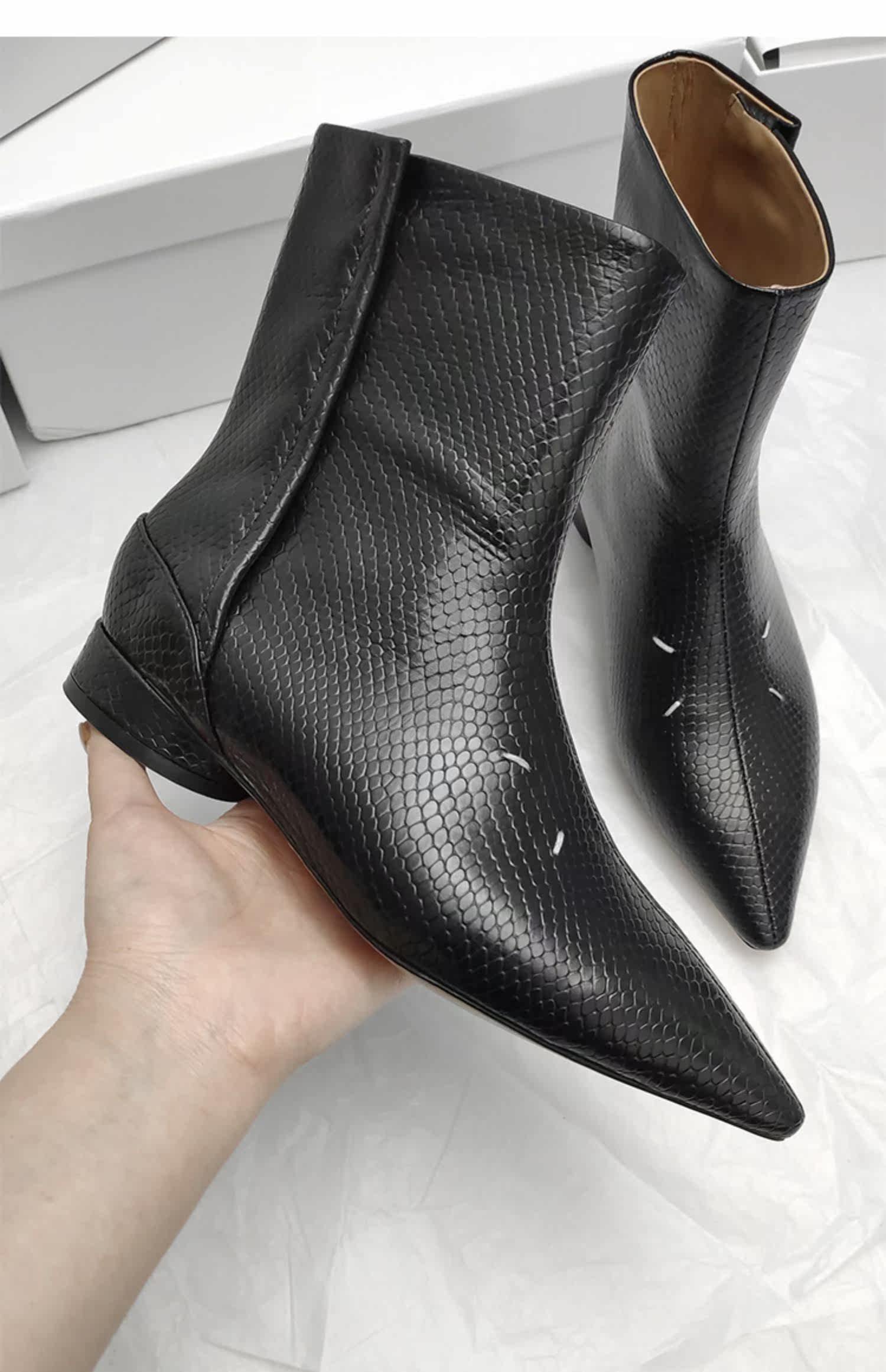 Модные демисезонные короткие сапоги с заостренным носом, ботинки, из натуральной кожи
