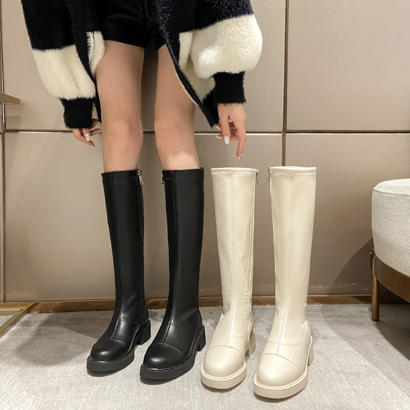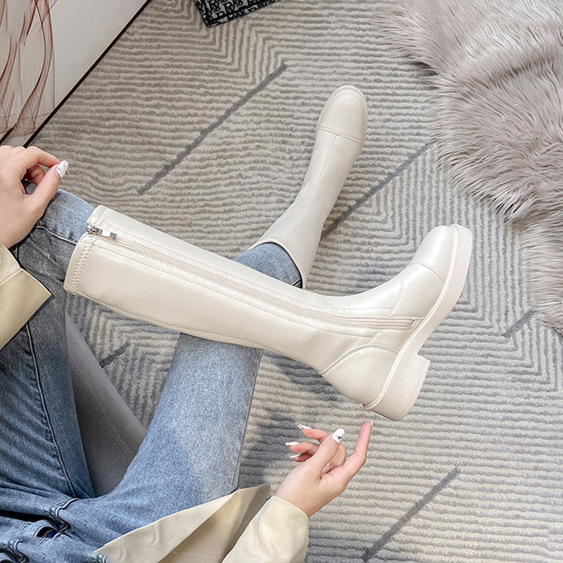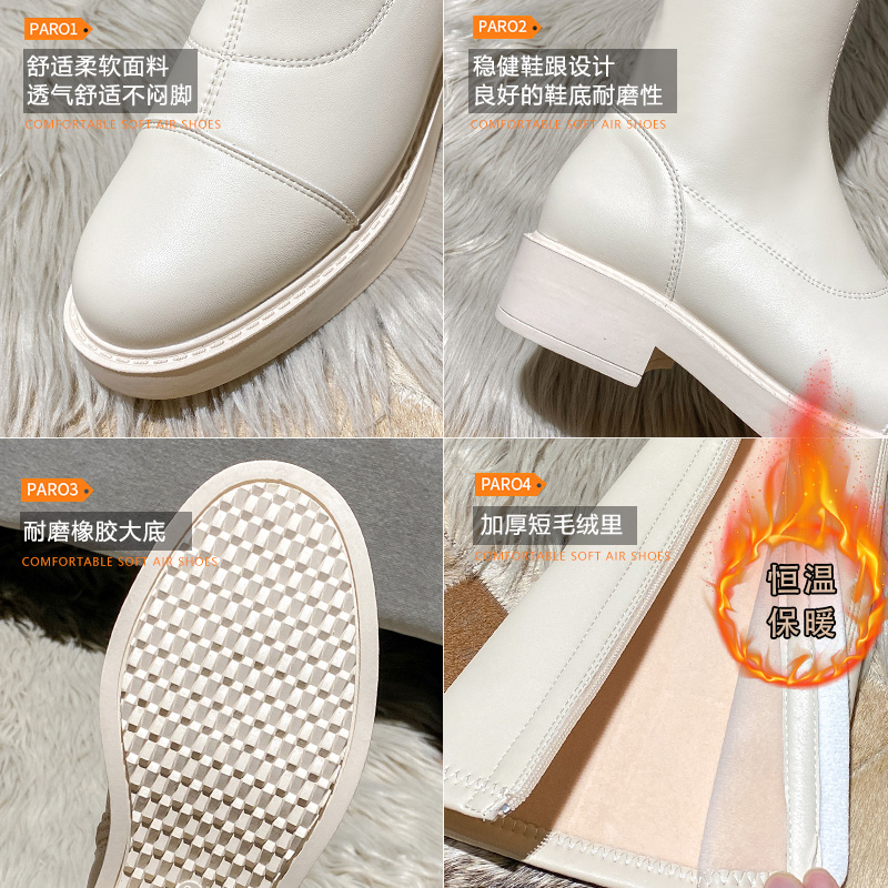 Эластичные флисовые белые высокие высокие сапоги, коллекция 2022, подходит для подростков, средней длины