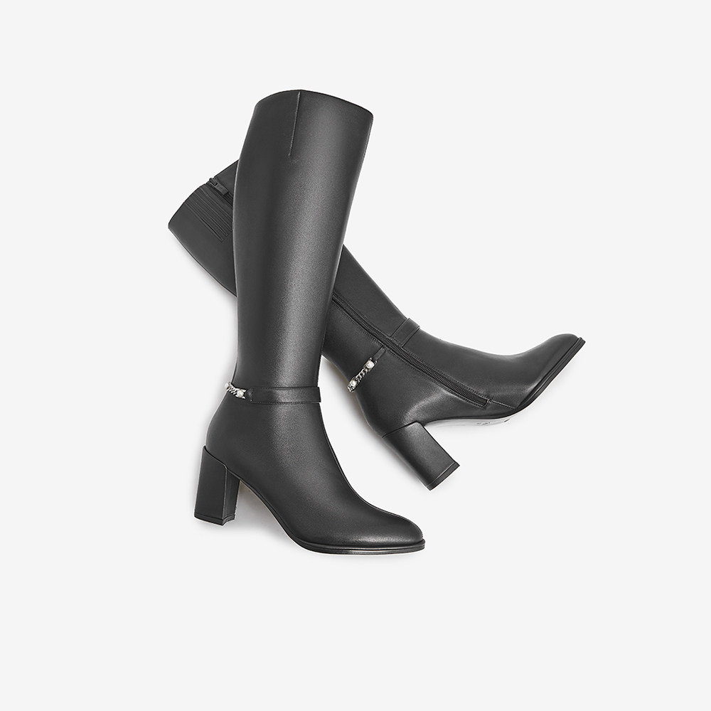 Универсальные высокие черные зимние сапоги с заостренным носом, средней длины