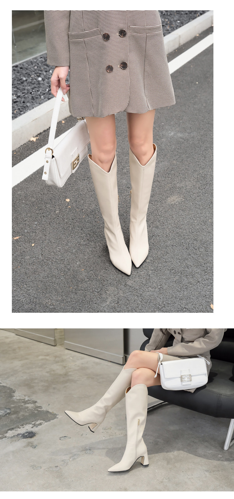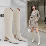 Белые высокие сапоги с заостренным носом, ботинки, коллекция 2022, осенние, средней длины