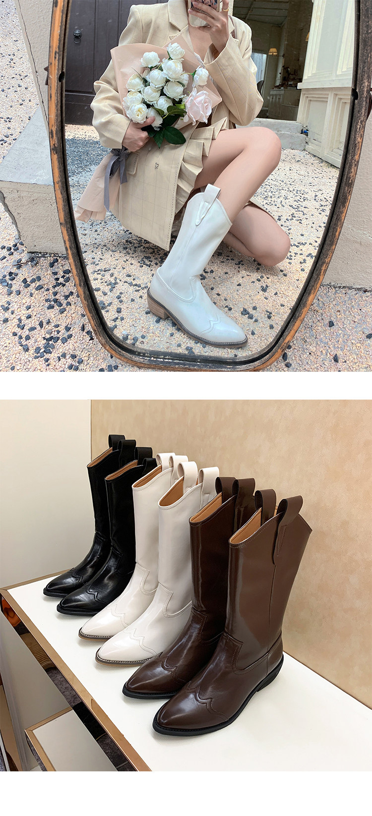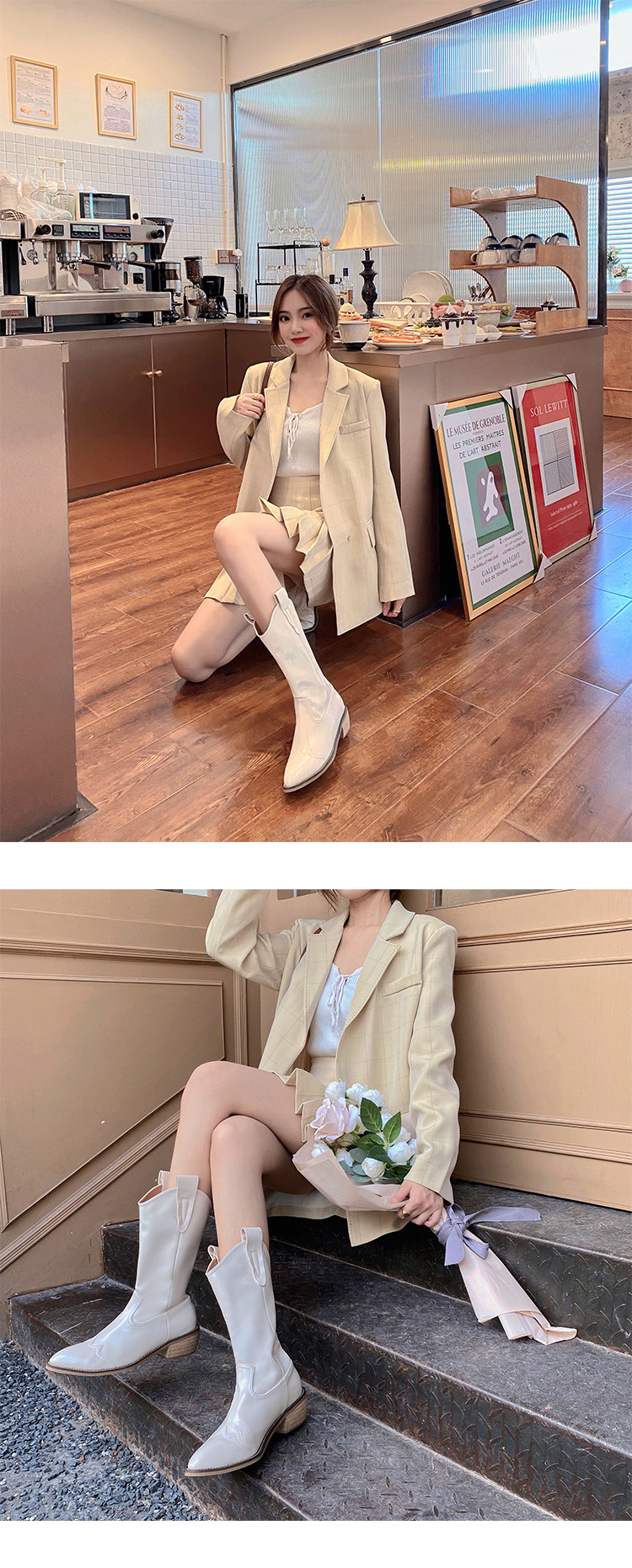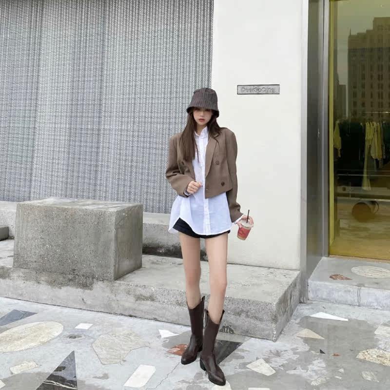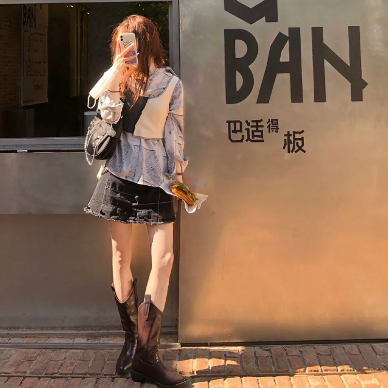 Джинсовые сапоги с заостренным носом, коллекция 2021, осенние, тренд сезона, по фигуре, средней длины, из натуральной кожи, в корейском стиле