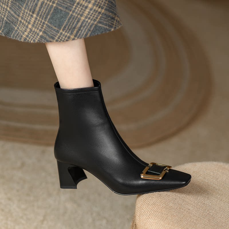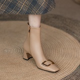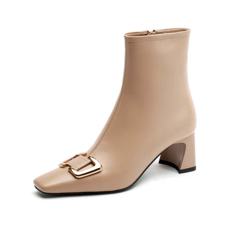 Металлические нюдовые короткие сапоги на высоком каблуке, ботильоны, демисезонная цепочка с молнией, из натуральной кожи, коллекция 2021