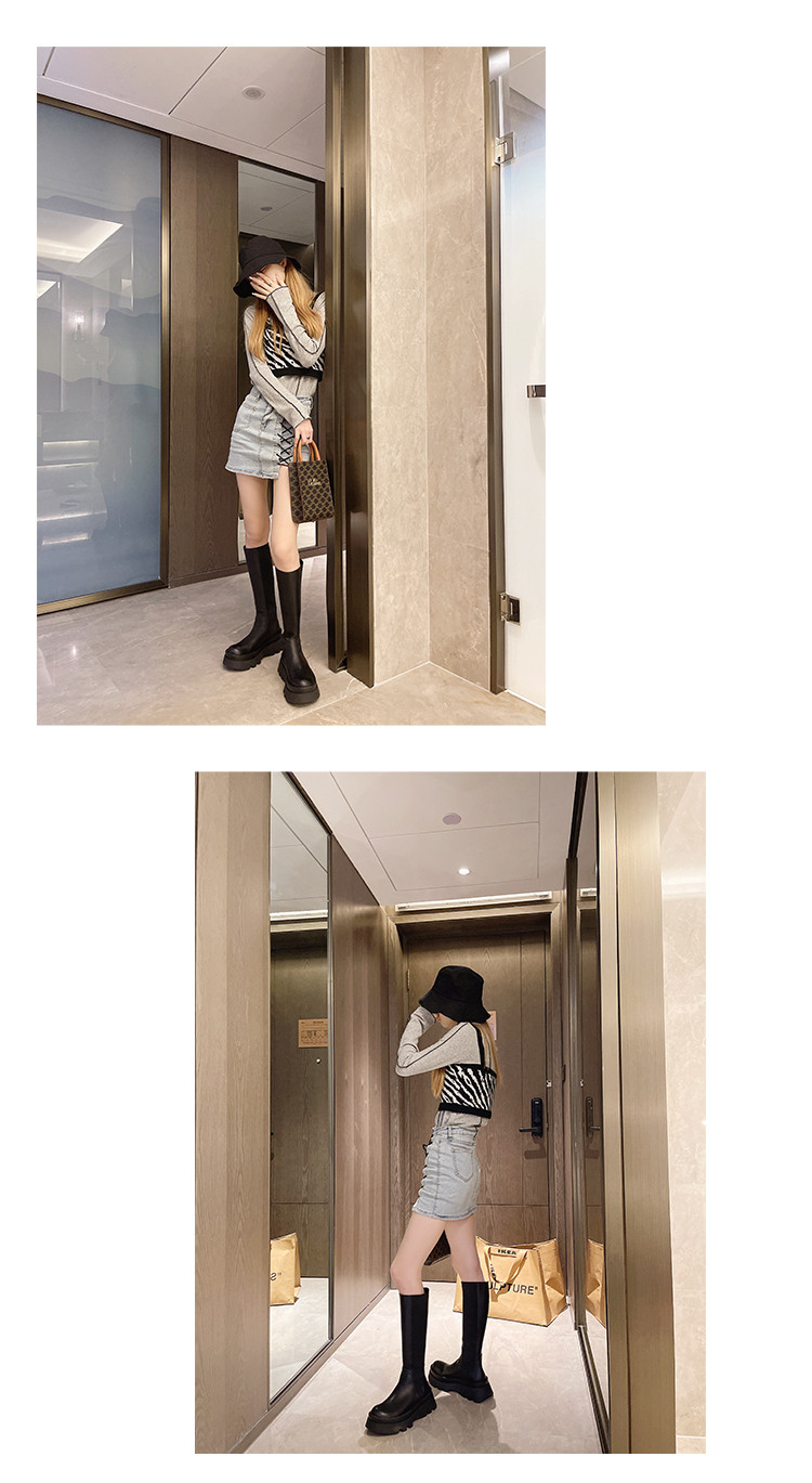 Tide, черные универсальные модные высокие высокие сапоги на платформе, осенние