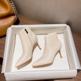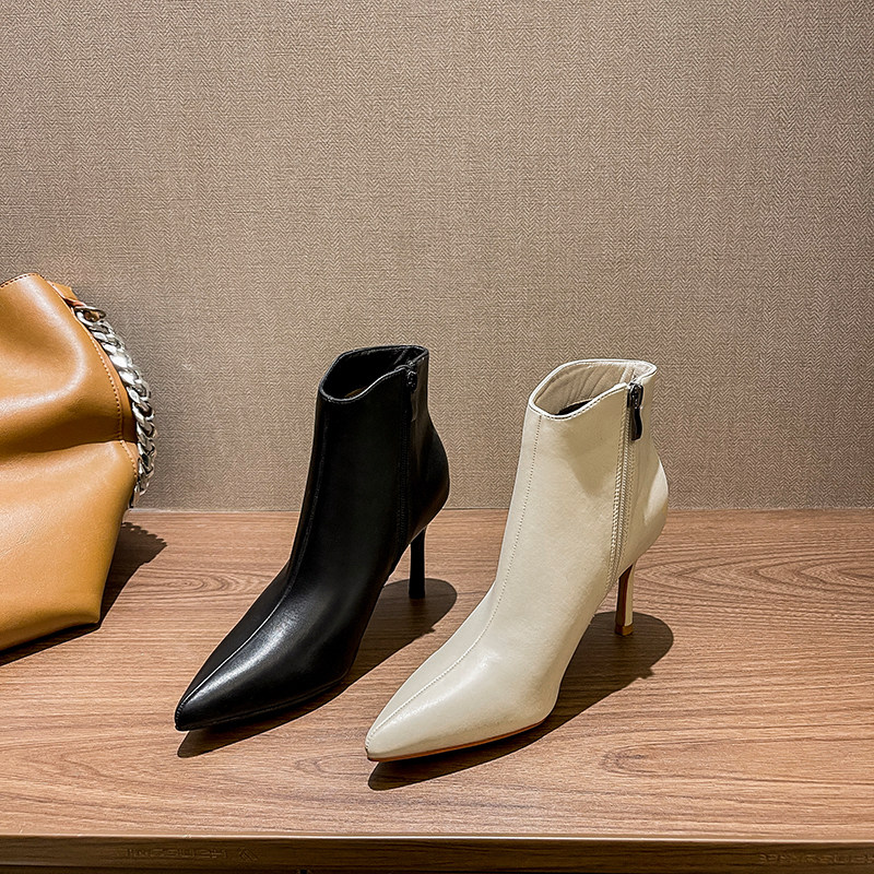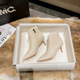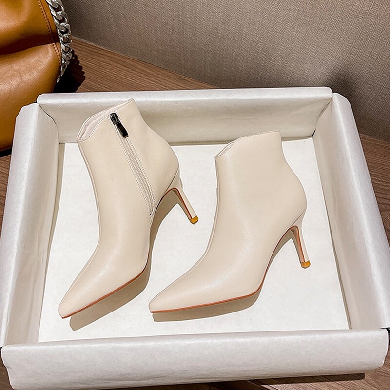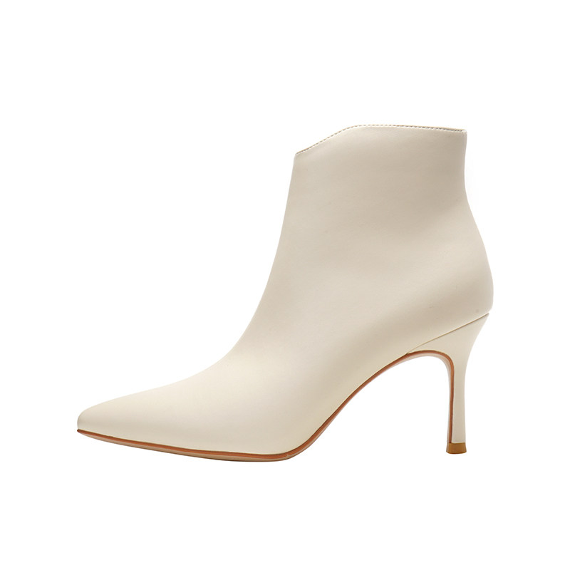 Весенние демисезонные белые короткие сапоги на высоком каблуке, туфли-шпильки с молнией, 2023 года, тренд сезона
