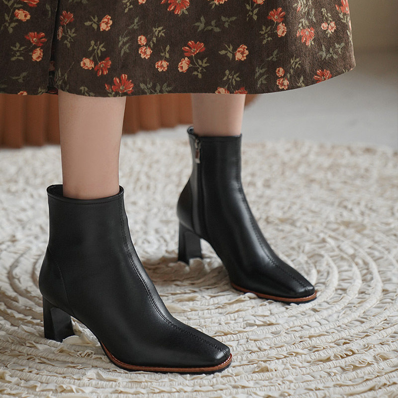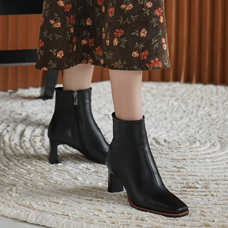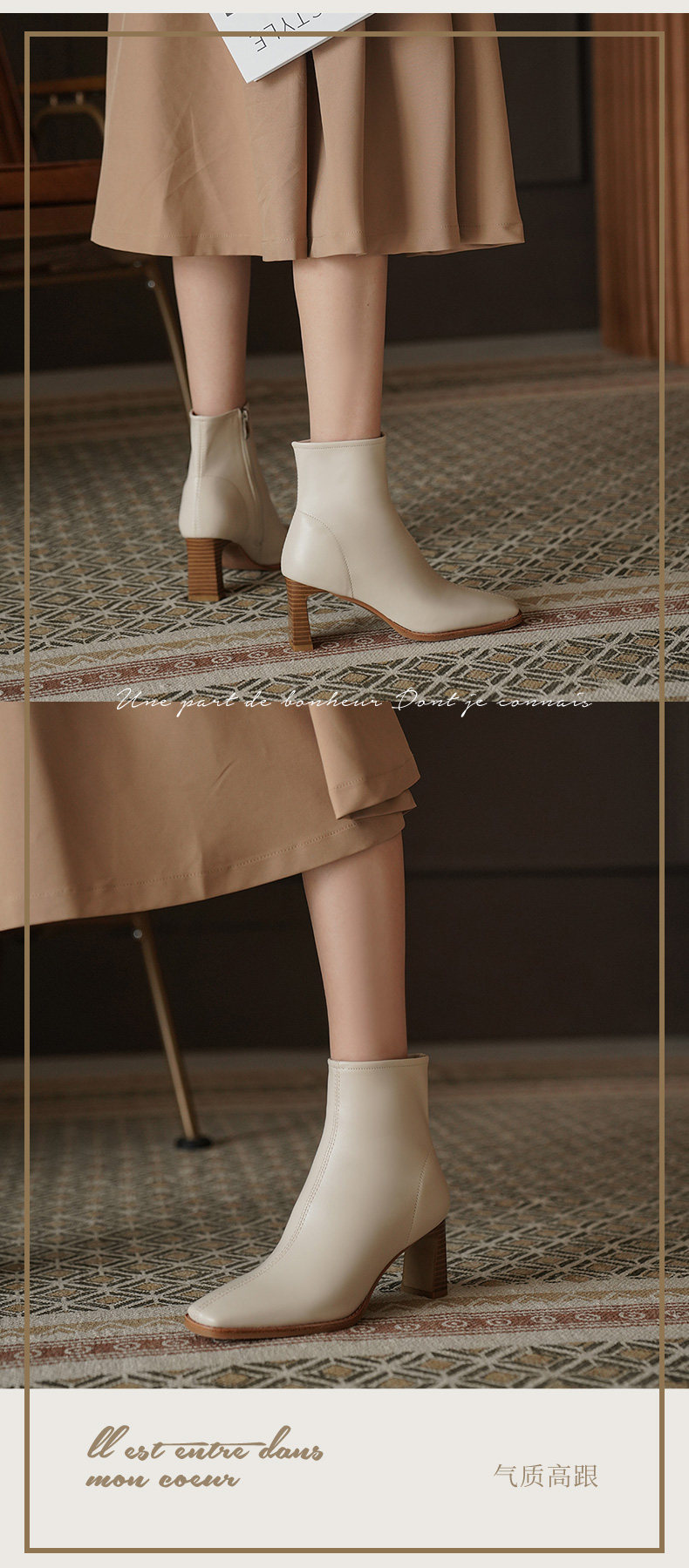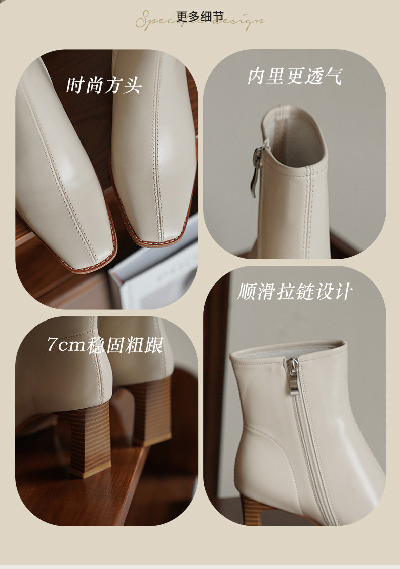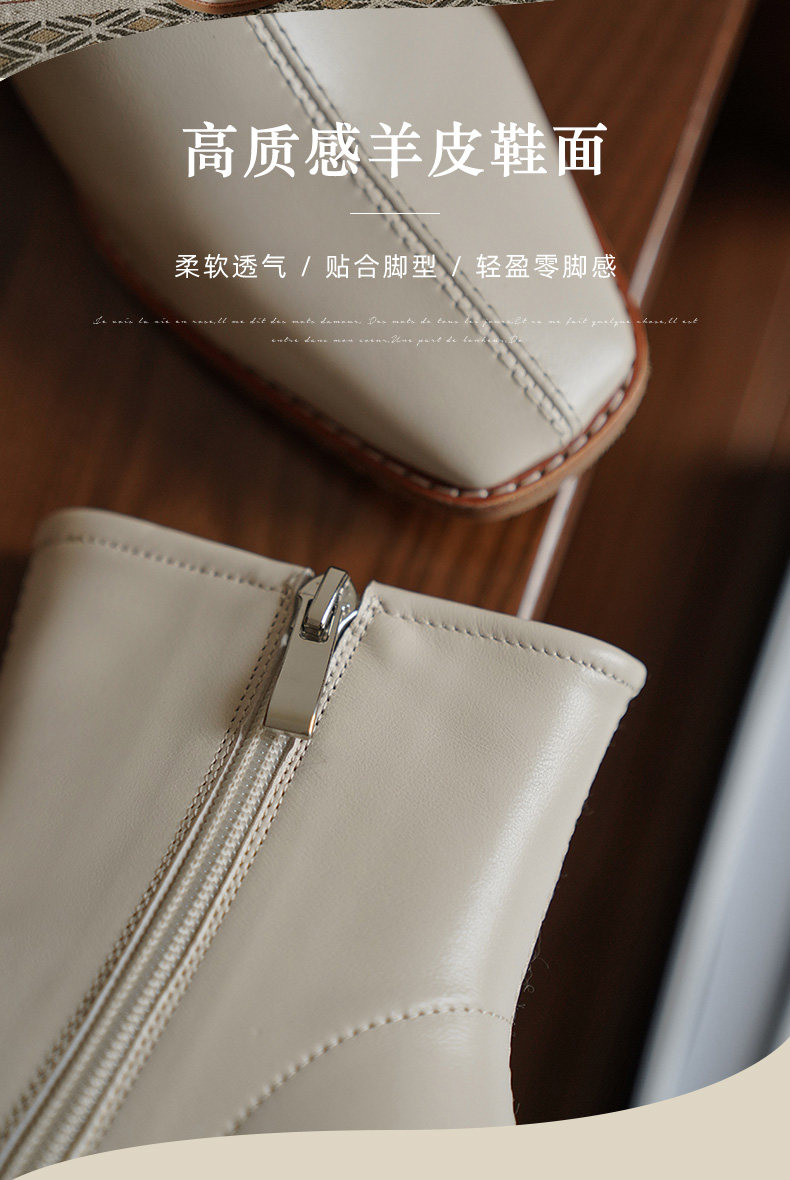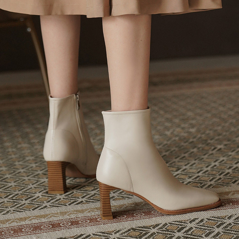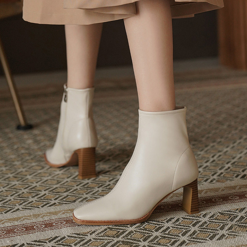 Белые короткие сапоги на высоком каблуке, бежевые флисовые ботильоны, в западном стиле