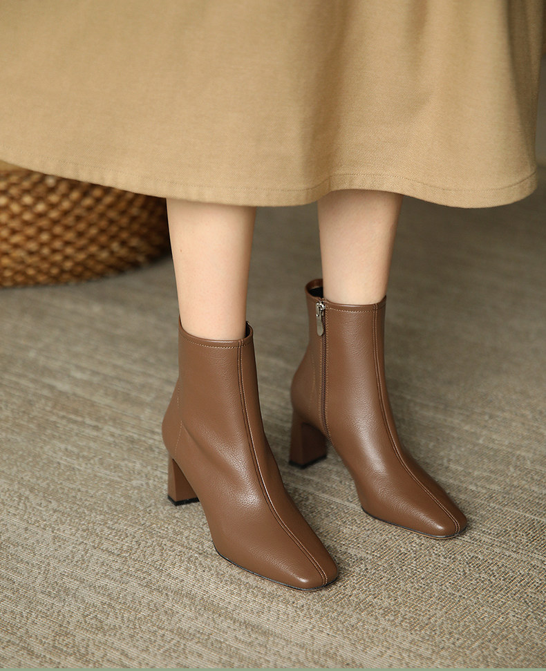 Martens, коричневые демисезонные высокие флисовые короткие сапоги, 2024 года, французский стиль