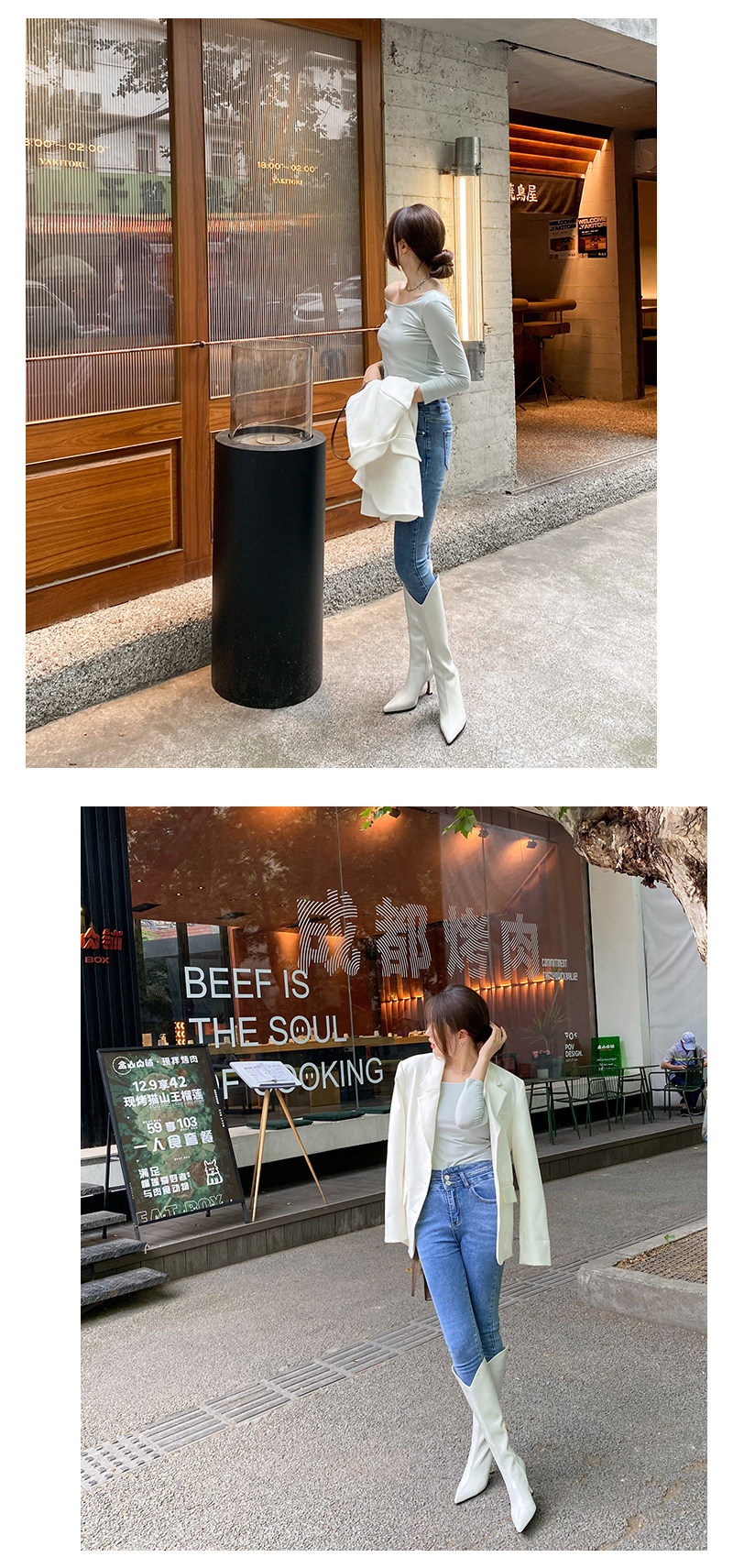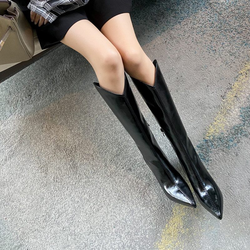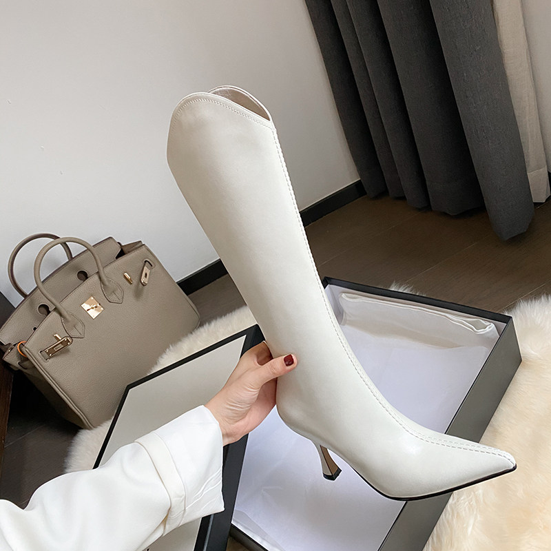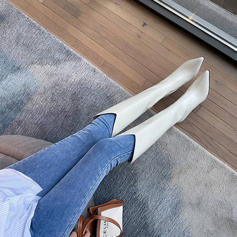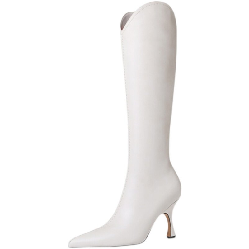 Универсальные высокие белые сексуальные джинсовые высокие сапоги с заостренным носом, по фигуре, из натуральной кожи