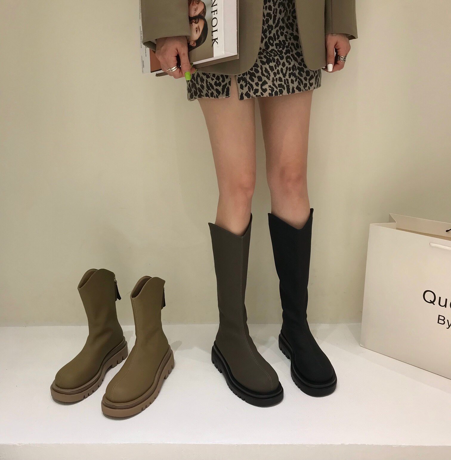 Martens, хаки короткие сапоги на платформе, высокие сапоги, ботинки, 2021 года, средней длины