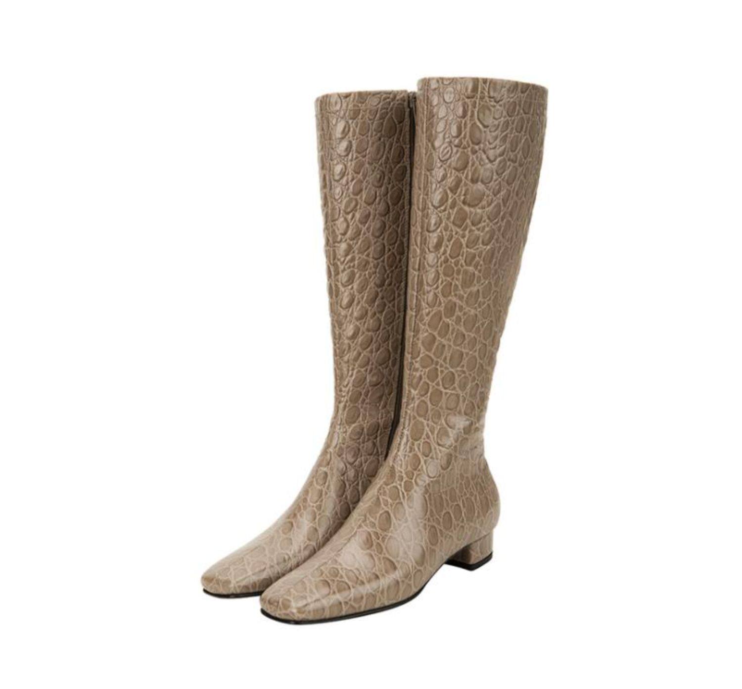 Кожаные небольшие дизайнерские высокие сапоги, 2см