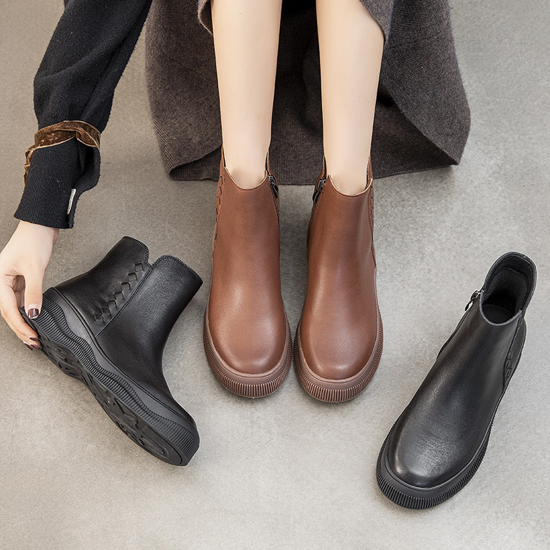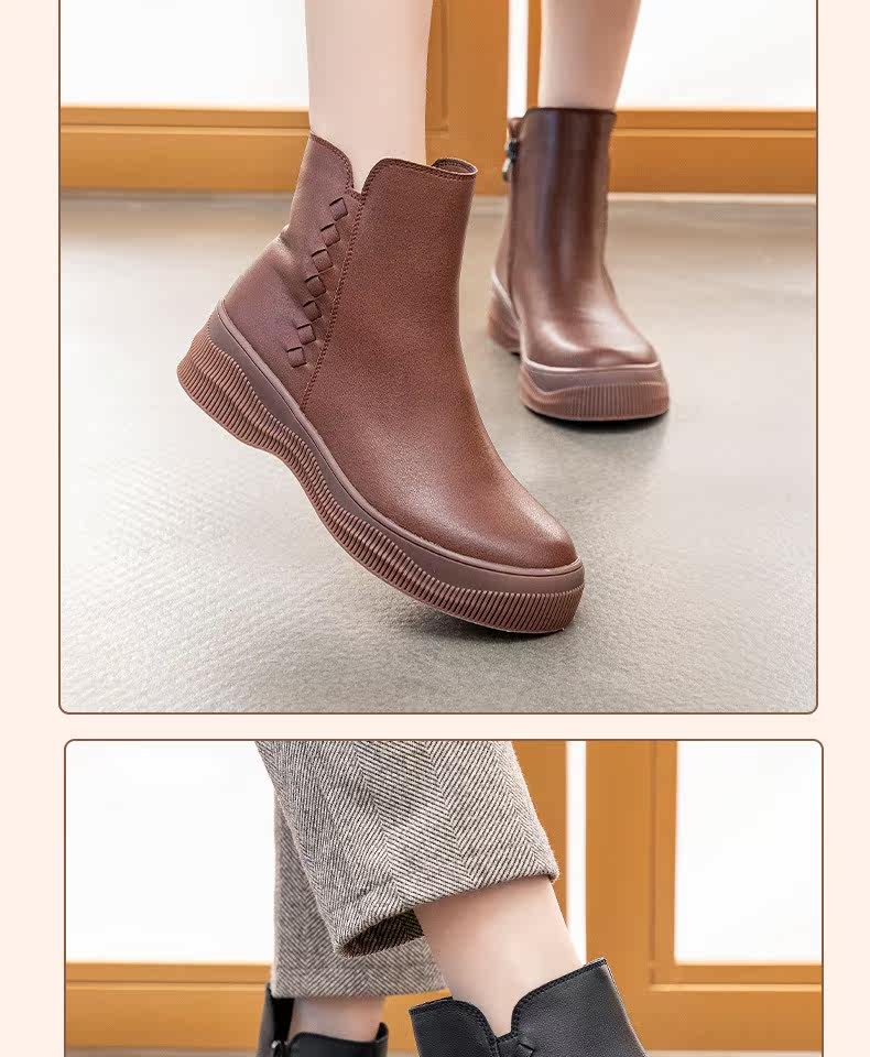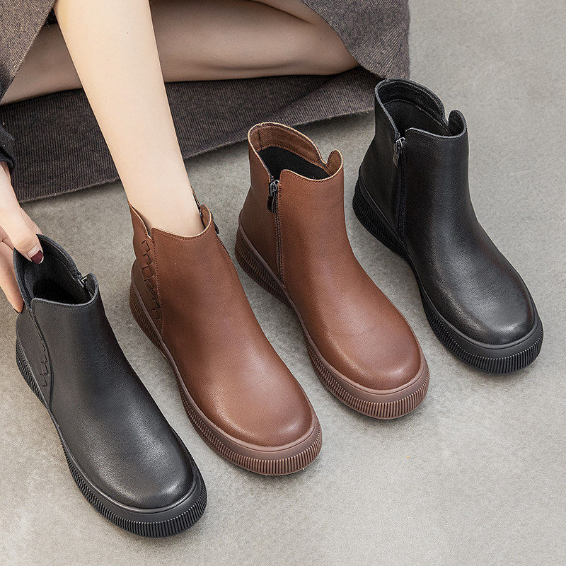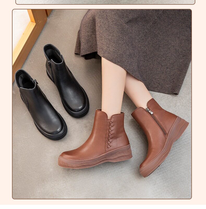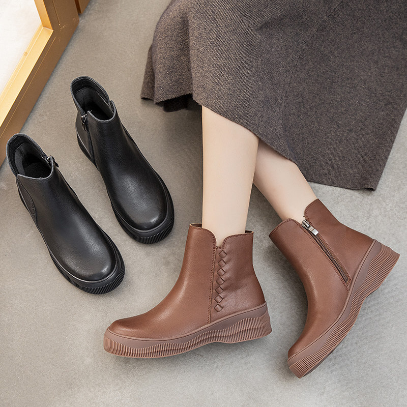 Демисезонные короткие сапоги для матери, комфортные ботинки, из натуральной кожи, для среднего возраста, мягкая подошва