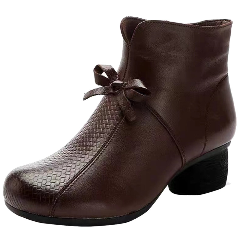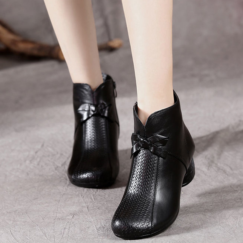 Martens, этнические утепленные короткие сапоги для матери, из натуральной кожи, коллекция 2023, этнический стиль
