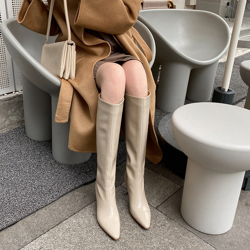 Демисезонная обувь на высоком каблуке, высокие сапоги, ботинки, средней длины, коллекция 2022, популярно в интернете, по фигуре, свободный крой