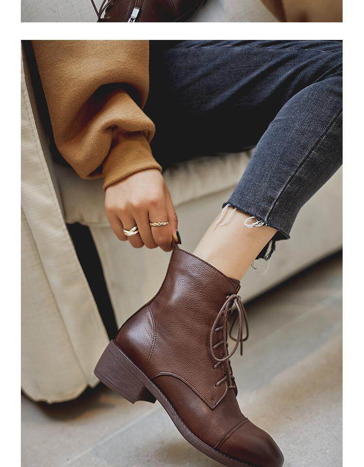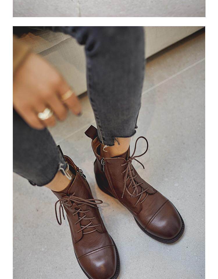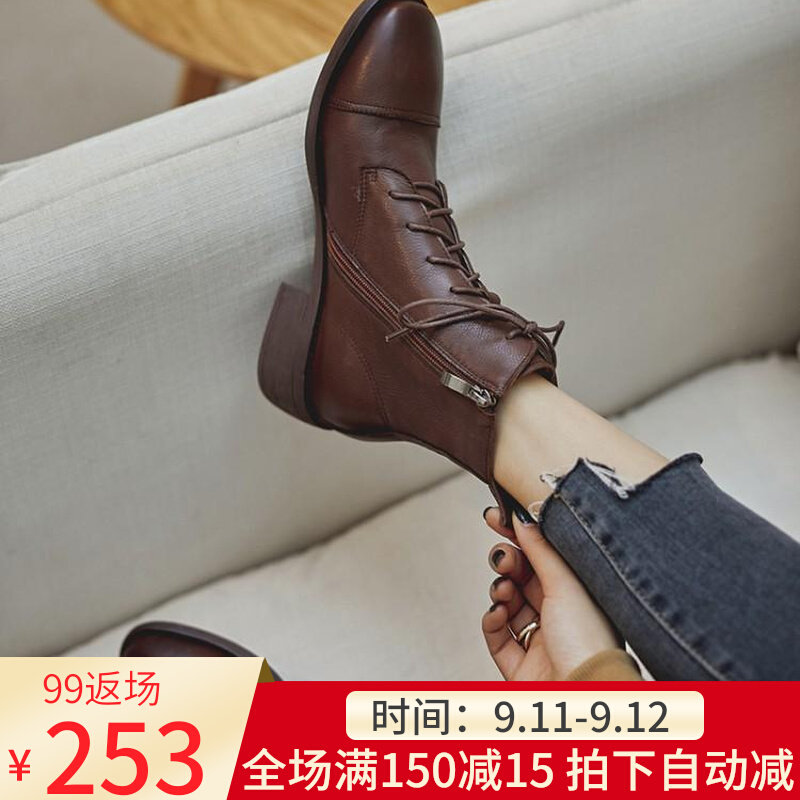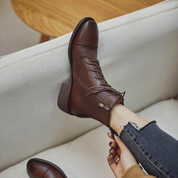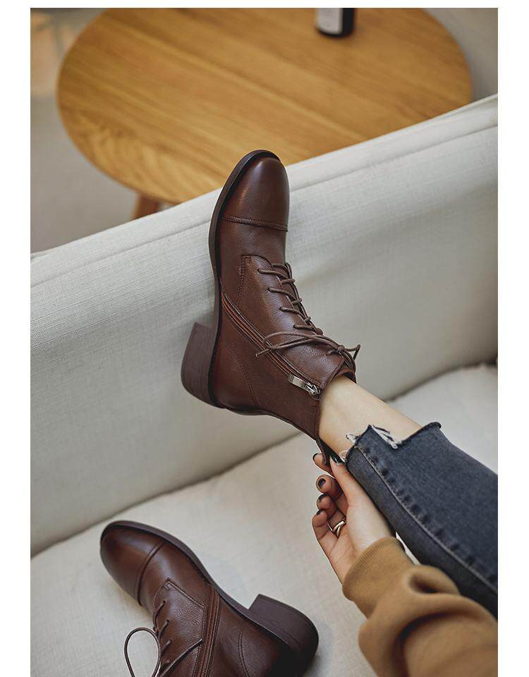 Martens, весенние черные коричневые ботинки в английском стиле с молнией, из натуральной кожи