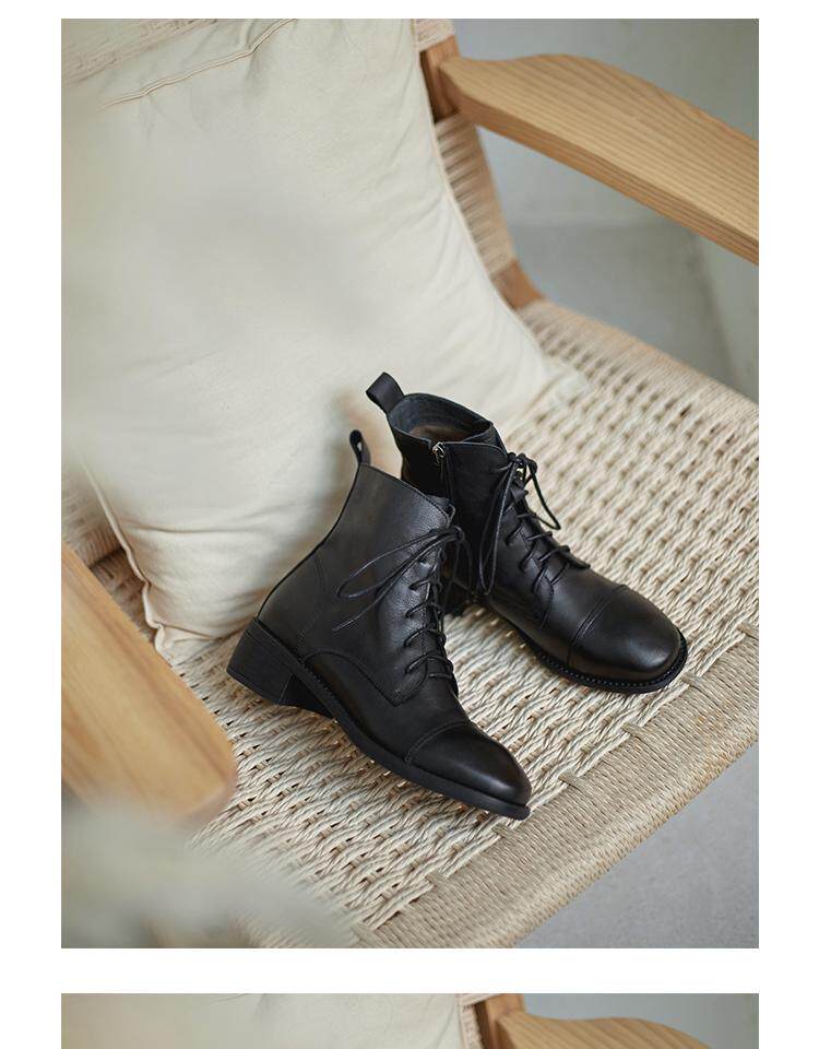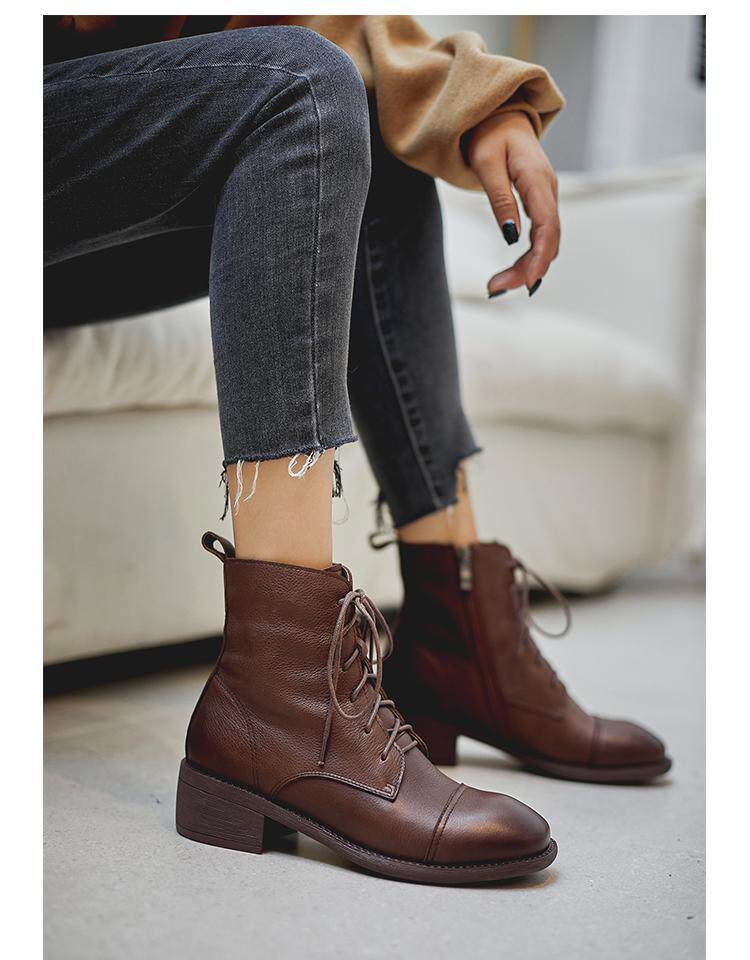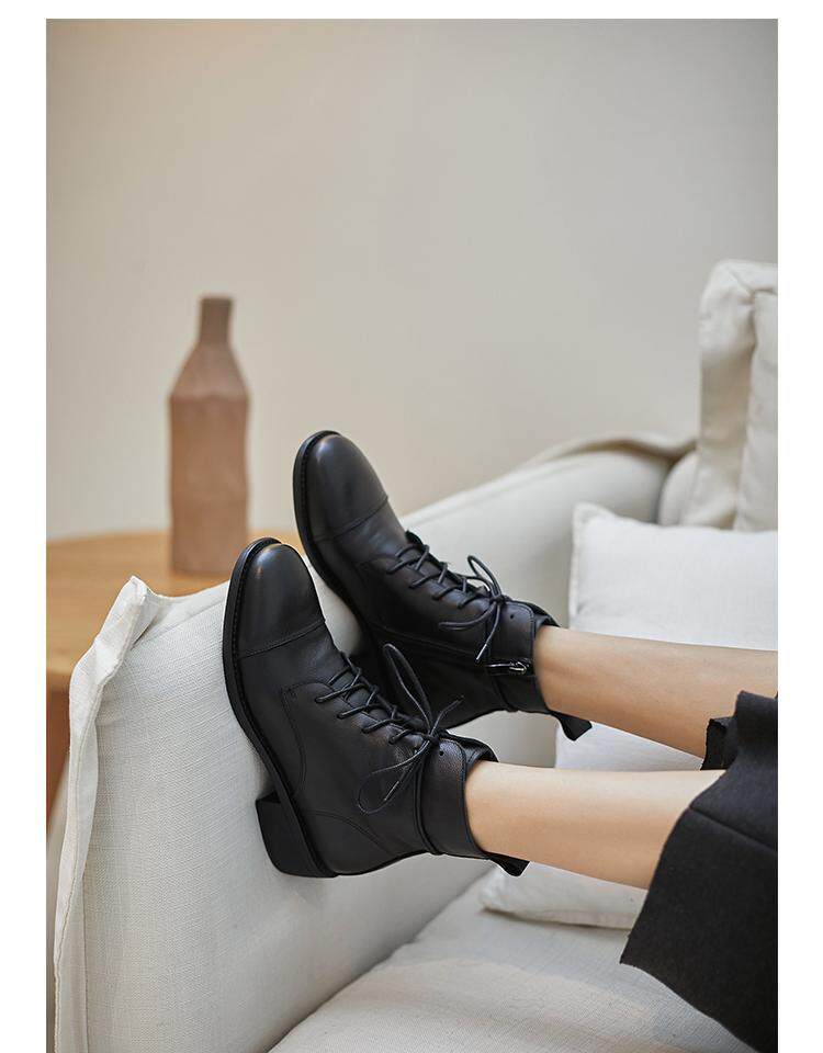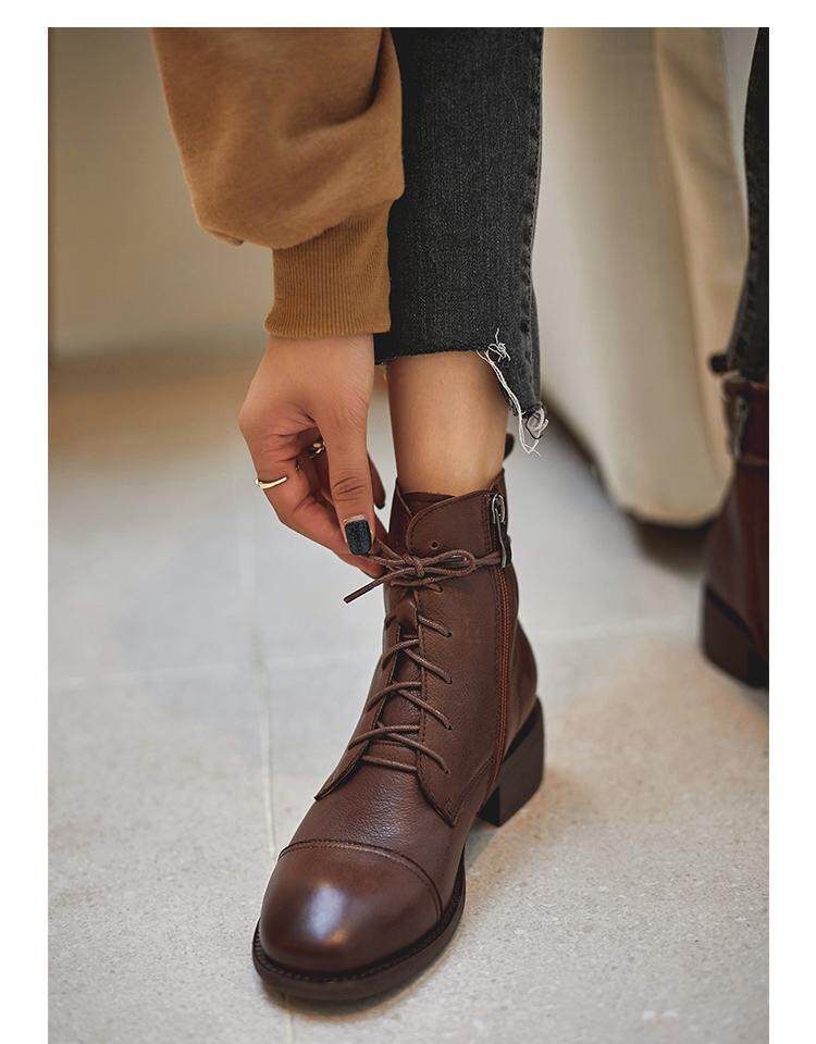 Martens, весенние черные коричневые ботинки в английском стиле с молнией, из натуральной кожи