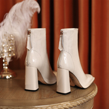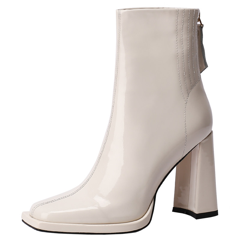 Демисезонные короткие сапоги, белые ботинки на высоком каблуке, 2024 года, европейский стиль, осенние, из натуральной кожи
