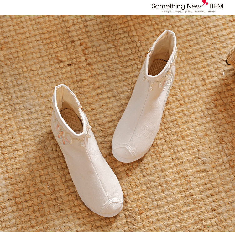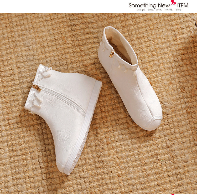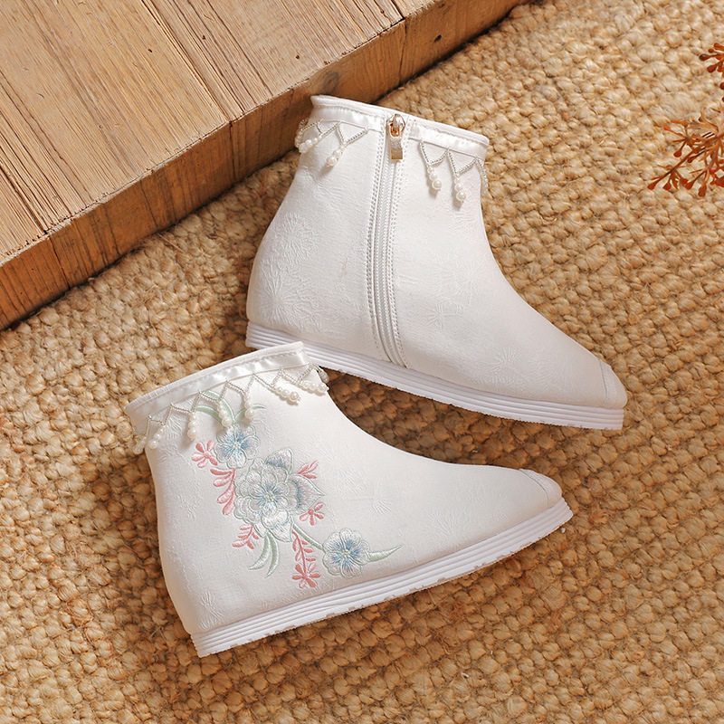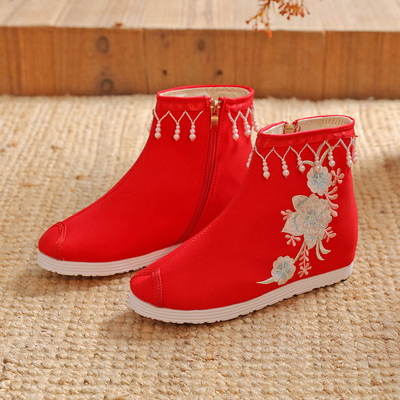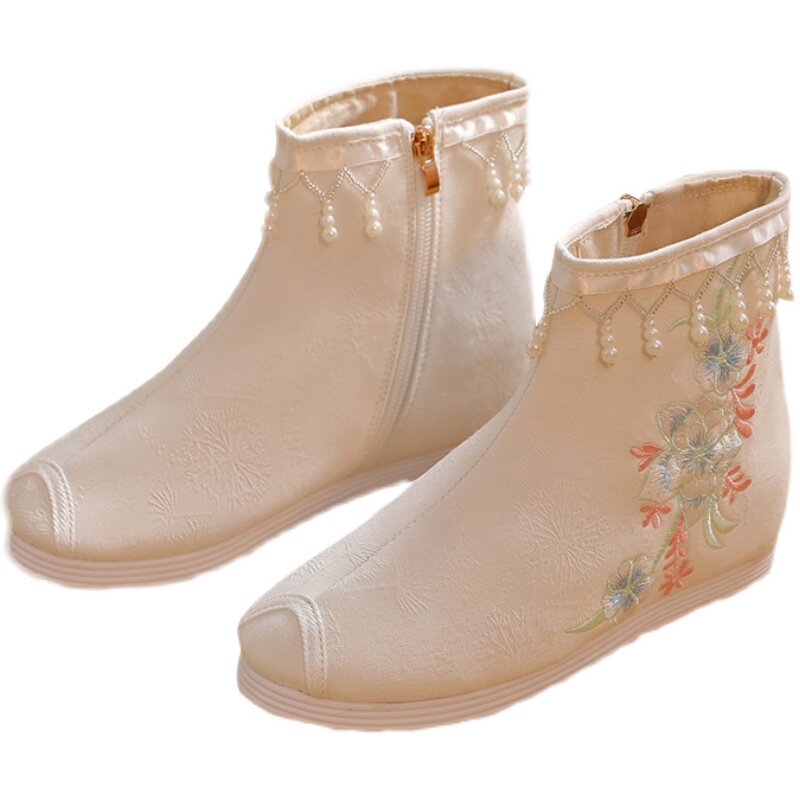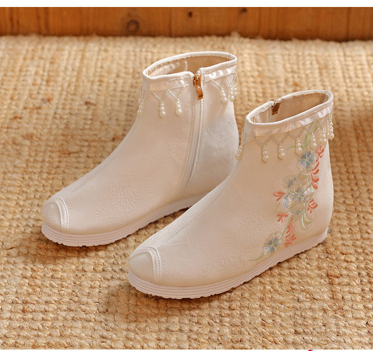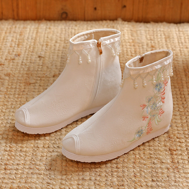 Утепленное цветное ханьфу, высокие этнические короткие сапоги, слипоны с молнией, этнический стиль