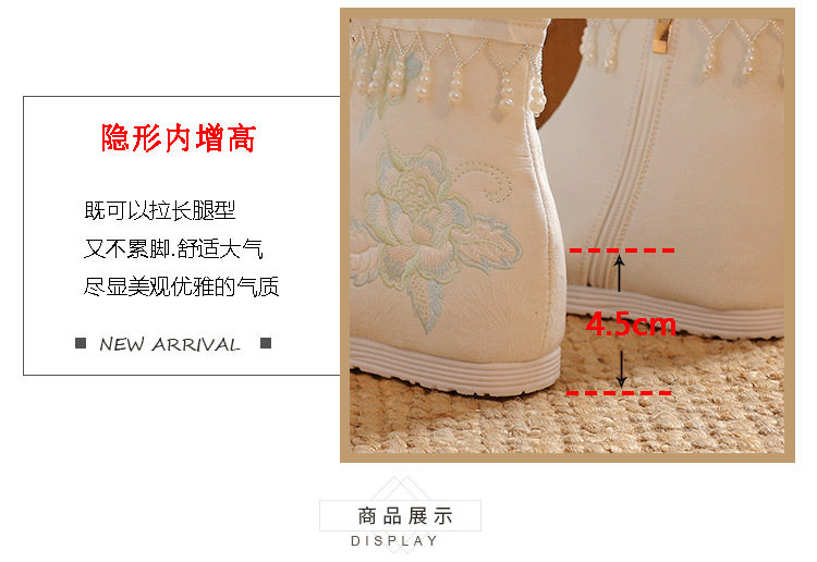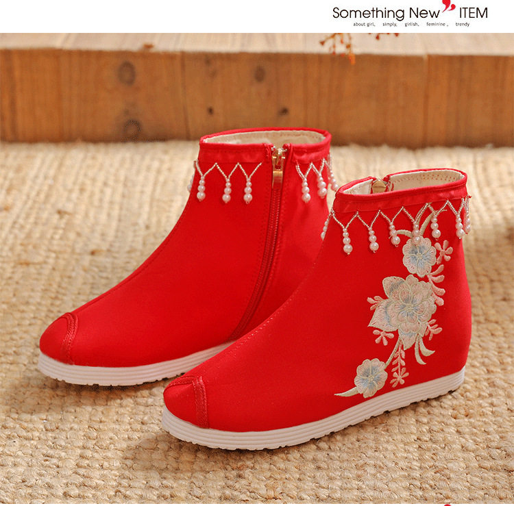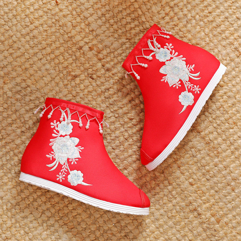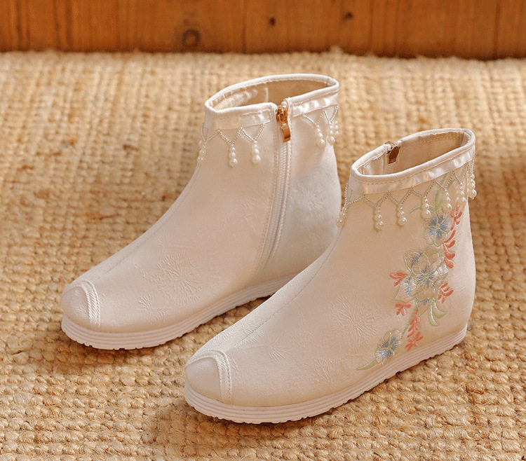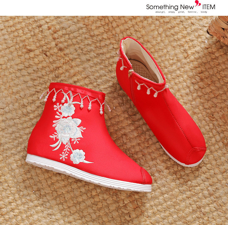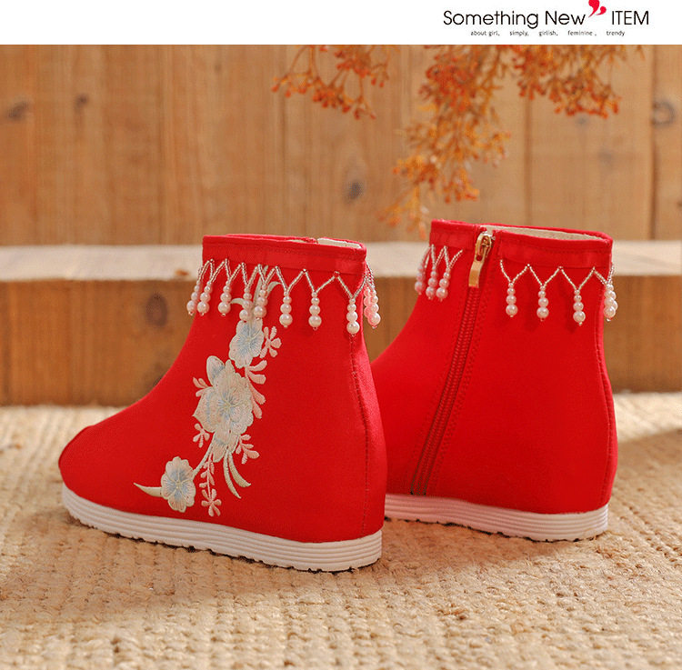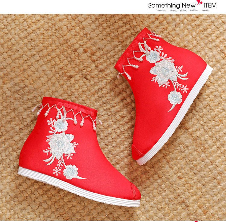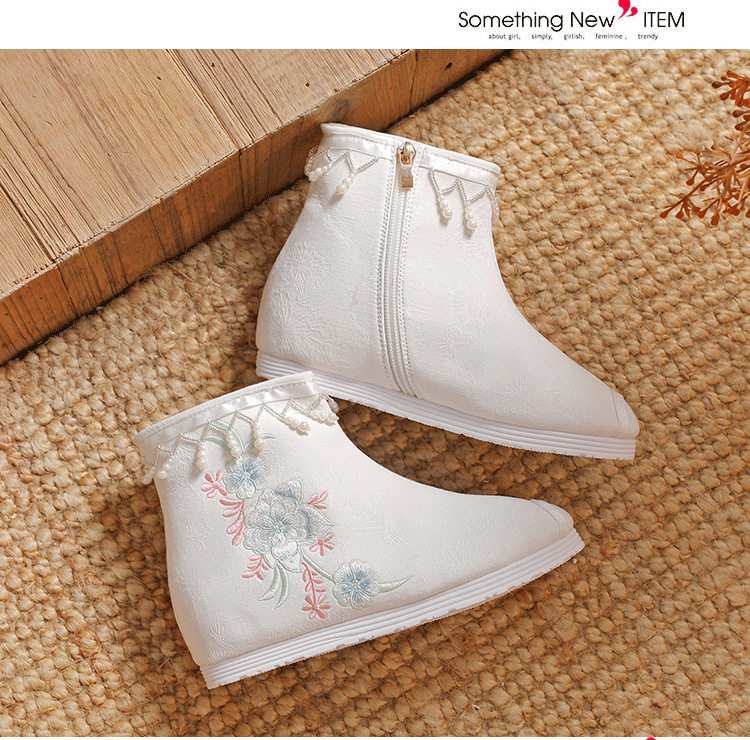 Утепленное цветное ханьфу, высокие этнические короткие сапоги, слипоны с молнией, этнический стиль