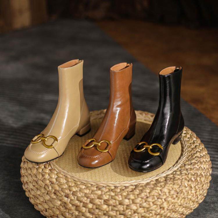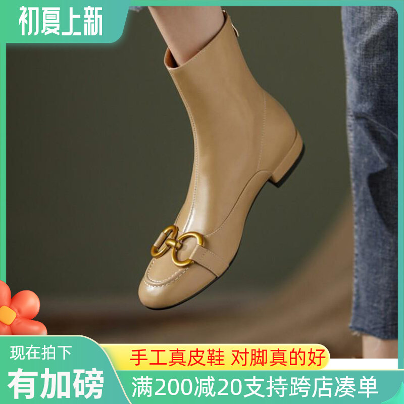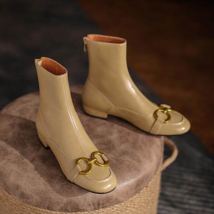 Martens, модные металлические универсальные короткие сапоги, абрикосовые ботинки, коллекция 2021, из натуральной кожи