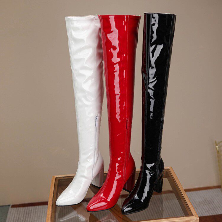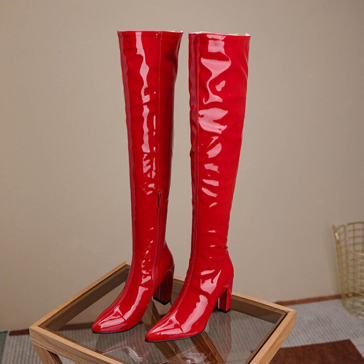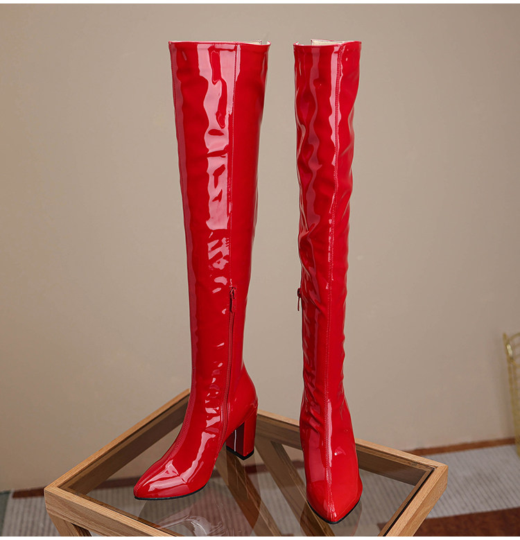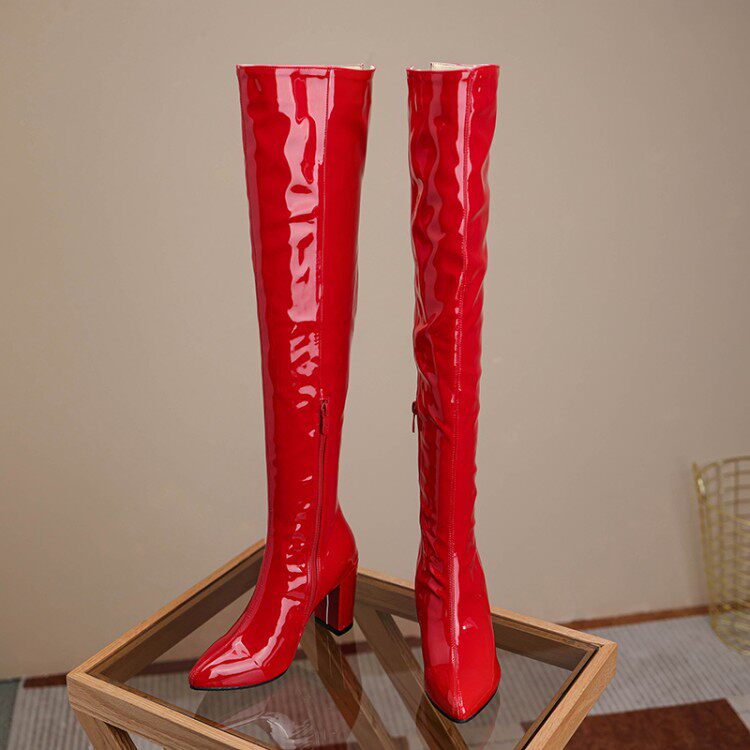 Закупить товары Красные лаковые ботфорты, большие размеры 43, 44, 45, 46, ботинки КТВ на шпильке, ботинки для ночного клуба