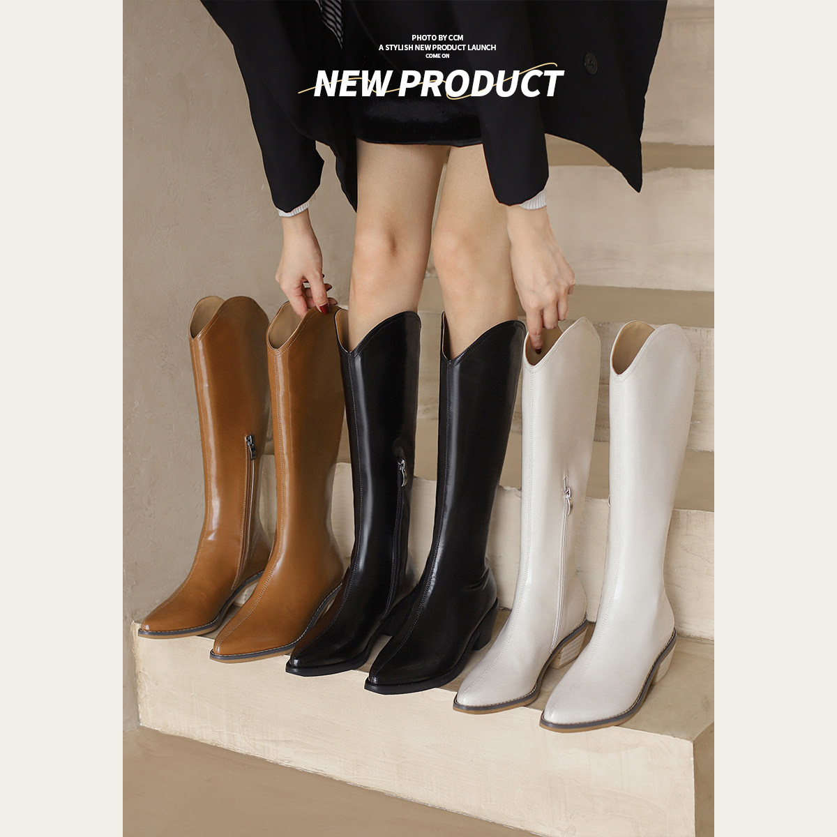 Весенние флисовые джинсовые высокие сапоги с заостренным носом, коллекция 2022