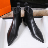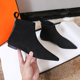 Ботинки, универсальные кожаные напяточники с молнией, короткие сапоги с заостренным носом, европейский стиль, 2023