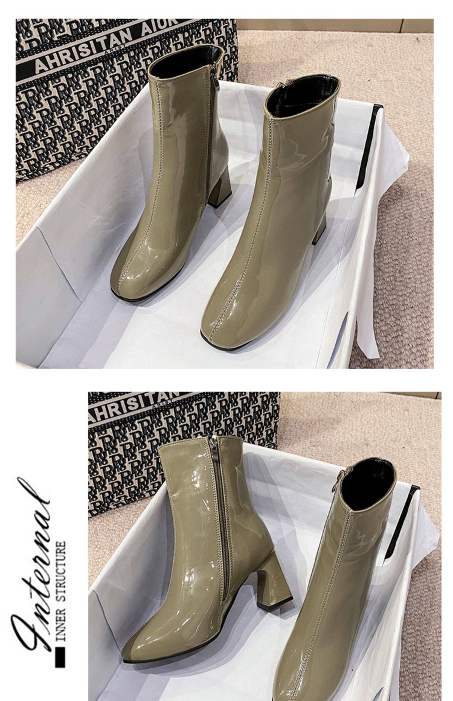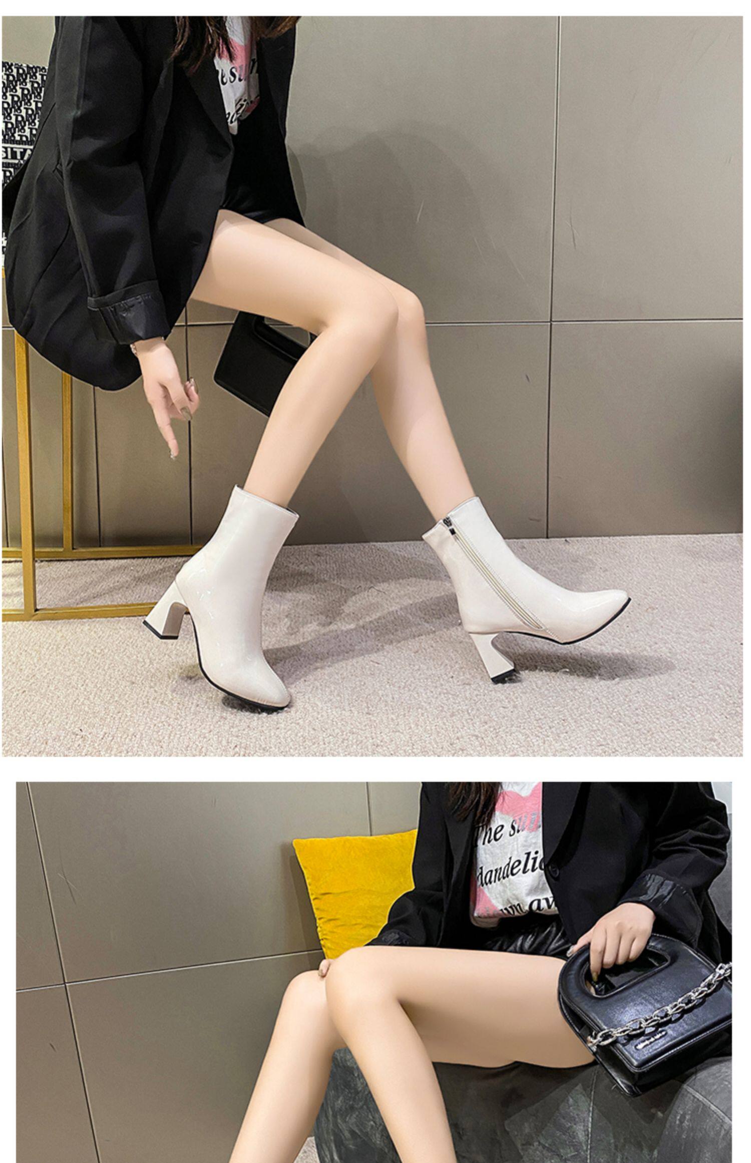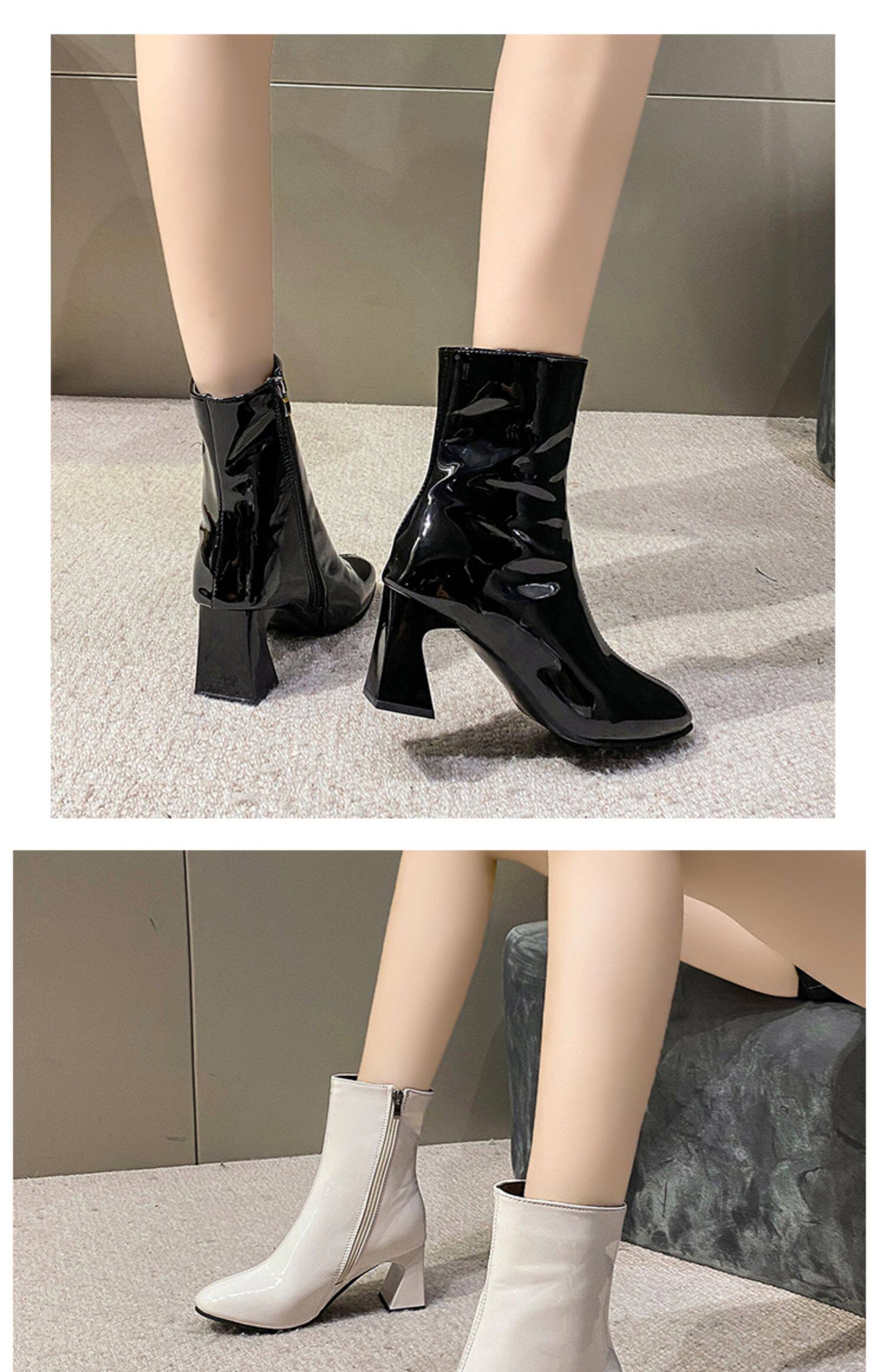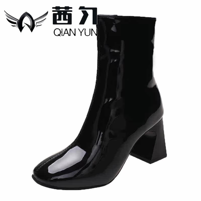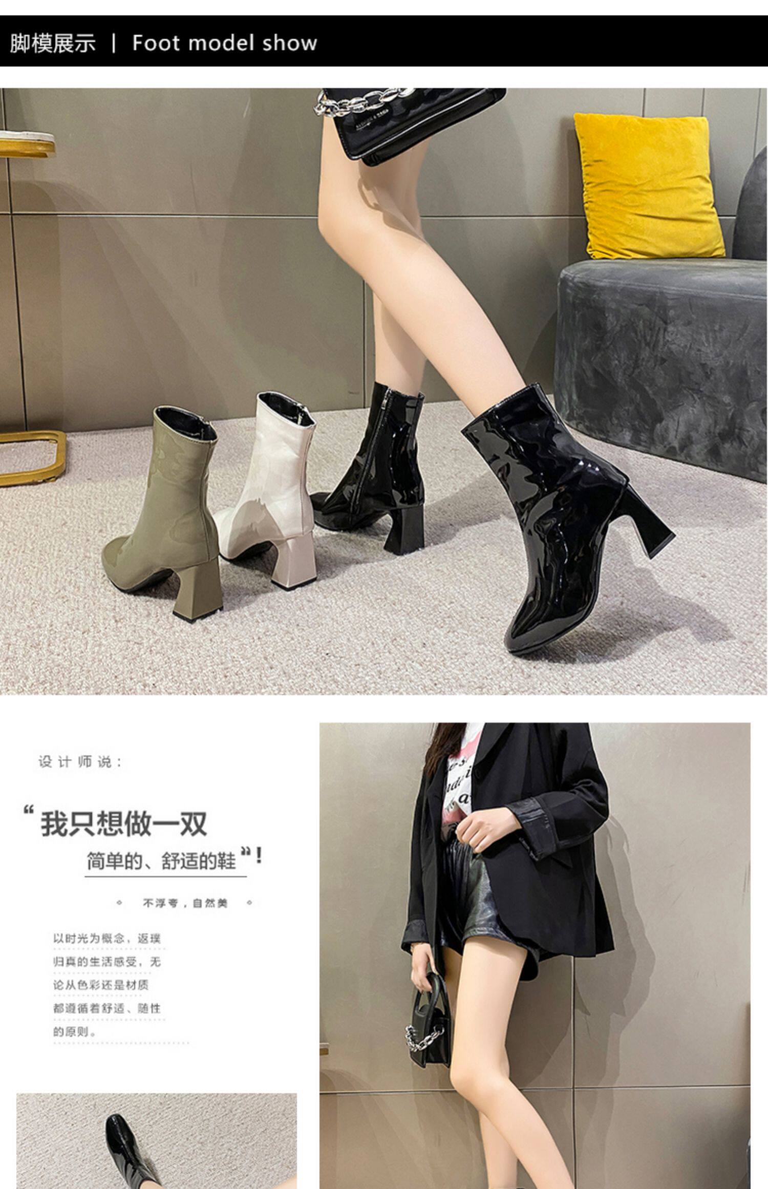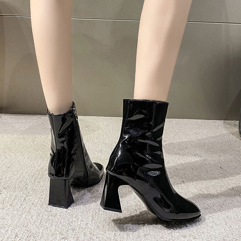 Весенние черные эластичные короткие сапоги на высоком каблуке, европейский стиль