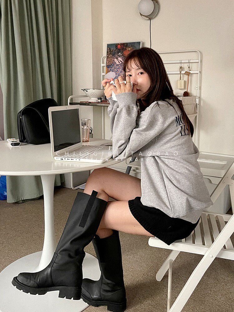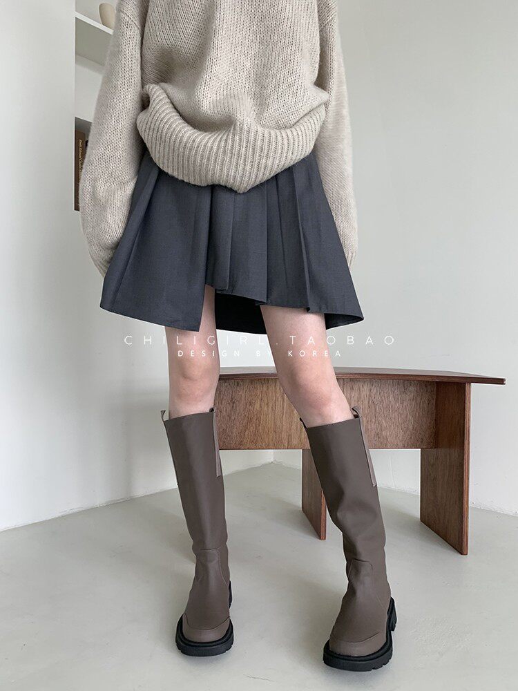 Chiligirl South Korea 2022 Новые грубые каблуки могут быть окружены коленными сапогами Retro Knight Boots Женщими толстыми ногами