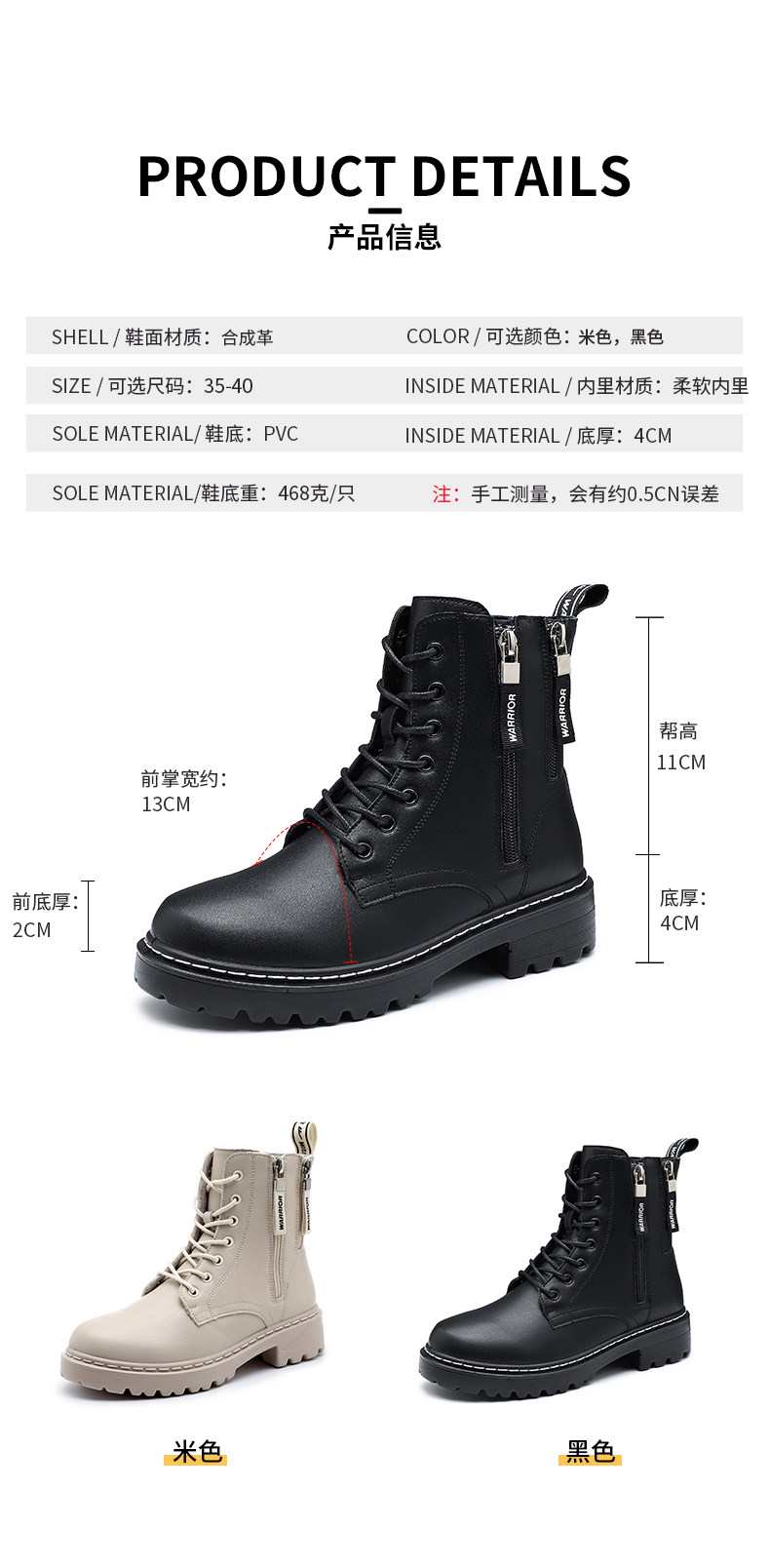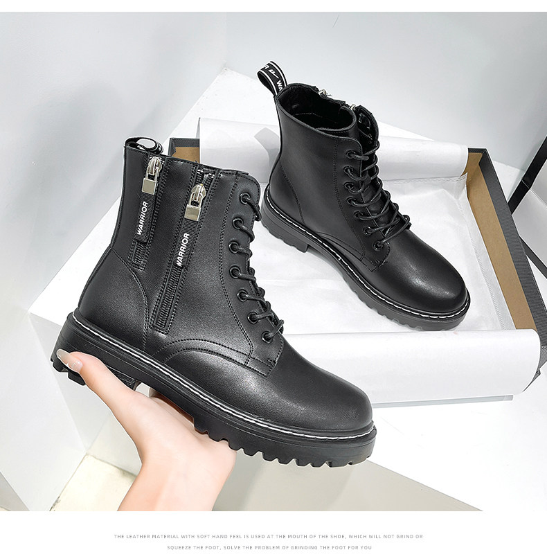 Warrior, Martens, демисезонные универсальные ботинки с молнией в английском стиле, модные черные короткие сапоги, 2021 года