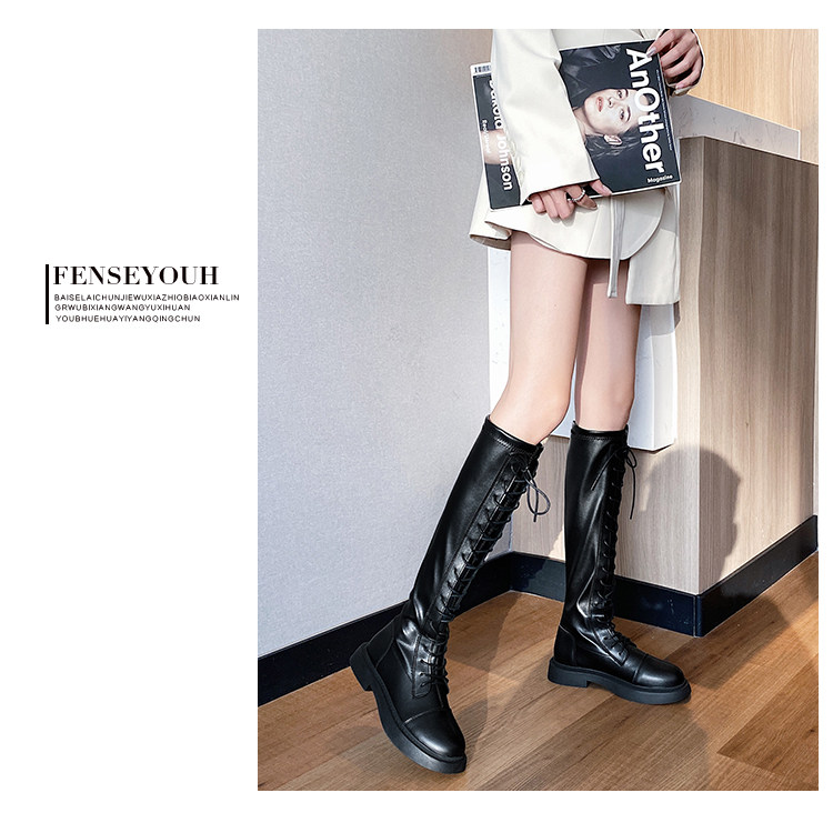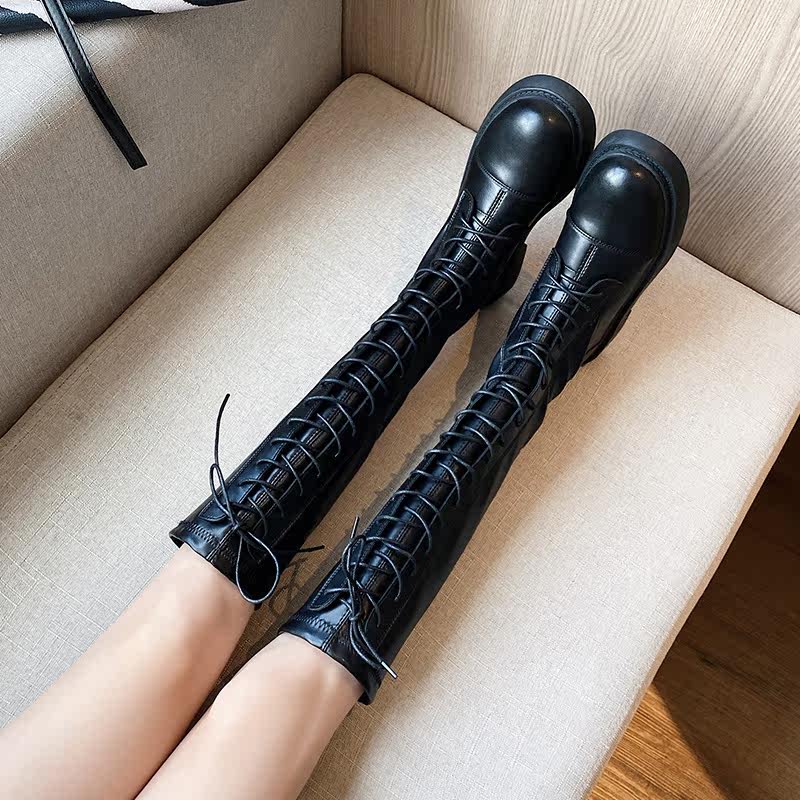 Высокие сапоги на платформе, черные ботинки, коллекция 2021, по фигуре, подходит для подростков