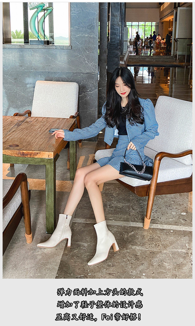 Бежевые весенние демисезонные короткие сапоги на высоком каблуке, ботинки, 2024 года