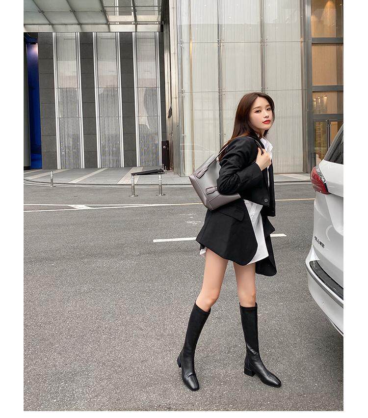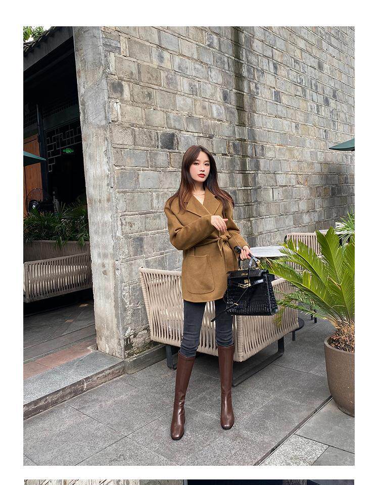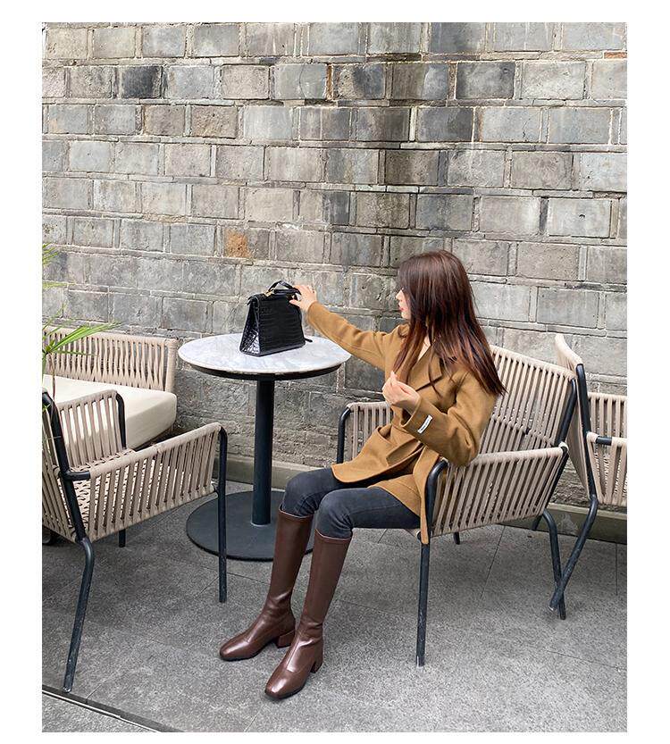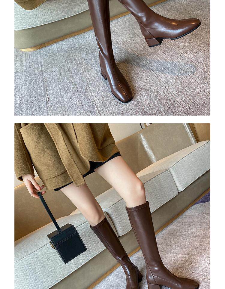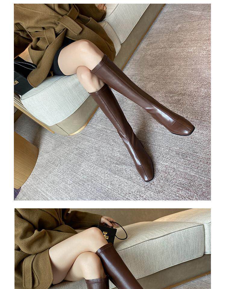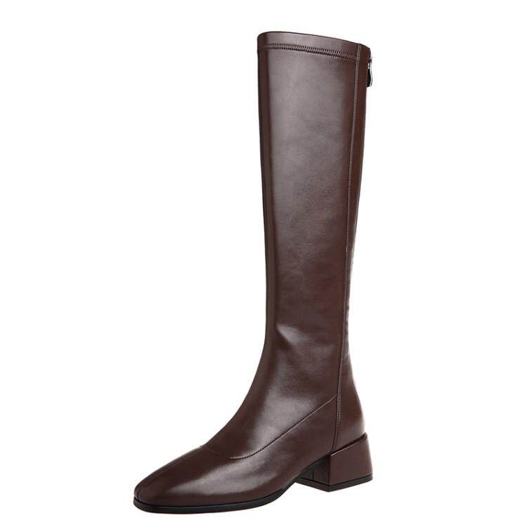Эластичные коричневые высокие сапоги, ботинки, по фигуре