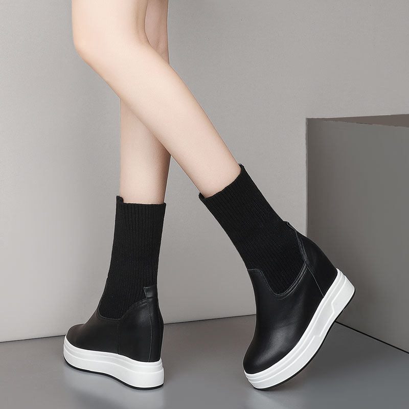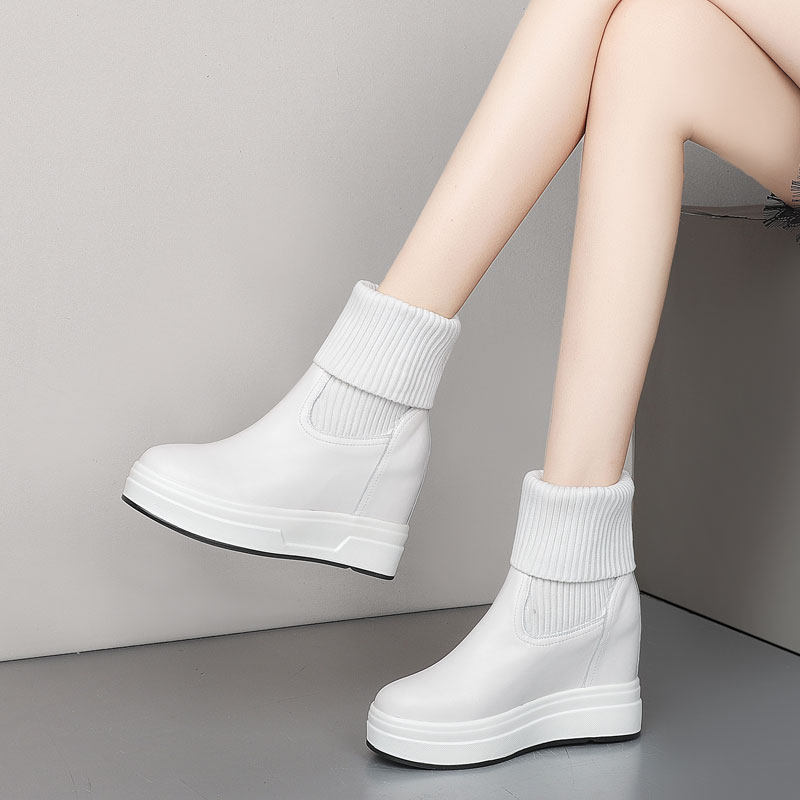 Утепленные белые высокие универсальные короткие сапоги для отдыха на платформе, высокая обувь, из натуральной кожи, 9см