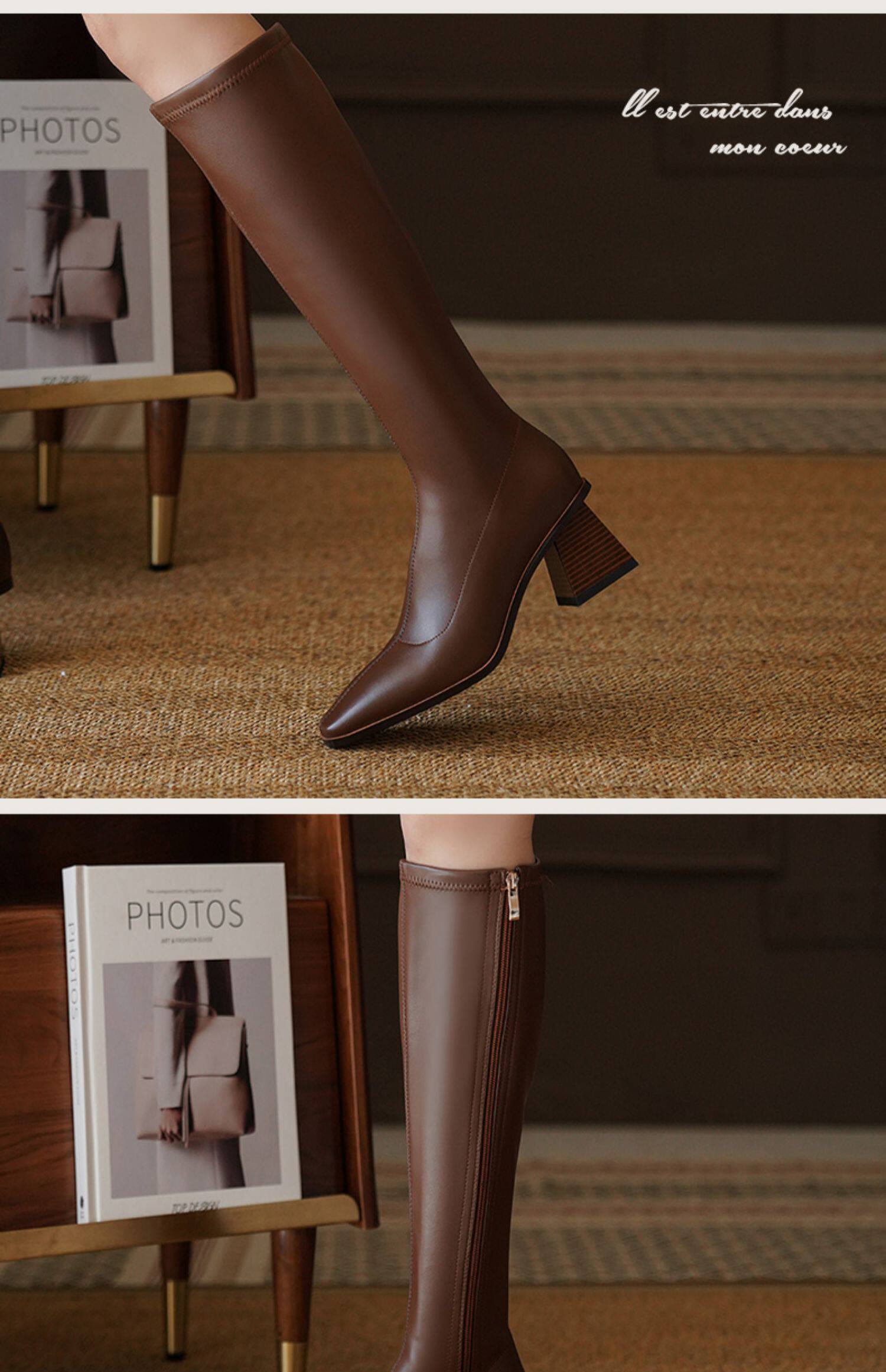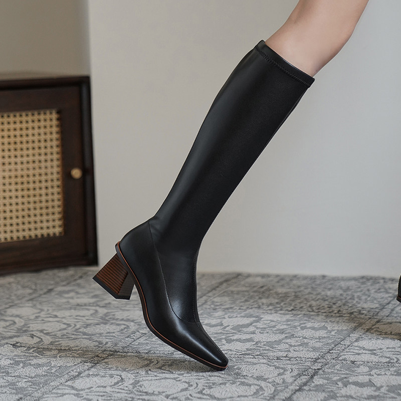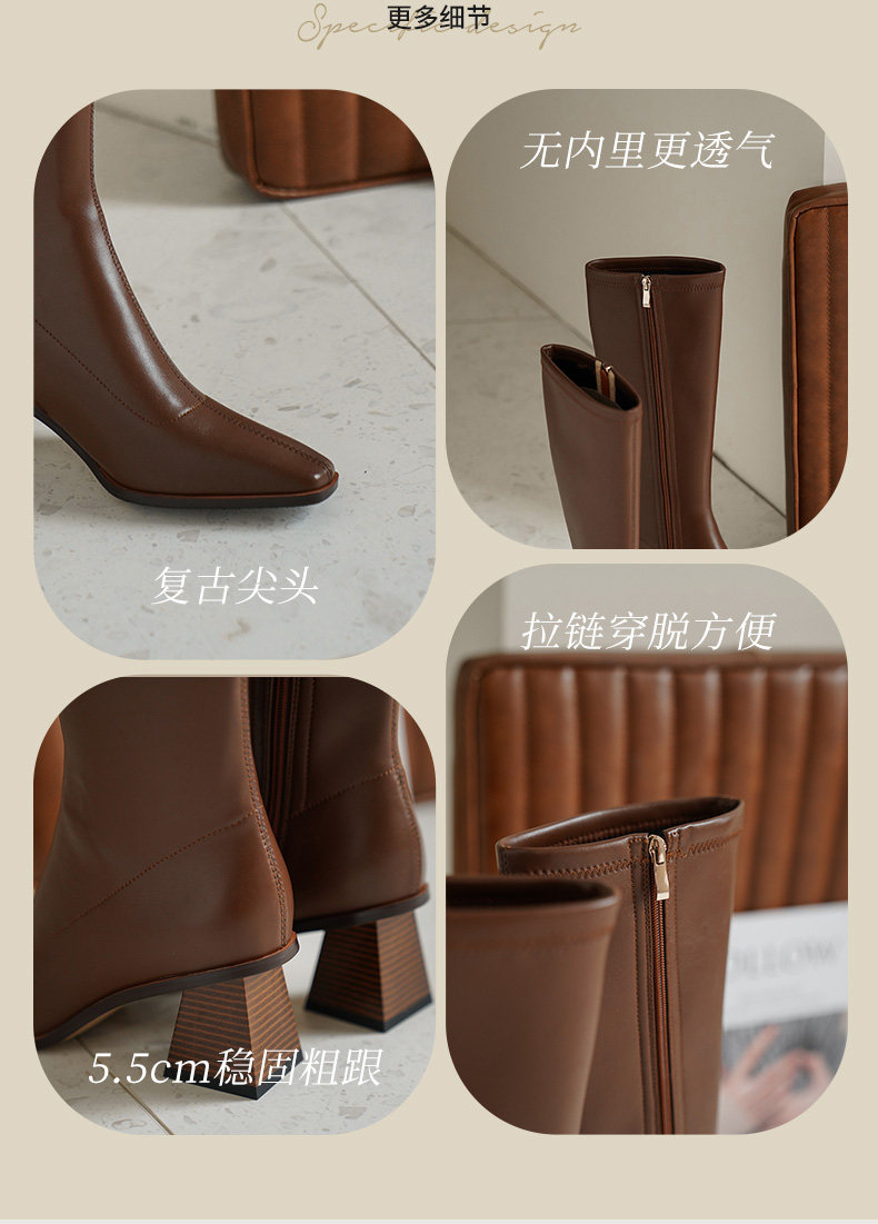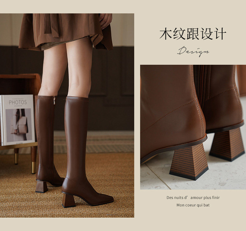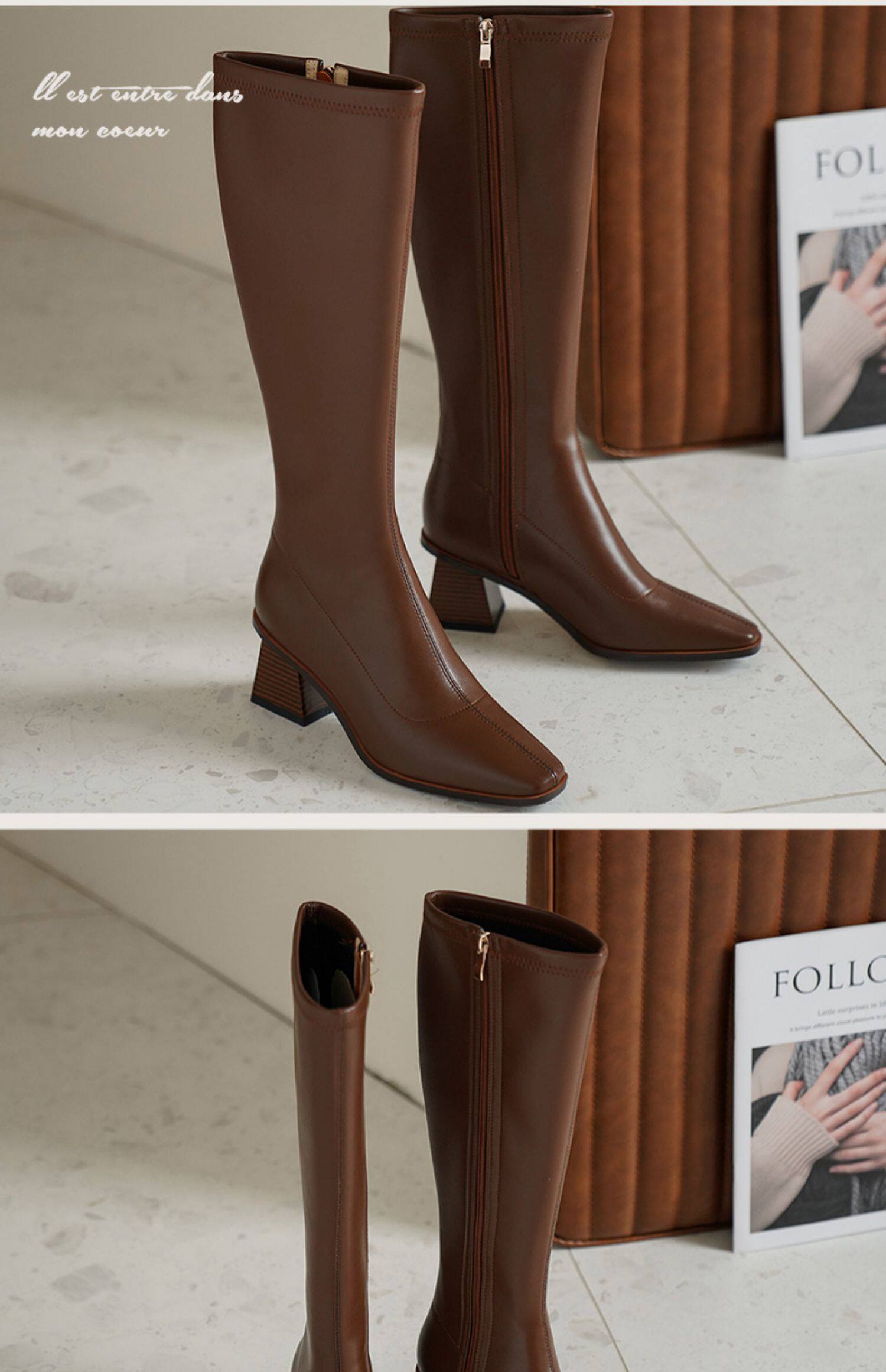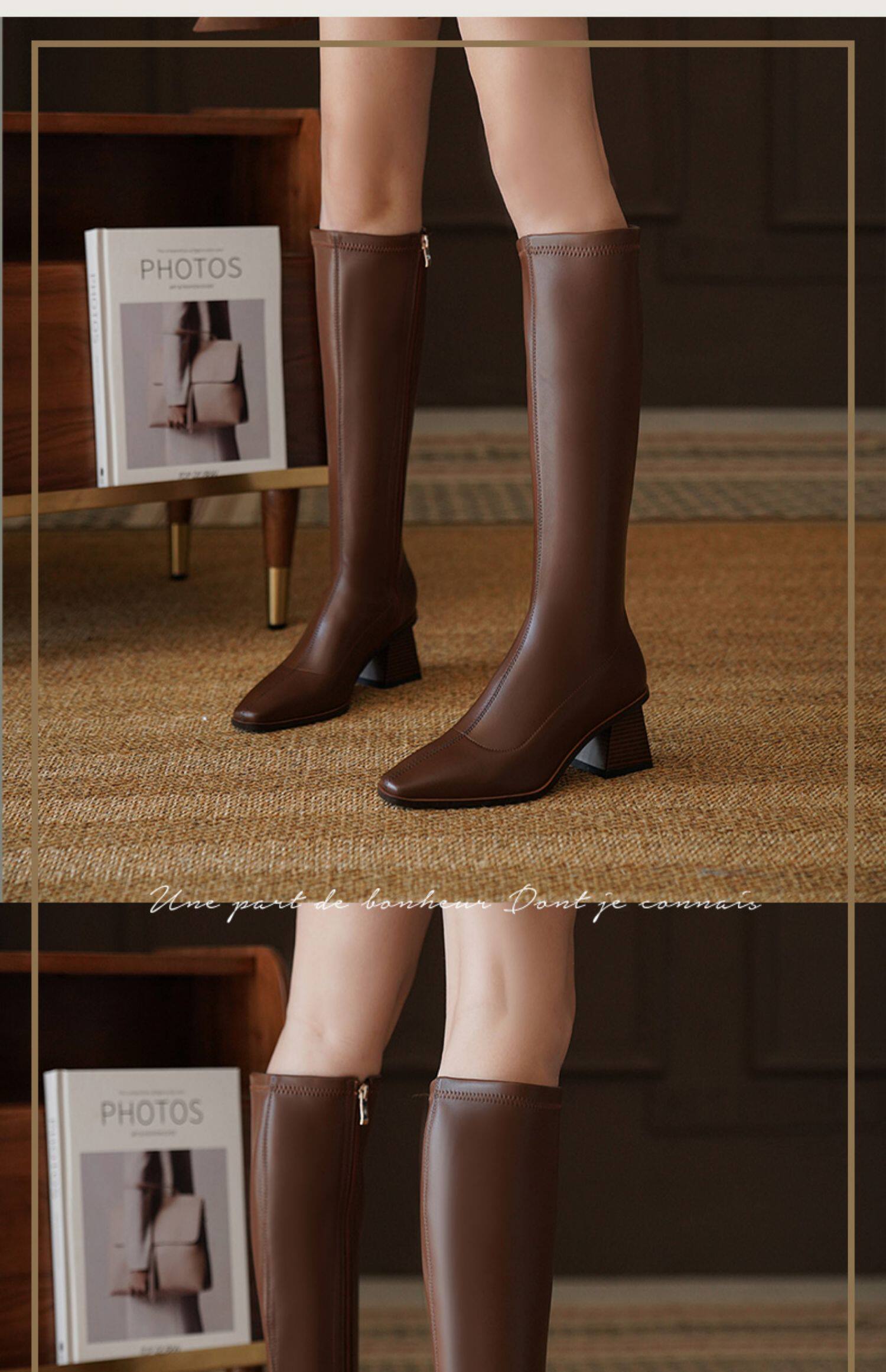 Коричневые демисезонные высокие сапоги, высокие эластичные ботинки, коллекция 2022, по фигуре