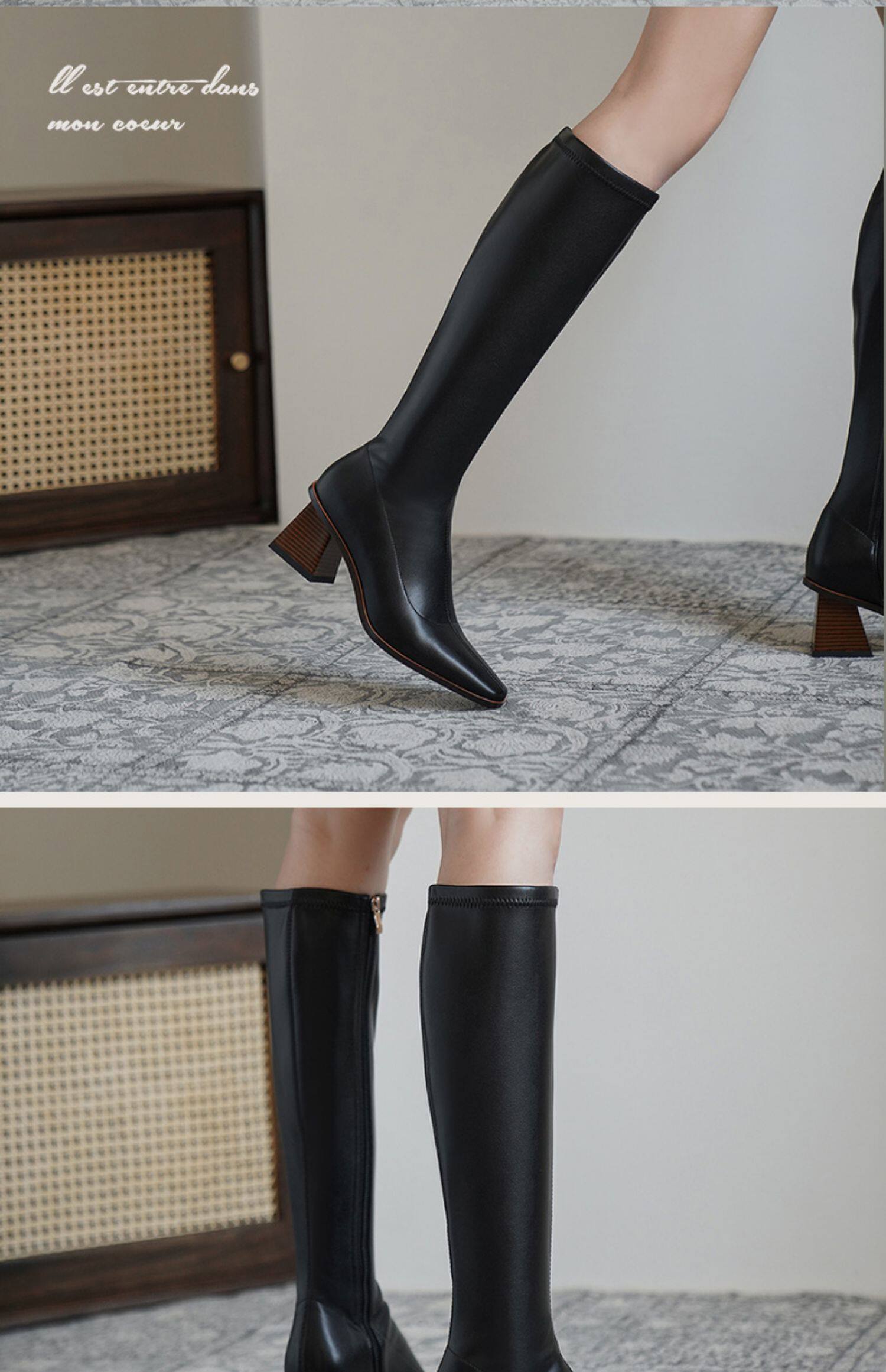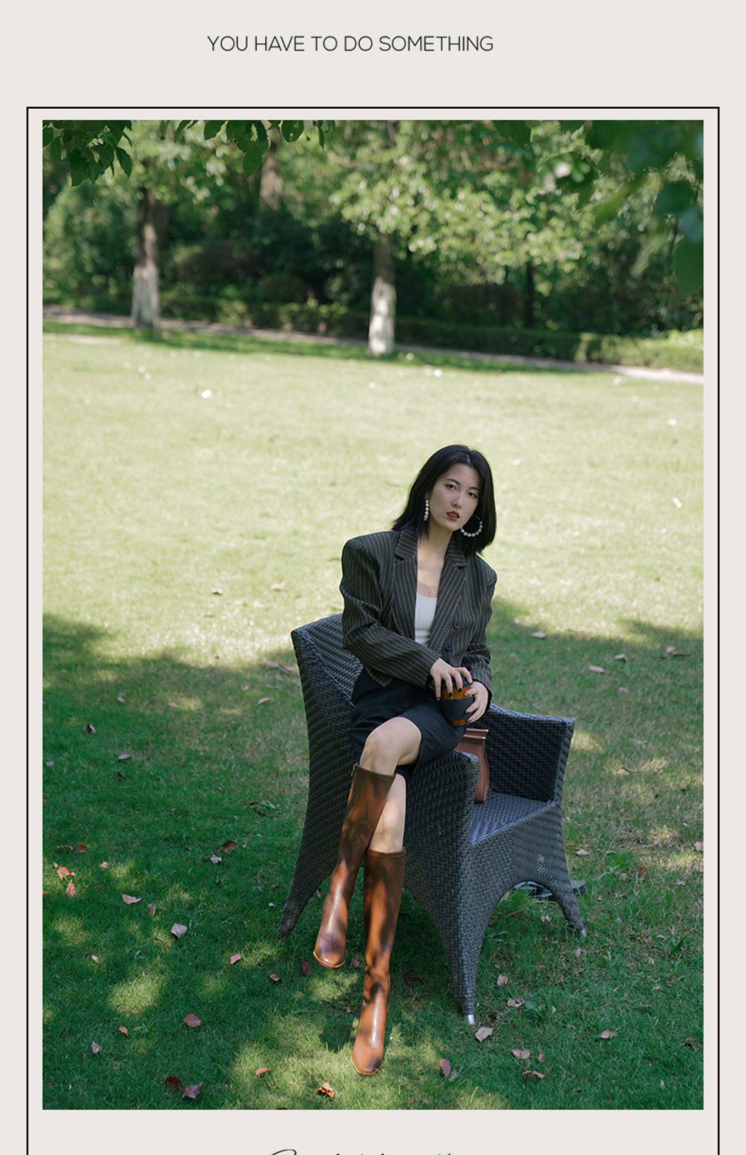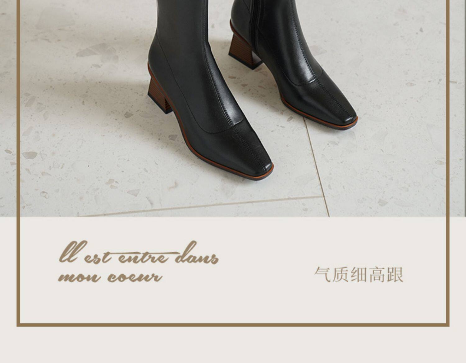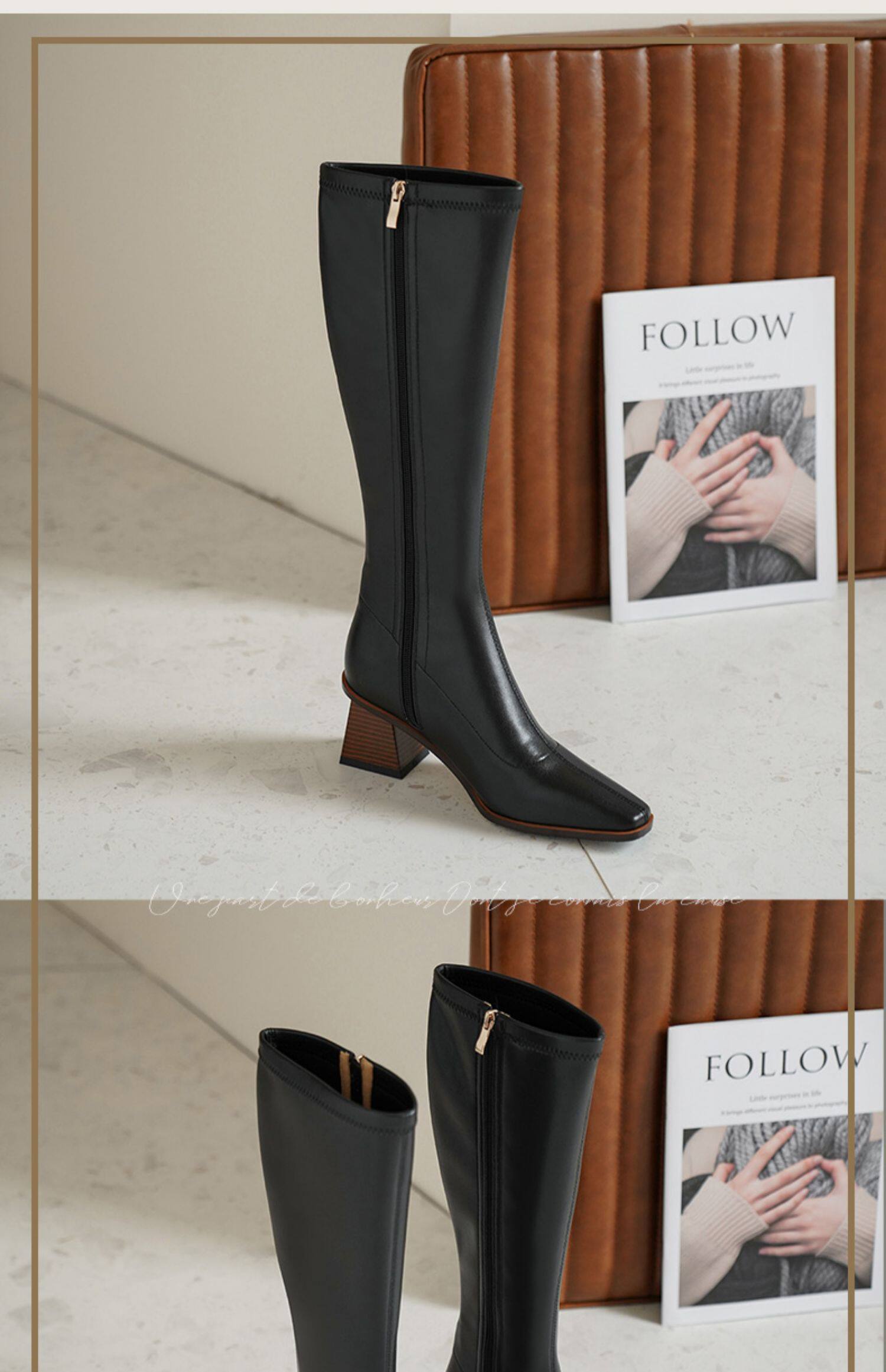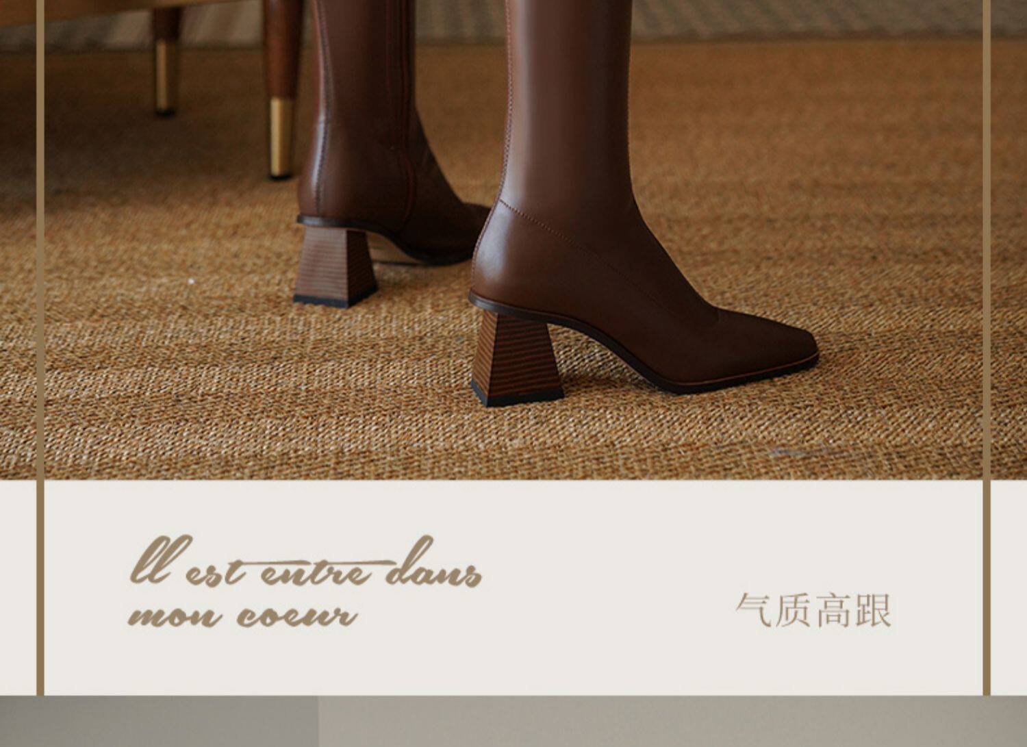 Коричневые демисезонные высокие сапоги, высокие эластичные ботинки, коллекция 2022, по фигуре