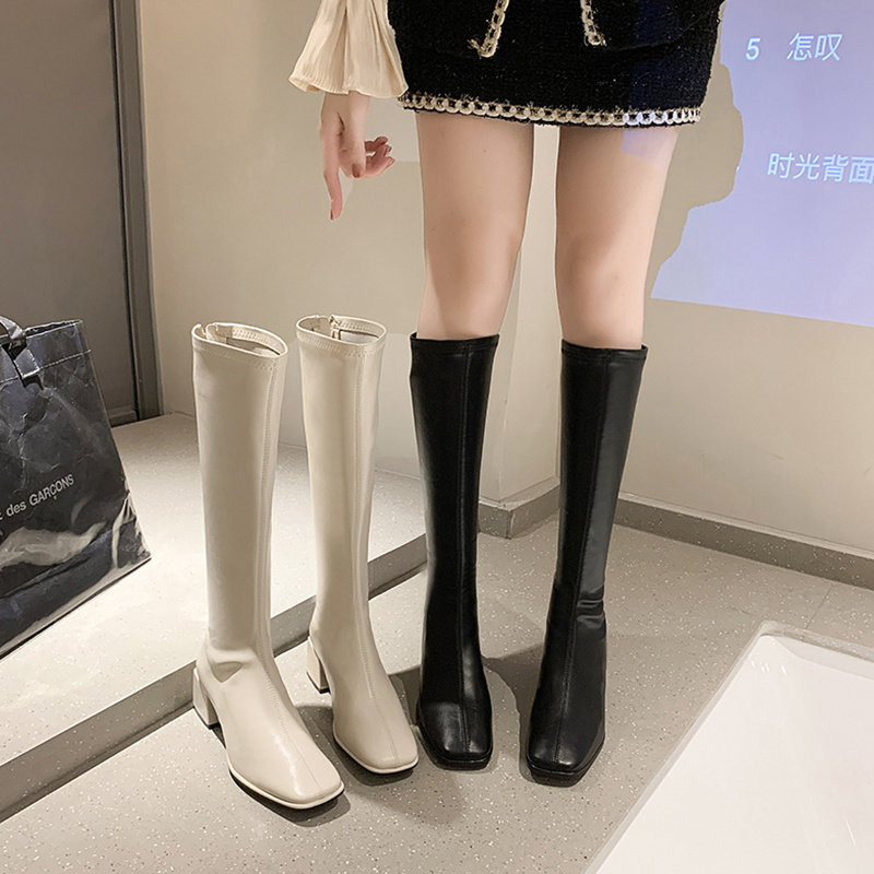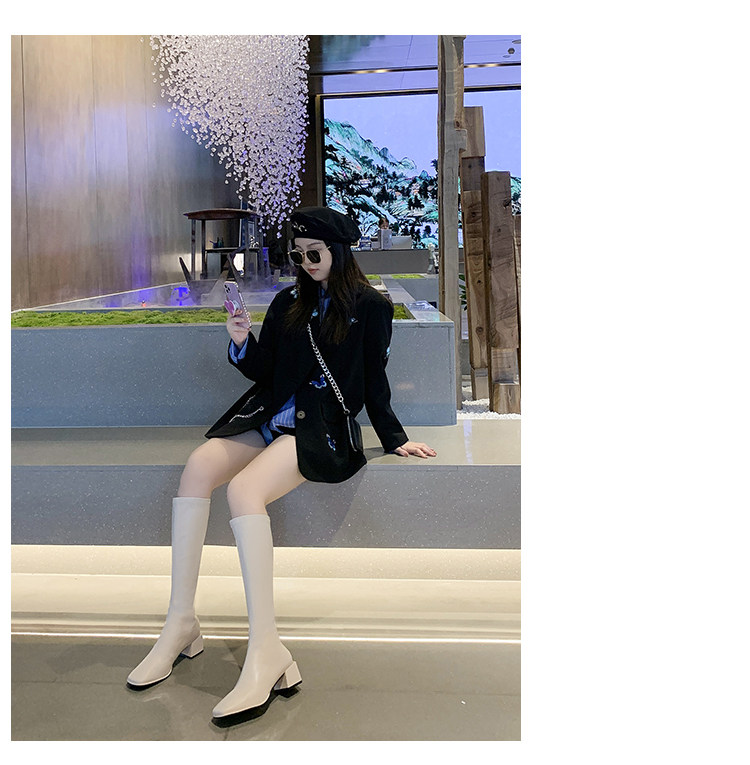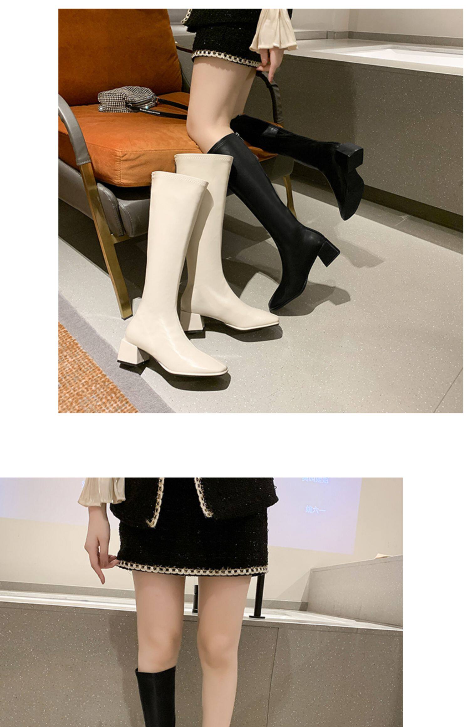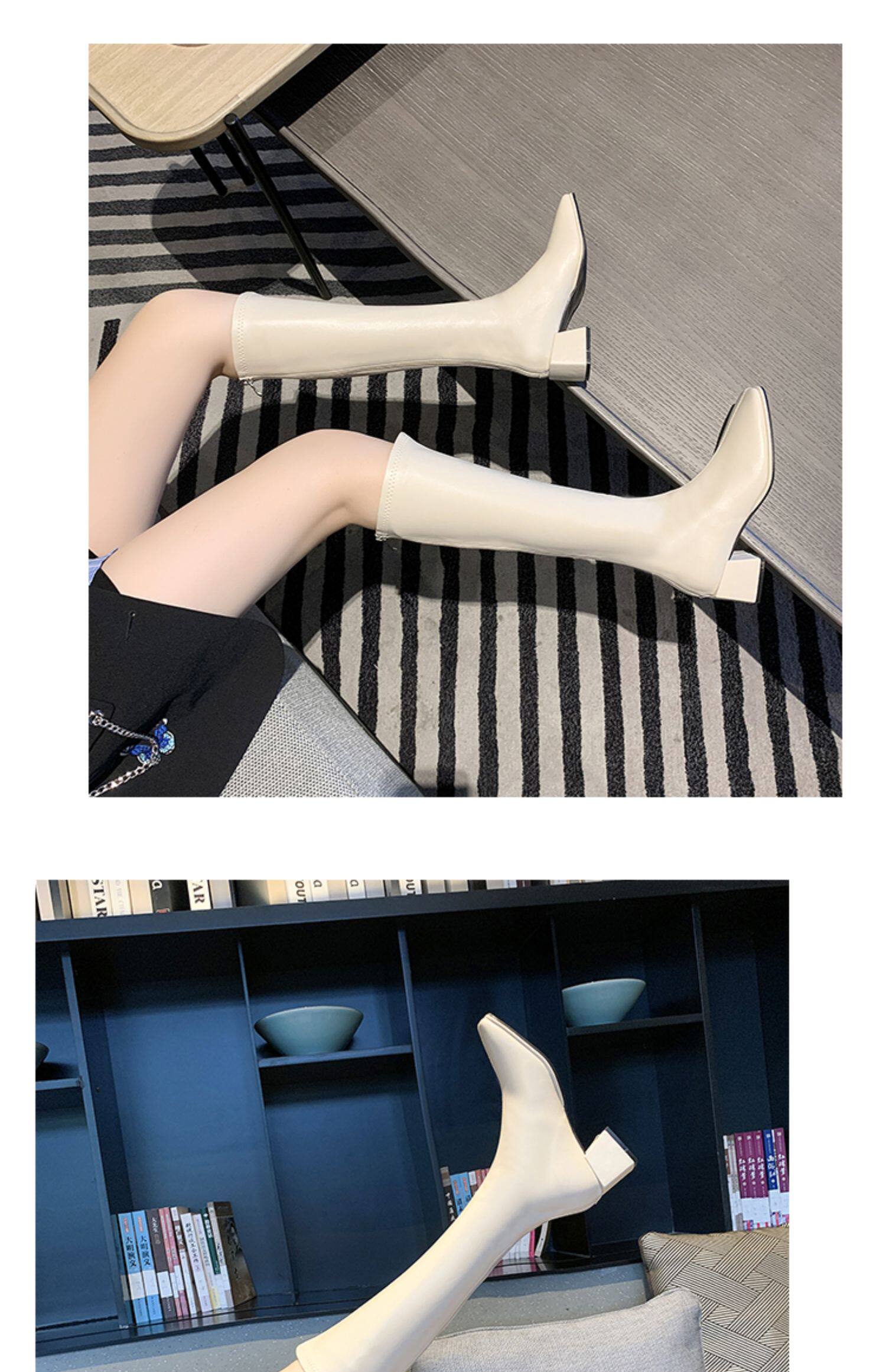 Весенние высокие сапоги, демисезонные белые ботинки, коллекция 2021, средней длины
