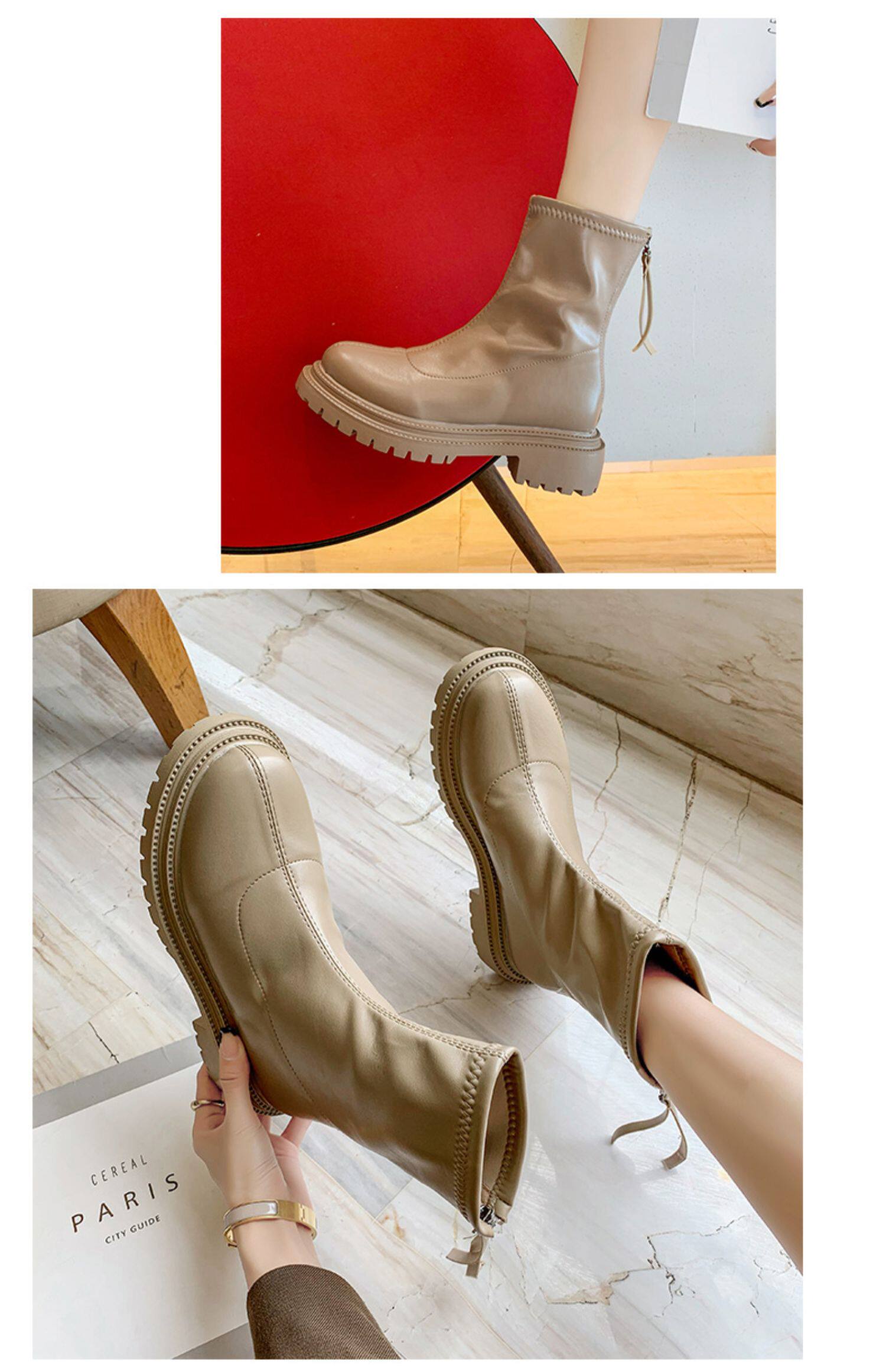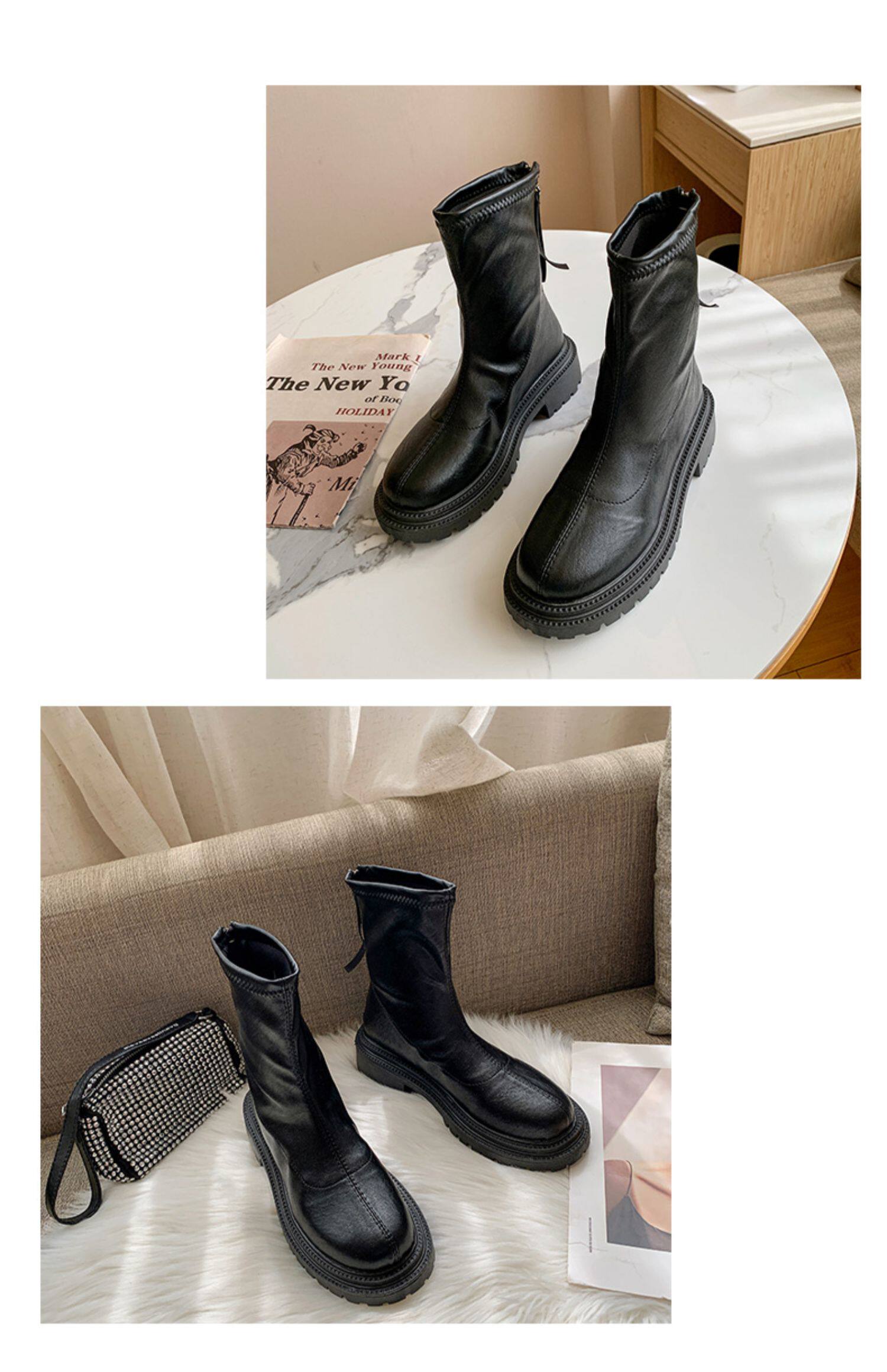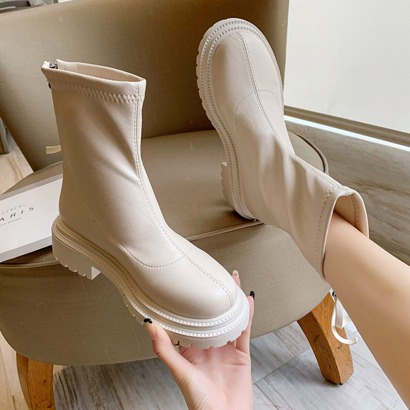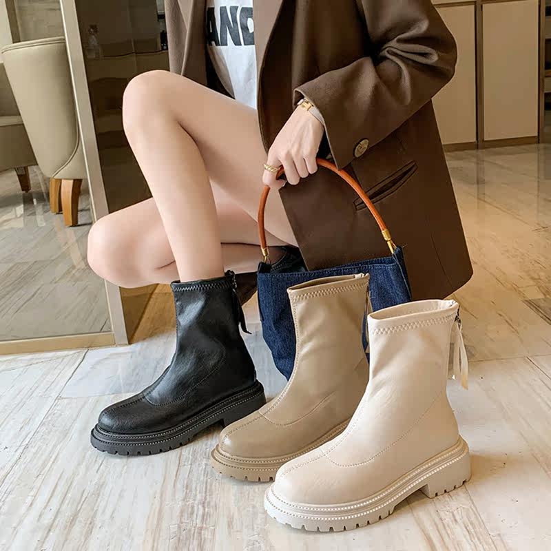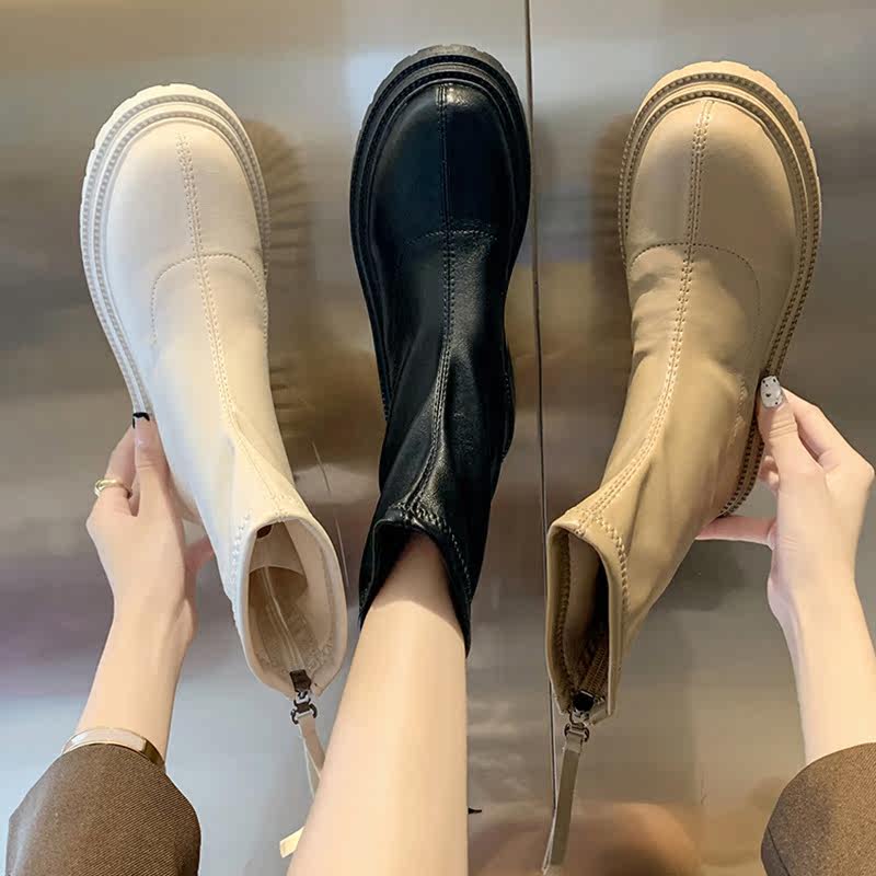 Martens, универсальные эластичные короткие сапоги с молнией на платформе, коллекция 2021, осенние, тренд сезона