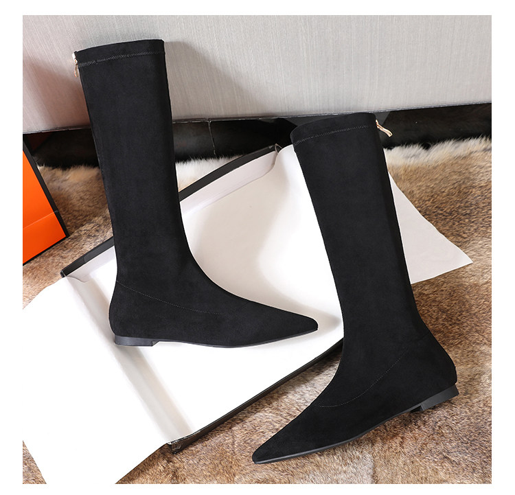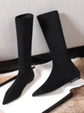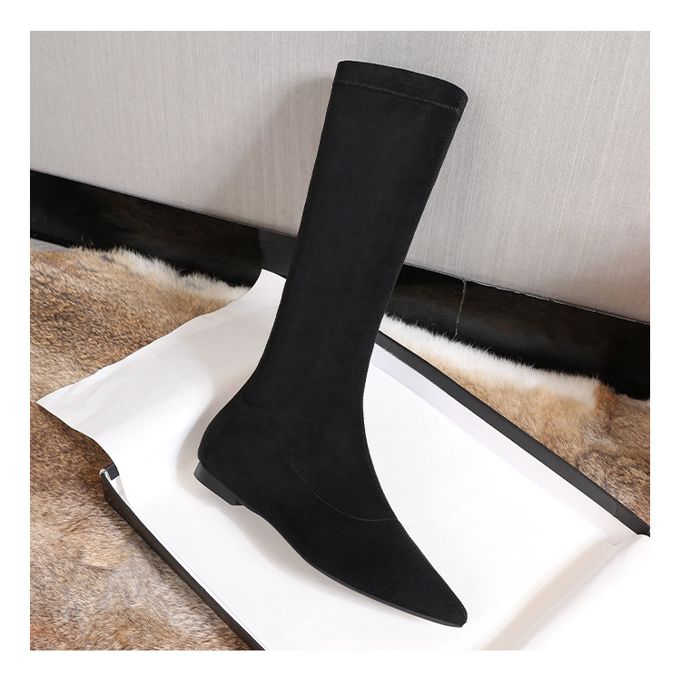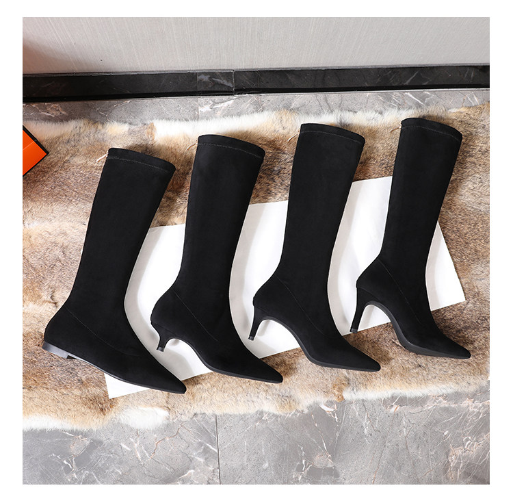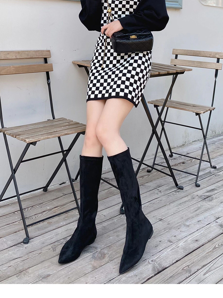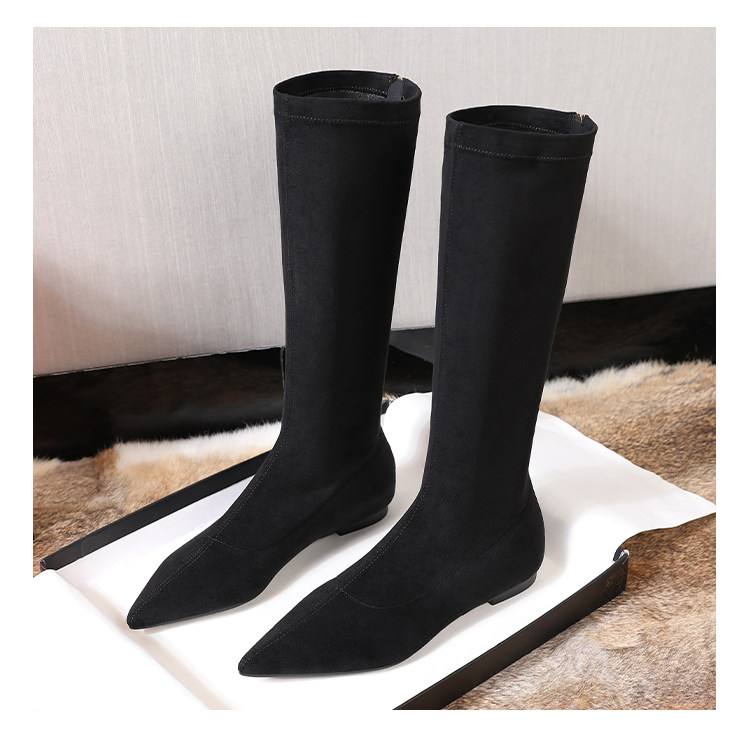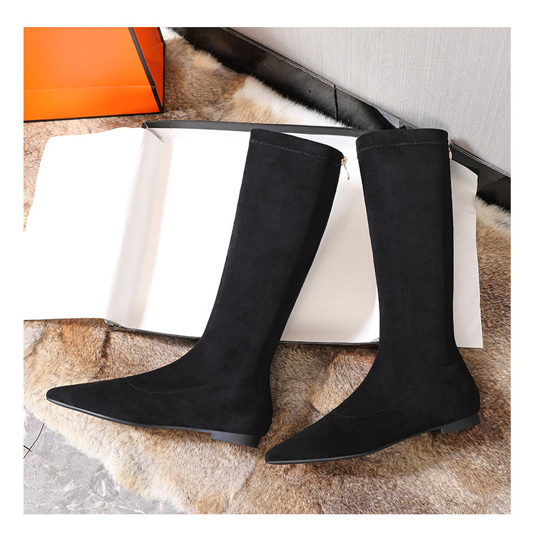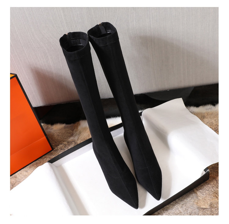 Матовые удерживающие тепло эластичные высокие сапоги с заостренным носом с молнией, европейский стиль, по фигуре
