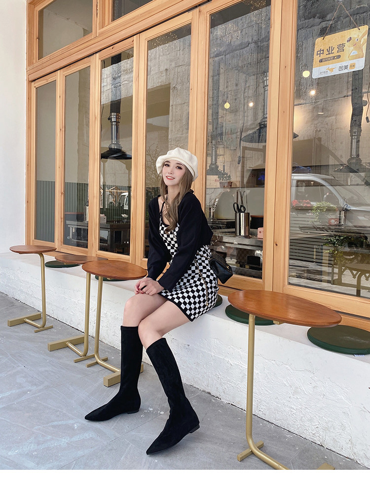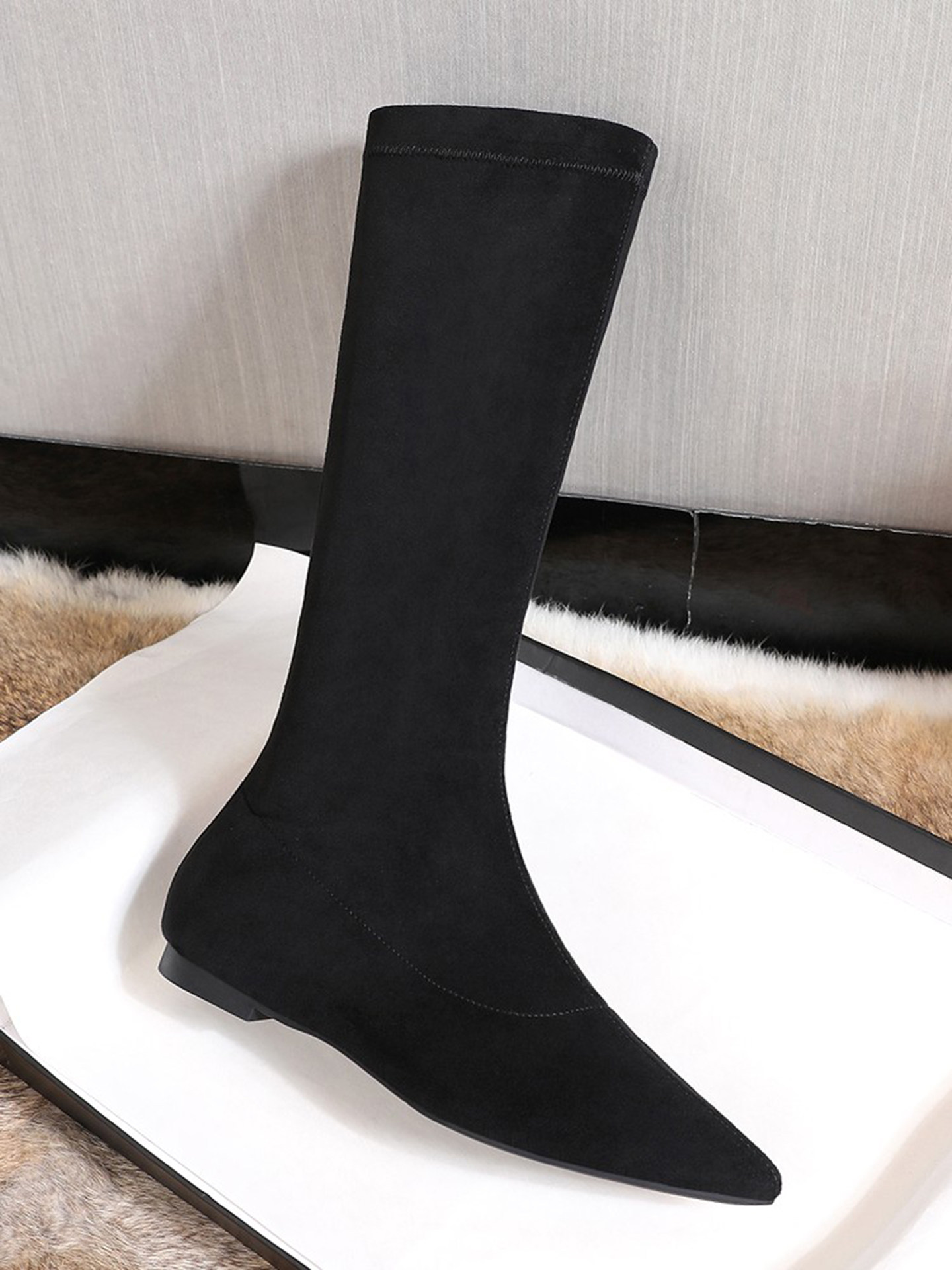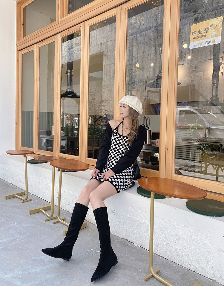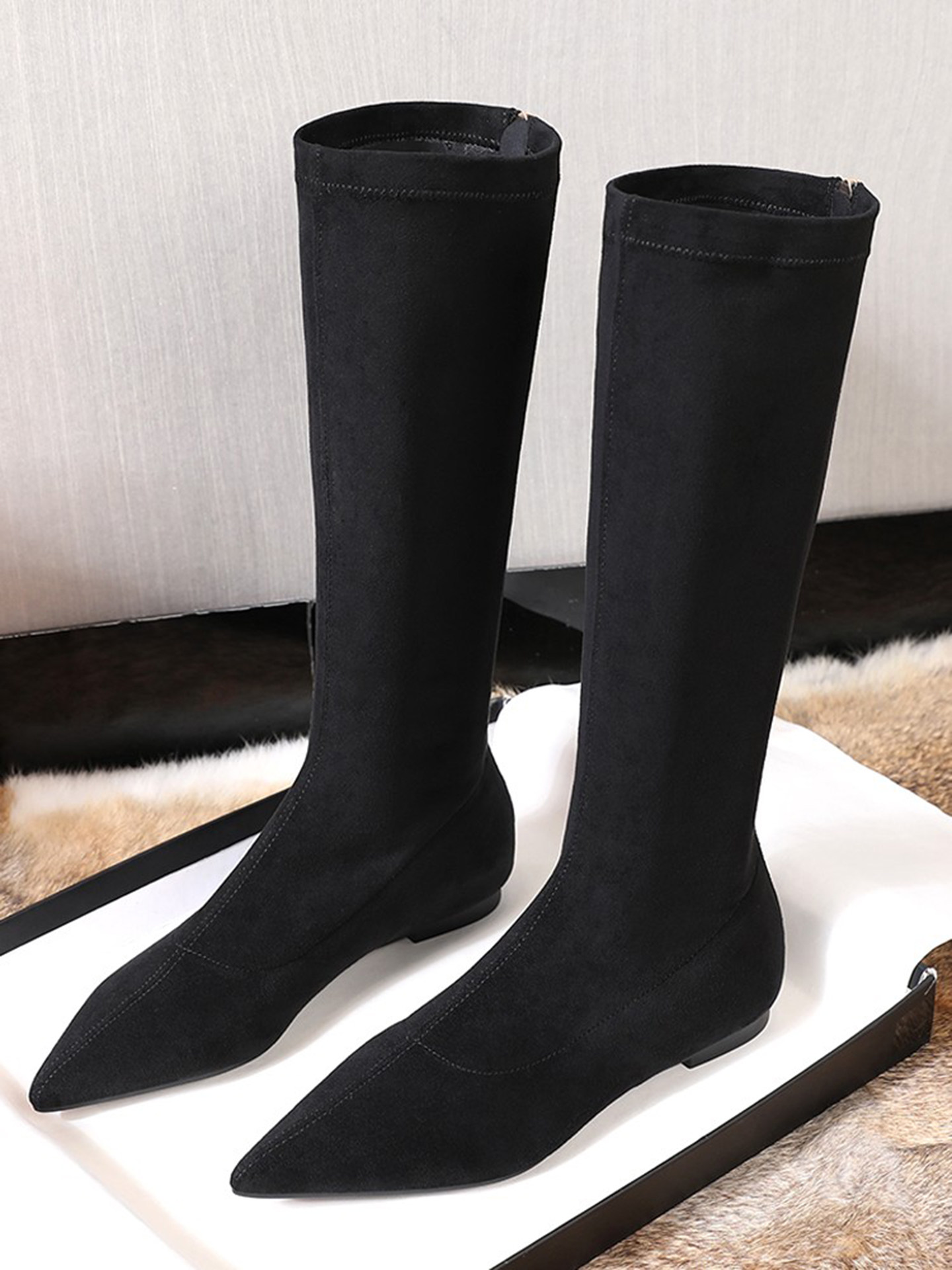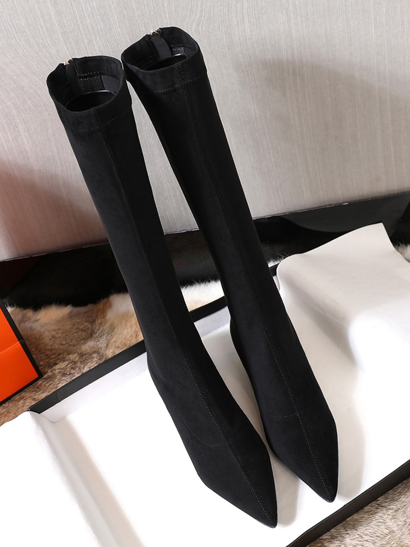 Матовые удерживающие тепло эластичные высокие сапоги с заостренным носом с молнией, европейский стиль, по фигуре