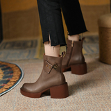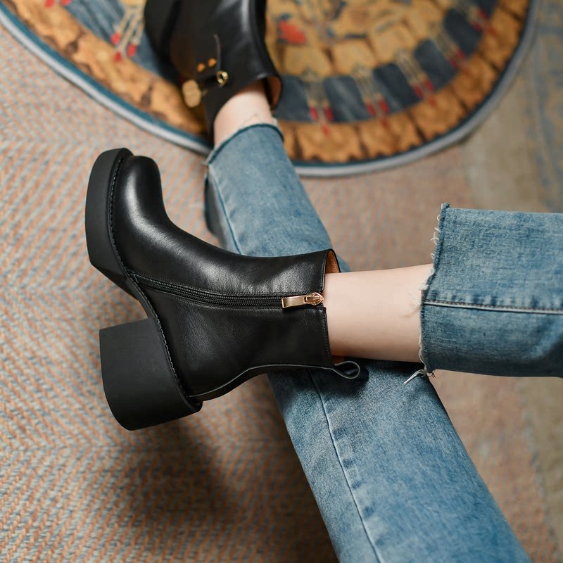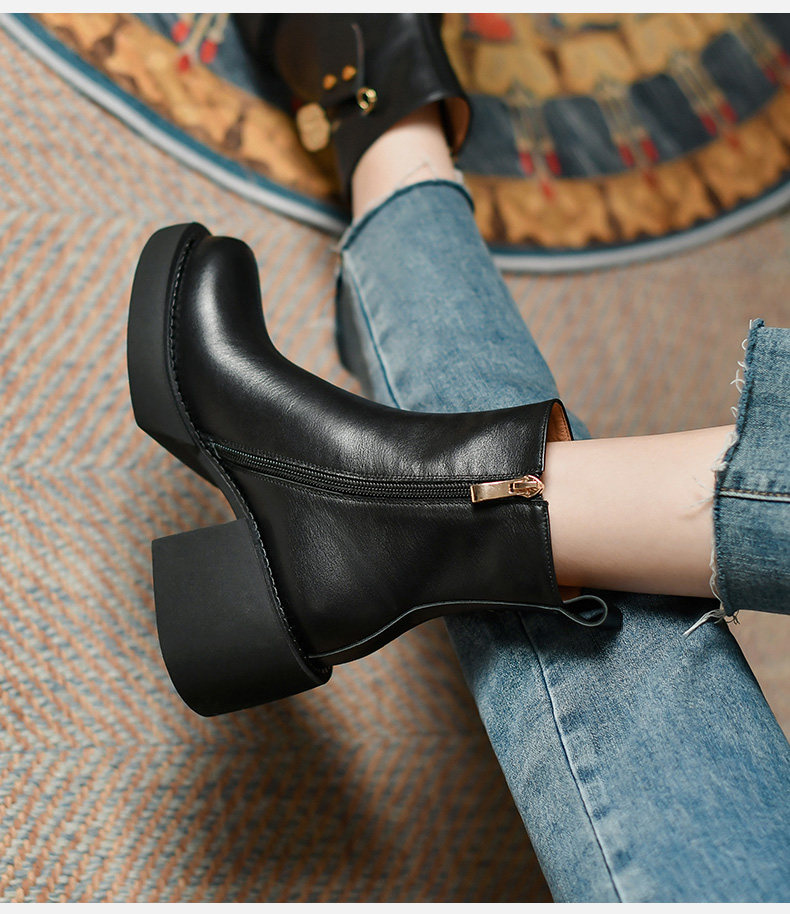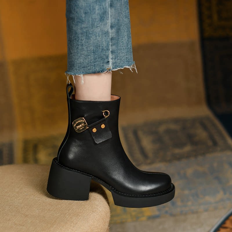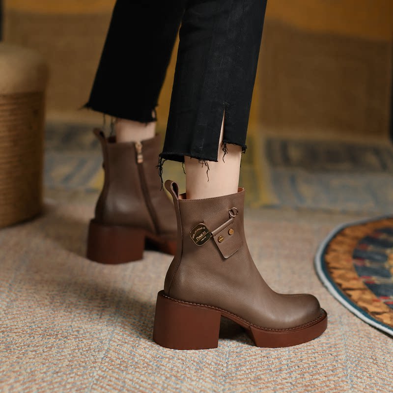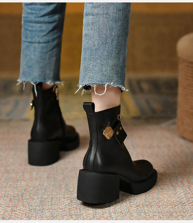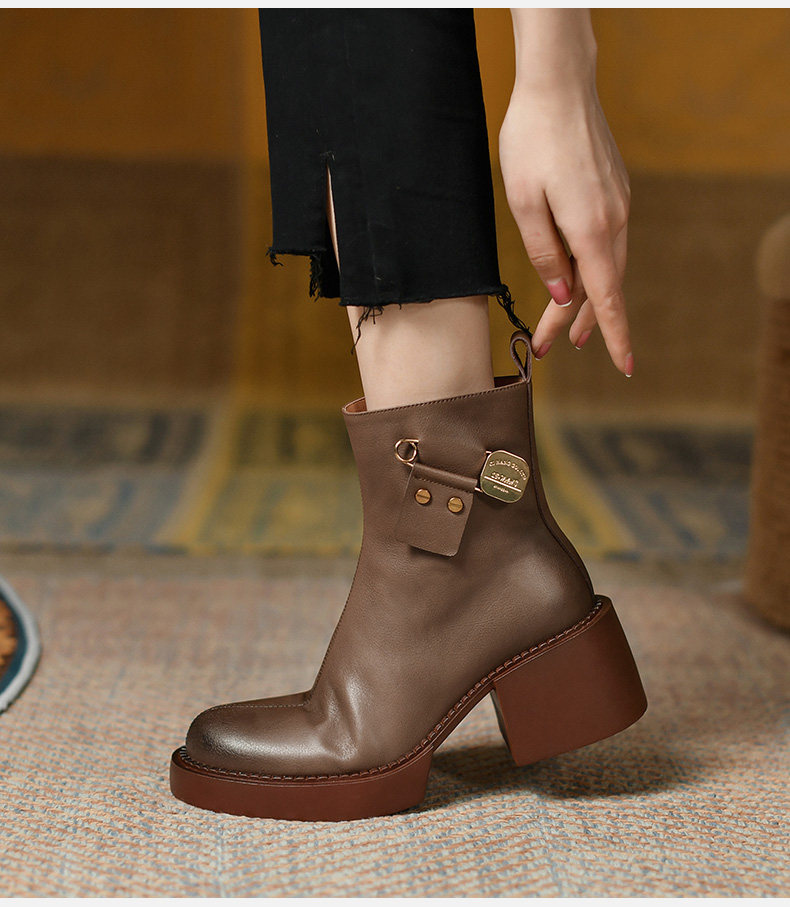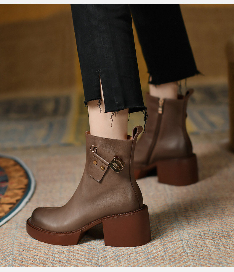 Высококачественные короткие ботинки внутри и снаружи с кожаными кожаными, красивыми тисненными рабочими ботинками, женскими ботинками на открытом воздухе, кожаными сапогами с круглосуточным носками