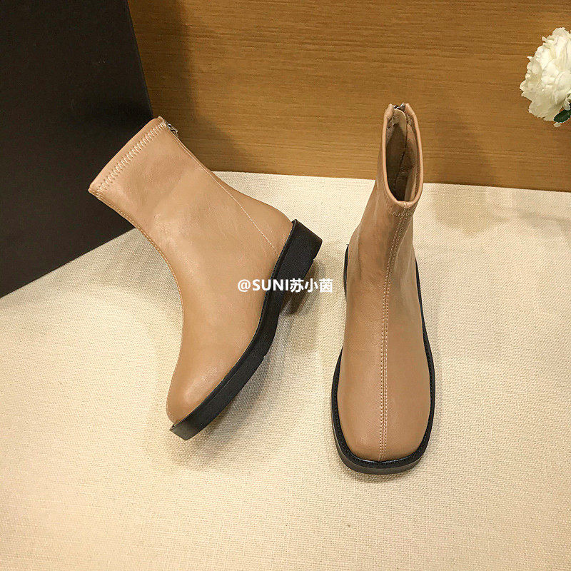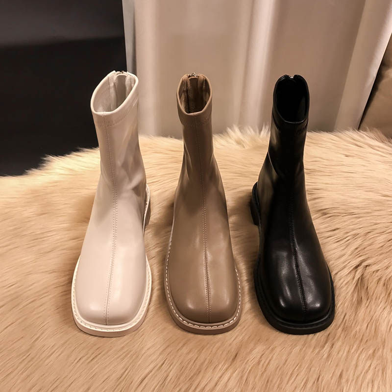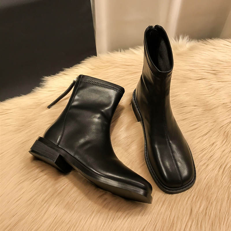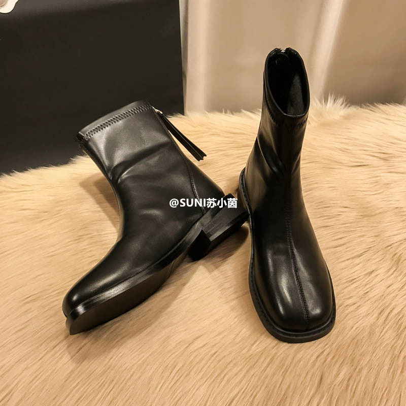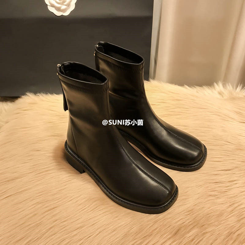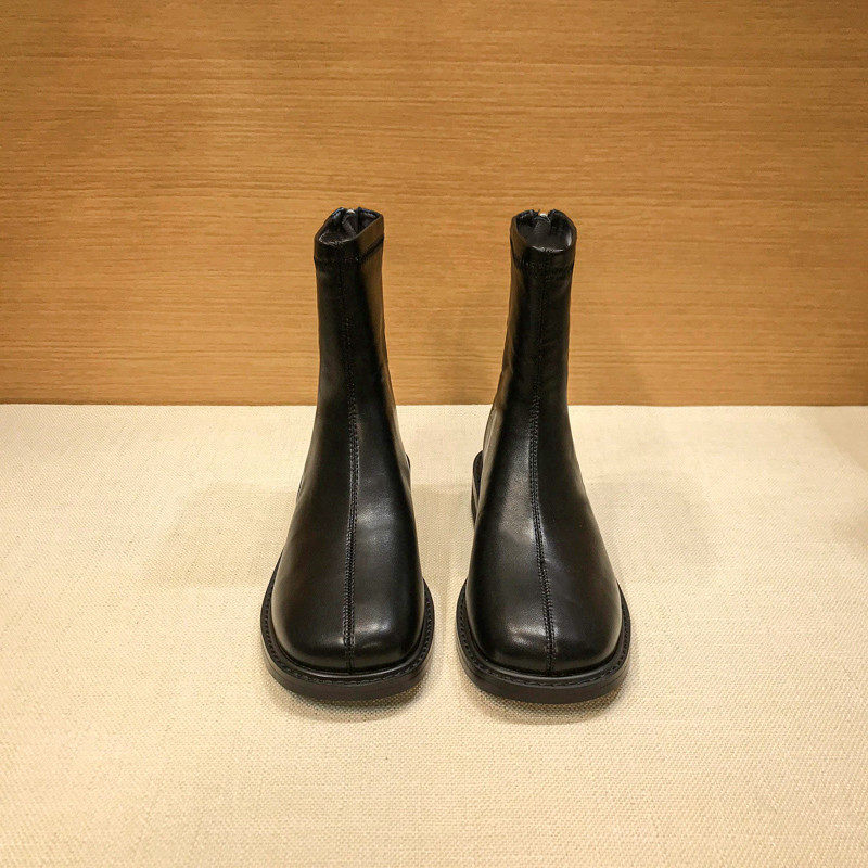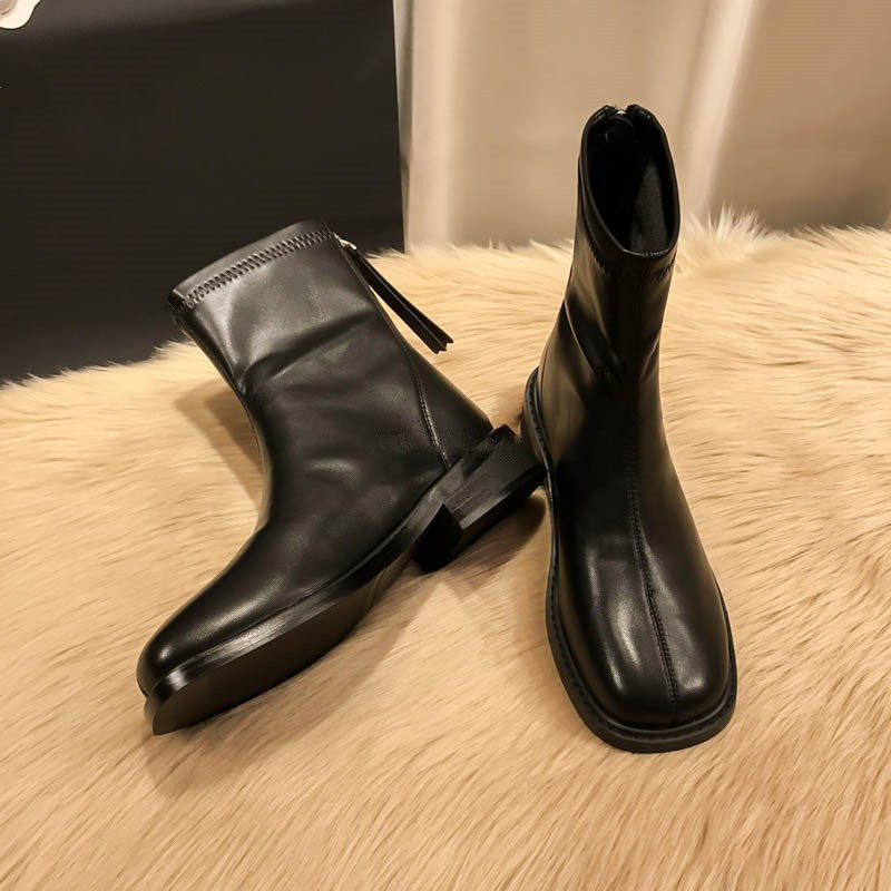 (Очистить) Толсто-покрытые сапоги Martin British Style 2025 Новый квадратный носок задний молнии короткие тонкие сапоги с толстой каблукой для женщин для женщин для женщин