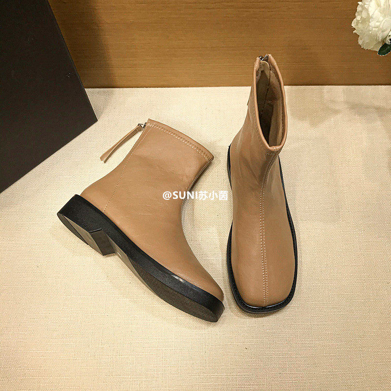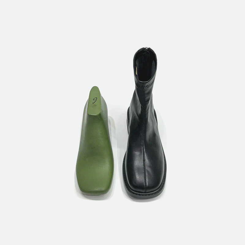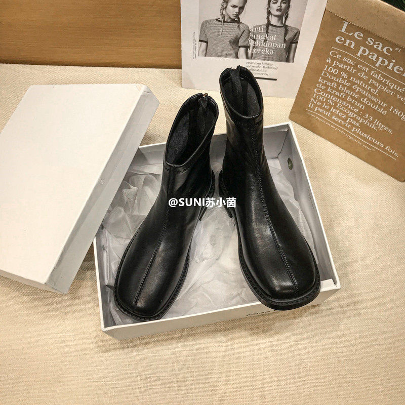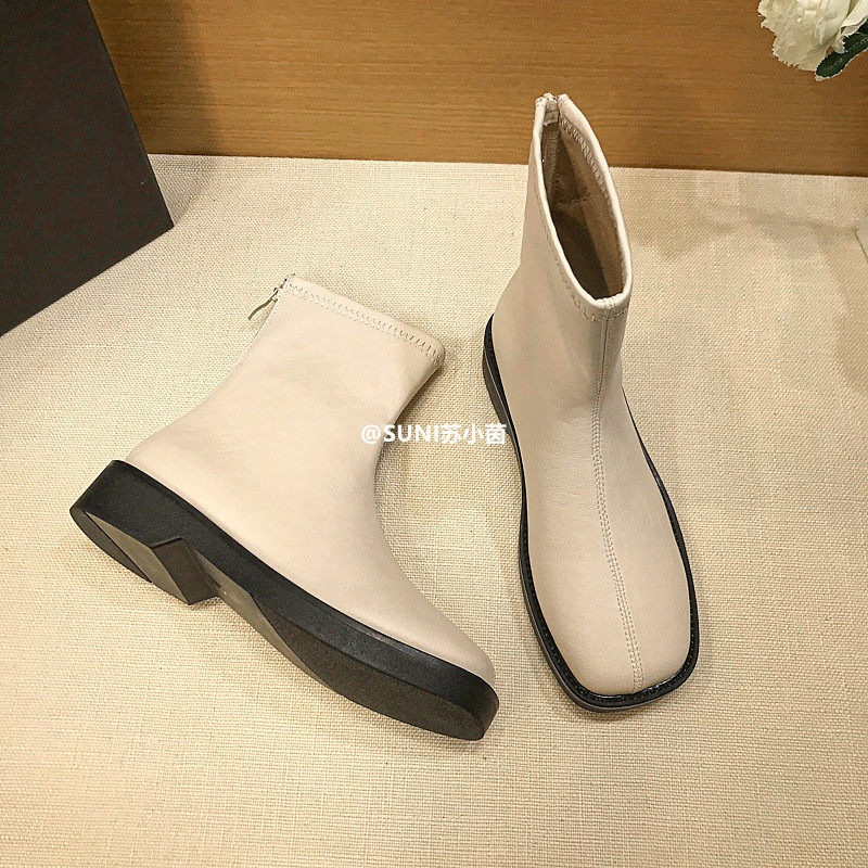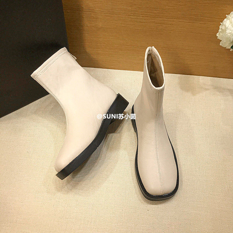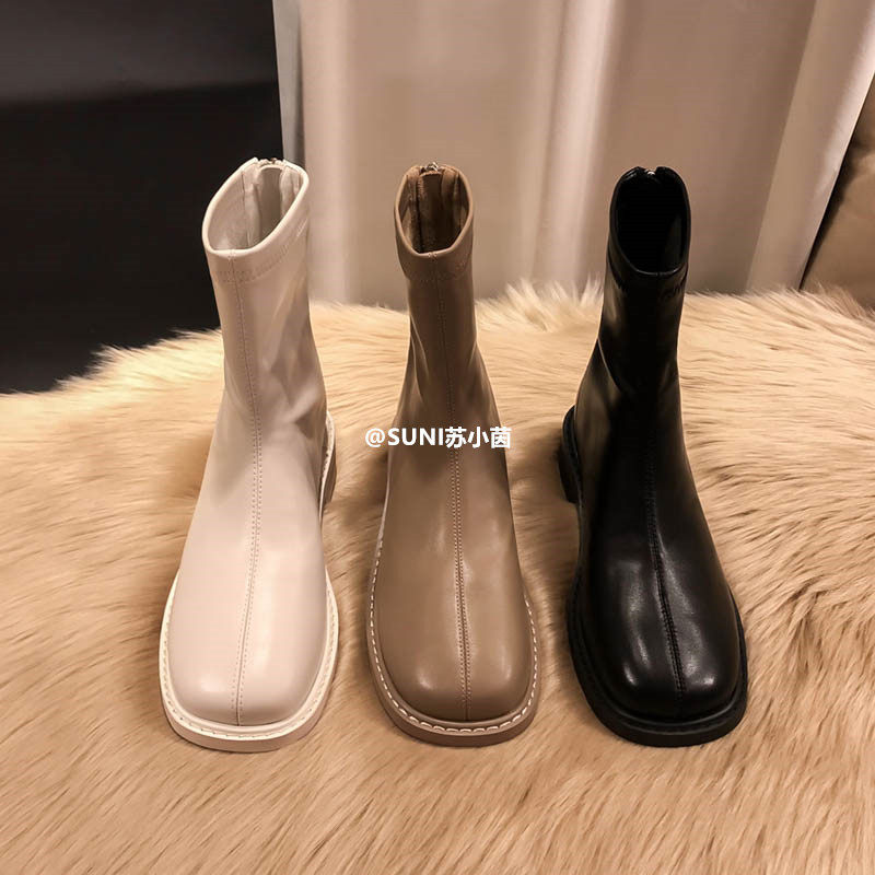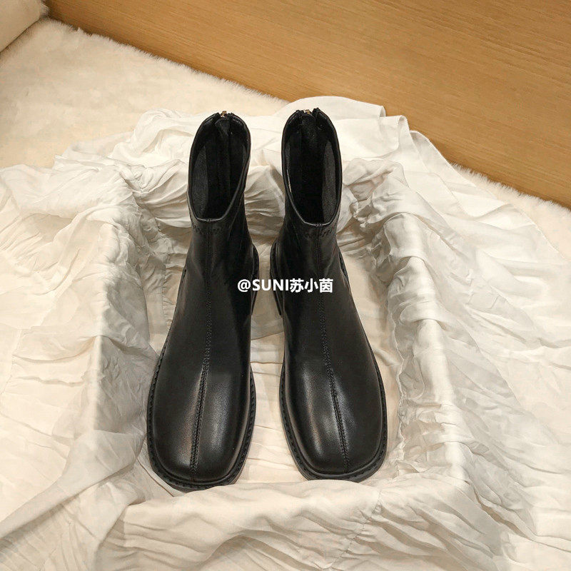 (Очистить) Толсто-покрытые сапоги Martin British Style 2025 Новый квадратный носок задний молнии короткие тонкие сапоги с толстой каблукой для женщин для женщин для женщин