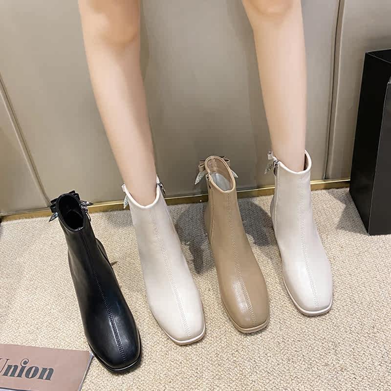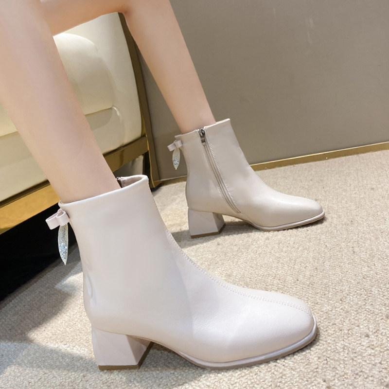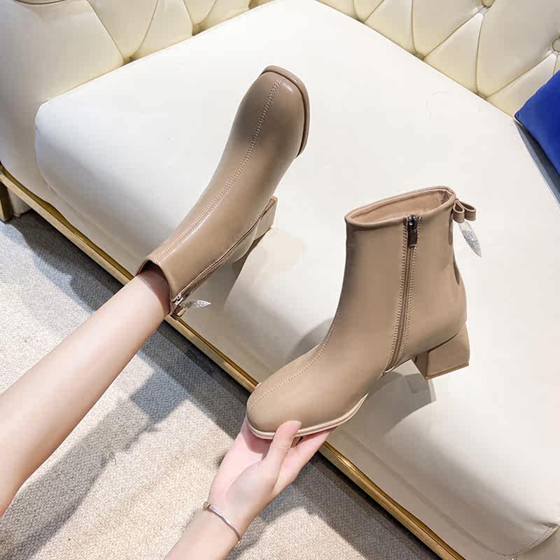Зимние небольшие дизайнерские туфли на высоком каблуке, флисовые высокие сапоги, 2021 года, тренд сезона, в стиле Шанель, французский стиль