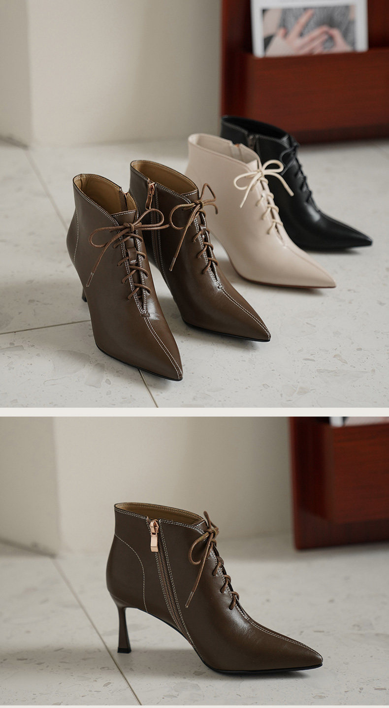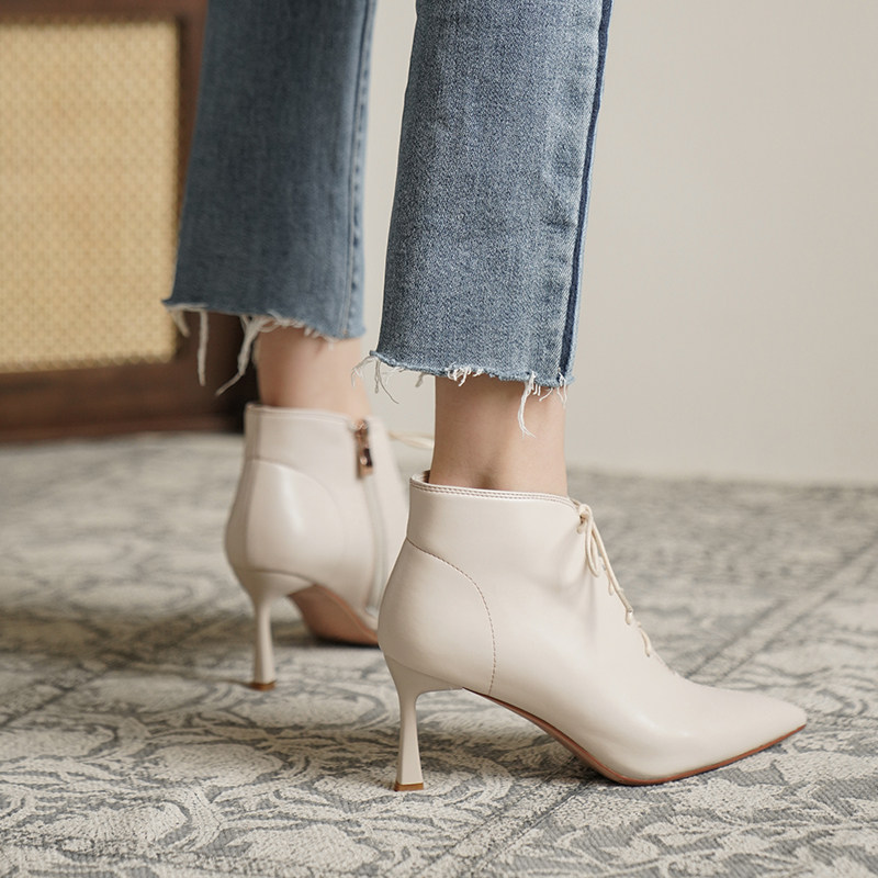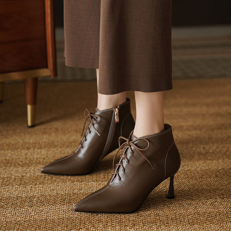 Martens, коричневые утепленные короткие сапоги, бежевые ботильоны с заостренным носом, ботинки на высоком каблуке, подходит для подростков