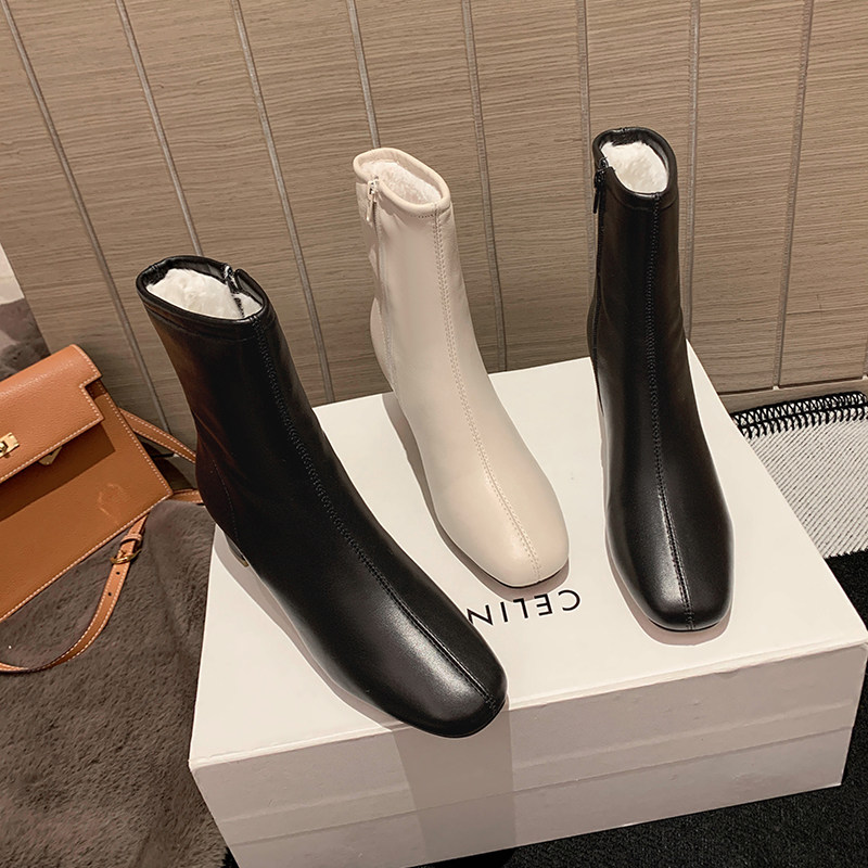 Демисезонные утепленные короткие сапоги на высоком каблуке, коллекция 2022
