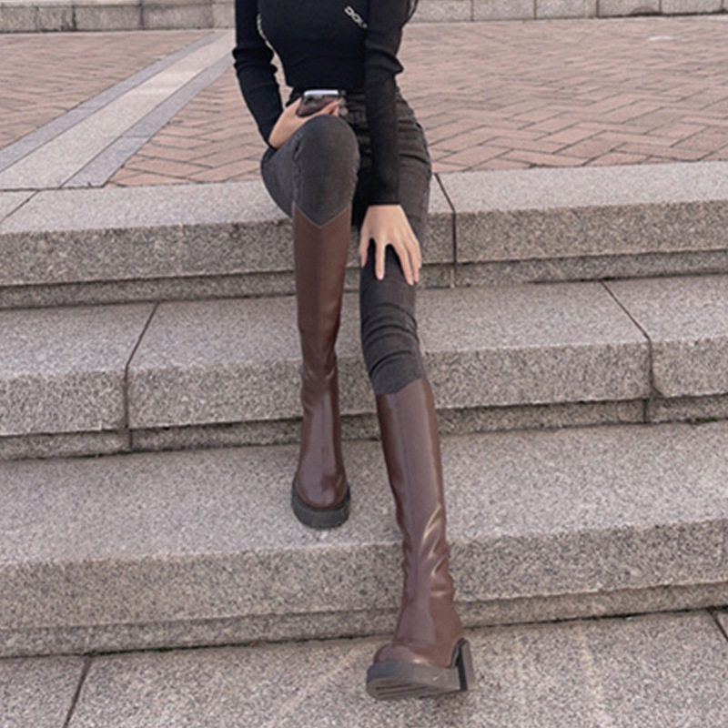 Martens, коричневые высокие сапоги, демисезонные высокие ботинки на платформе в английском стиле, по фигуре