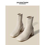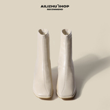 Martens, весенние короткие сапоги, обувь на высоком каблуке, белые ботинки, французский стиль